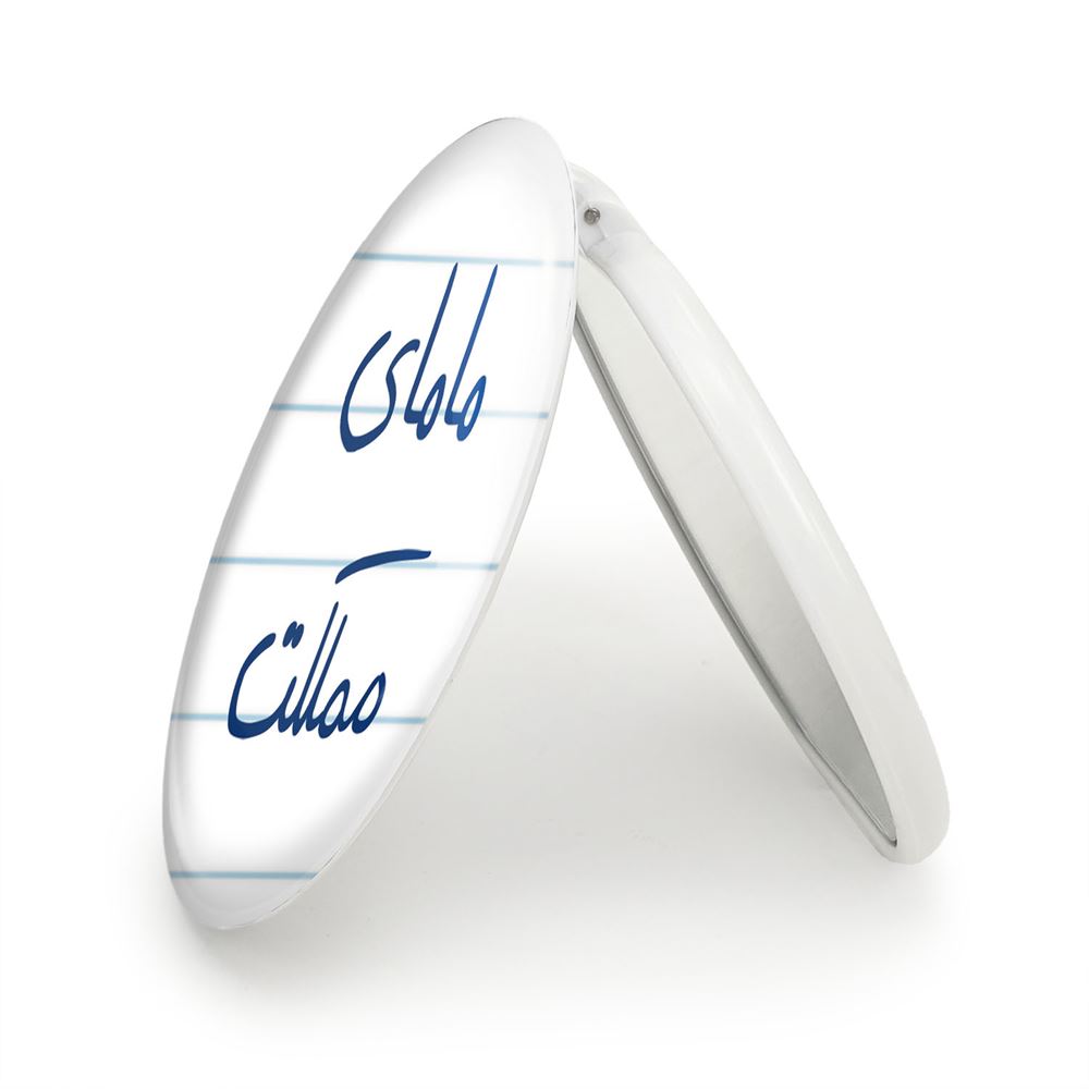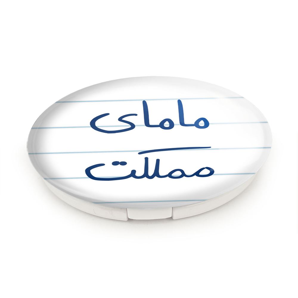 آینه های تاشو مامای مملکت خندالو، از جنس پلاستیک فشرده ABS تولید شده و به رنگ سفید می باشد. یکی از آینه ها ابعاد واقعی را نشان داده و دیگری با قابلیت بزرگنمایی، جزئیات را بهتر نمایش می دهد. ابعاد هر یک از آینه ها، دایره ای به قطر 7.5 سانت می باشد که نه خیلی بزرگ و غیر قابل استفاده در کیف آرایشی ست و نه خیلی کوچک که تصویر خاصی در آن مشاهده نشود. آینه تاشو مامای مملکت سایزی استاندارد و کارآمد دارد و در هر کیفی جا میگیرد. چاپ طرح بوسیله چاپگرهای دیجیتال شش رنگ با شفافیت و کیفیتی مثال زدنی بر روی یک وجه از بدنه ی آینه انجام گرفته و با روکش لمینت حرارتی پوشیده شده که در مقابل آسیب و خط و خش مقاوم بوده و کیفیت بالایی دارد. درب آینه بوسیله قفل بدنه ی آن، باز نمی ماند و کاملا بسته می شود و مناسب قرار گیری در کیف لوازم آرایش و کیف های کوچک دستی نیز هست. آینه های تاشو مامای مملکت خندالو با تنوع طرحی بسیار بالا، سلیقه هر نوع مخاطبی را تامین میکند.
