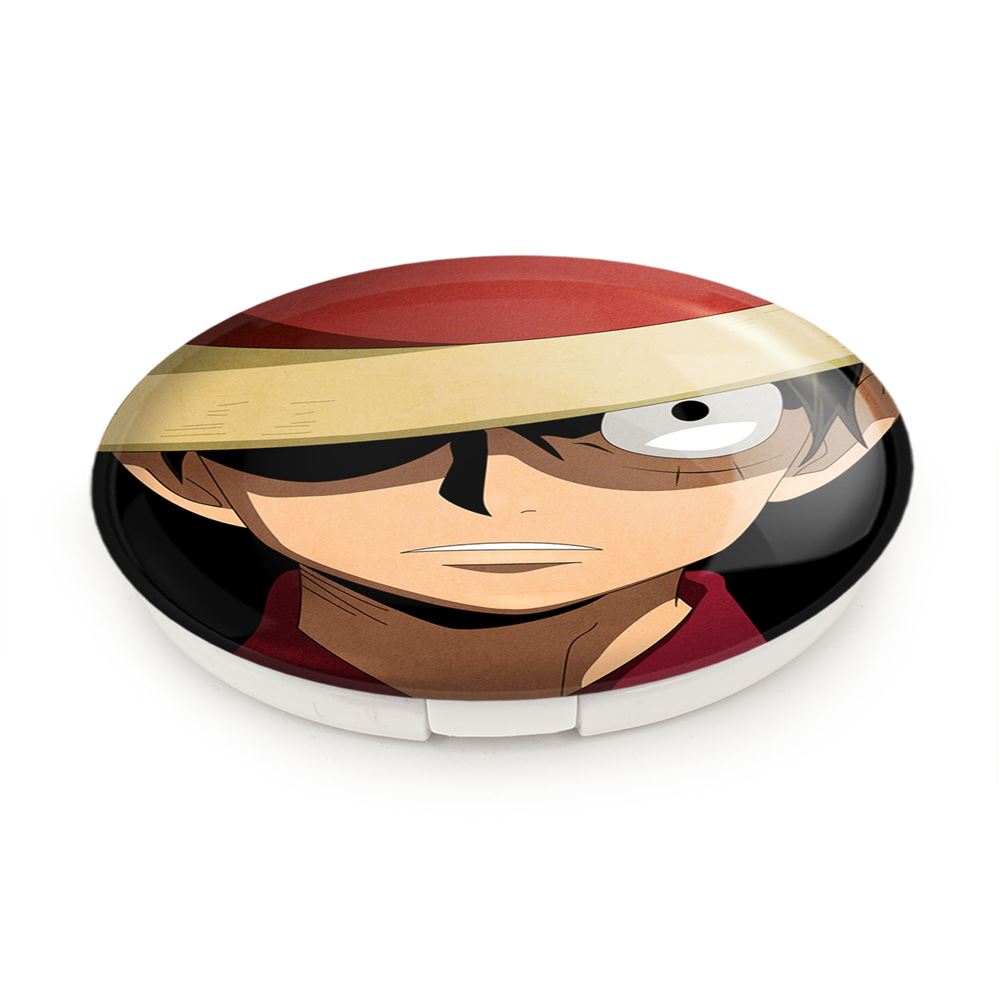 آینه های تاشو مانکی دی لوفی انیمه وان پیس One Piece خندالو، از جنس پلاستیک فشرده ABS تولید شده و به رنگ سفید می باشد. یکی از آینه ها ابعاد واقعی را نشان داده و دیگری با قابلیت بزرگنمایی، جزئیات را بهتر نمایش می دهد. ابعاد هر یک از آینه ها، دایره ای به قطر 7.5 سانت می باشد که نه خیلی بزرگ و غیر قابل استفاده در کیف آرایشی ست و نه خیلی کوچک که تصویر خاصی در آن مشاهده نشود. آینه تاشو مانکی دی لوفی انیمه وان پیس One Piece سایزی استاندارد و کارآمد دارد و در هر کیفی جا میگیرد. چاپ طرح بوسیله چاپگرهای دیجیتال شش رنگ با شفافیت و کیفیتی مثال زدنی بر روی یک وجه از بدنه ی آینه انجام گرفته و با روکش لمینت حرارتی پوشیده شده که در مقابل آسیب و خط و خش مقاوم بوده و کیفیت بالایی دارد. درب آینه بوسیله قفل بدنه ی آن، باز نمی ماند و کاملا بسته می شود و مناسب قرار گیری در کیف لوازم آرایش و کیف های کوچک دستی نیز هست. آینه های تاشو مانکی دی لوفی انیمه وان پیس One Piece خندالو با تنوع طرحی بسیار بالا، سلیقه هر نوع مخاطبی را تامین میکند.