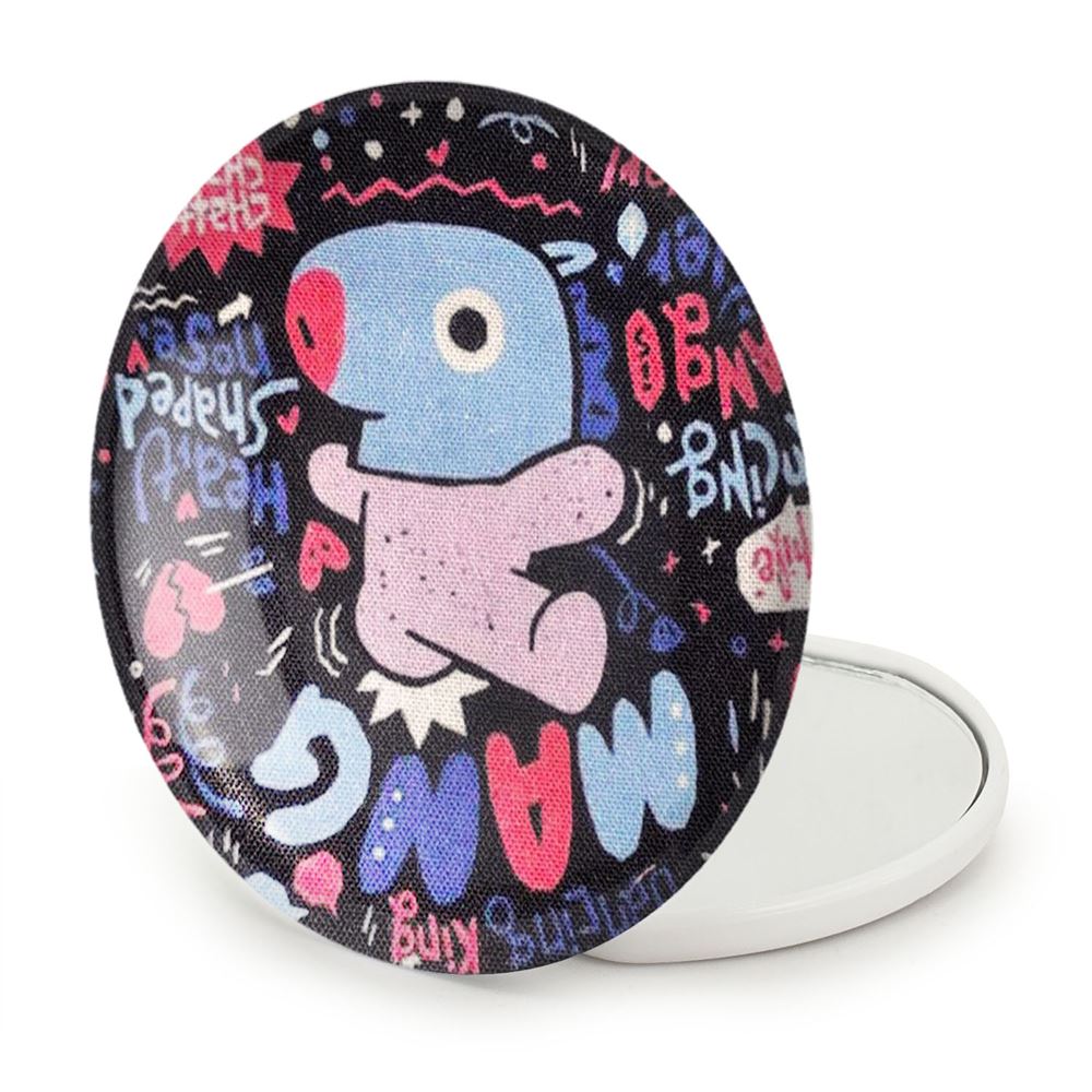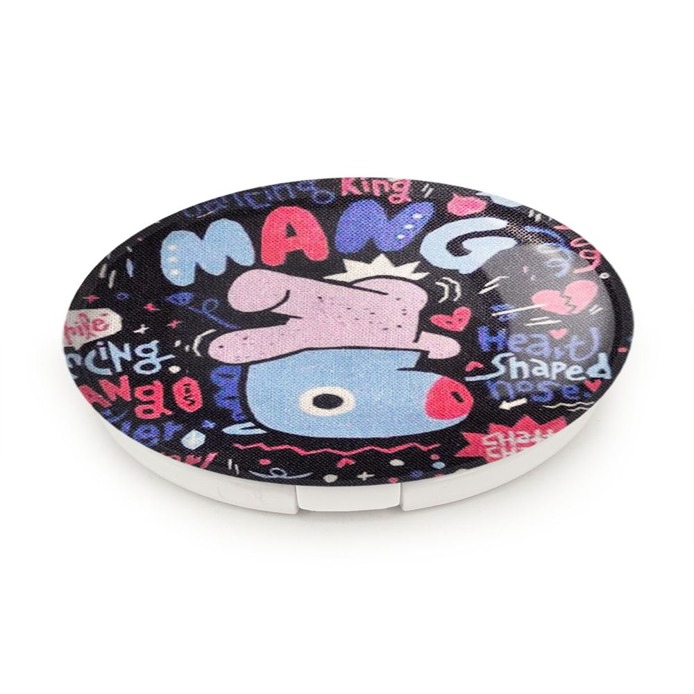 آینه های تاشو مانگ BT21 Mang خندالو، از جنس پلاستیک فشرده ABS تولید شده و به رنگ سفید می باشد. یکی از آینه ها ابعاد واقعی را نشان داده و دیگری با قابلیت بزرگنمایی، جزئیات را بهتر نمایش می دهد. ابعاد هر یک از آینه ها، دایره ای به قطر 7.5 سانت می باشد که نه خیلی بزرگ و غیر قابل استفاده در کیف آرایشی ست و نه خیلی کوچک که تصویر خاصی در آن مشاهده نشود. آینه تاشو مانگ BT21 Mang سایزی استاندارد و کارآمد دارد و در هر کیفی جا میگیرد. چاپ طرح بوسیله چاپگرهای دیجیتال شش رنگ با شفافیت و کیفیتی مثال زدنی بر روی یک وجه از بدنه ی آینه انجام گرفته و با روکش لمینت حرارتی پوشیده شده که در مقابل آسیب و خط و خش مقاوم بوده و کیفیت بالایی دارد. درب آینه بوسیله قفل بدنه ی آن، باز نمی ماند و کاملا بسته می شود و مناسب قرار گیری در کیف لوازم آرایش و کیف های کوچک دستی نیز هست. آینه های تاشو مانگ BT21 Mang خندالو با تنوع طرحی بسیار بالا، سلیقه هر نوع مخاطبی را تامین میکند.