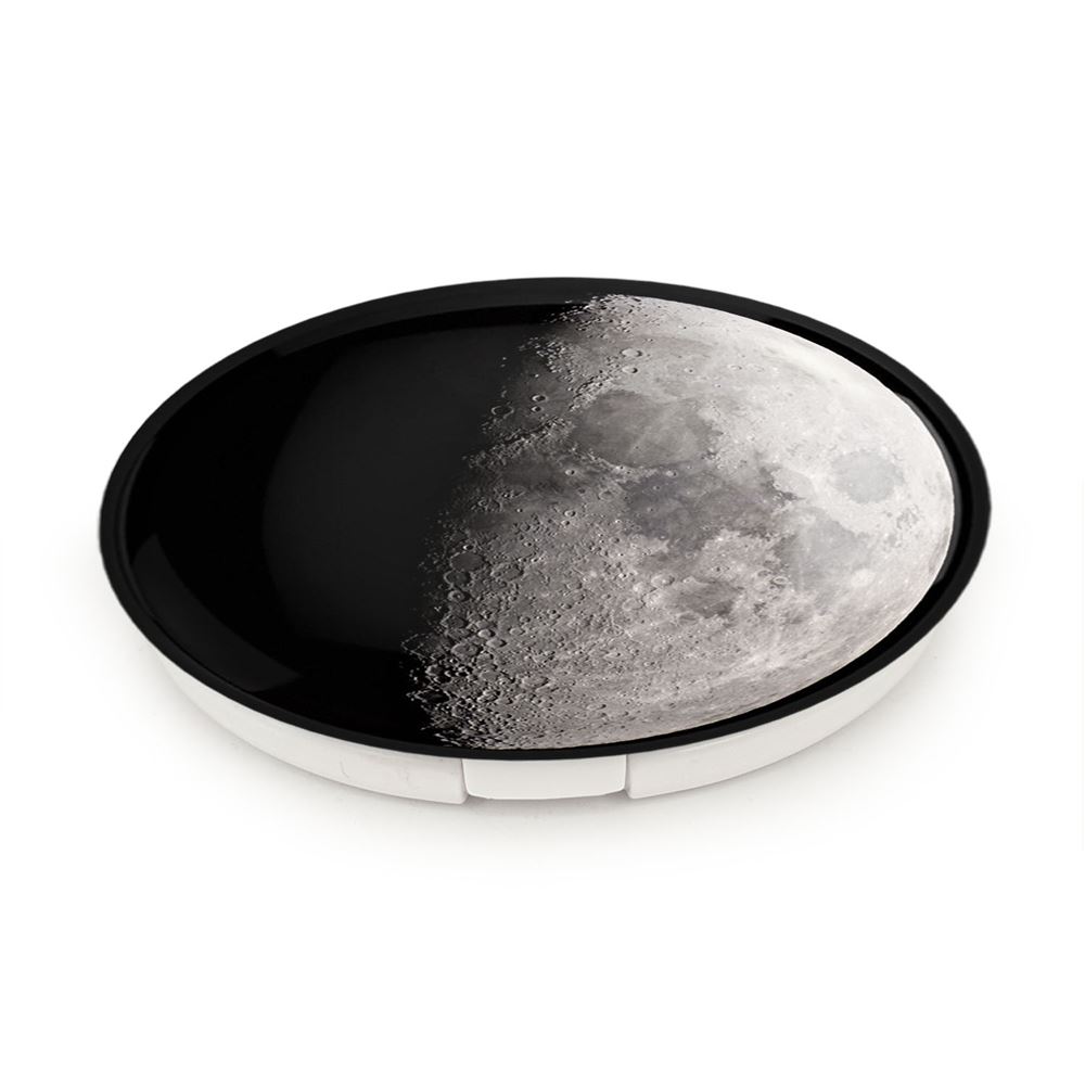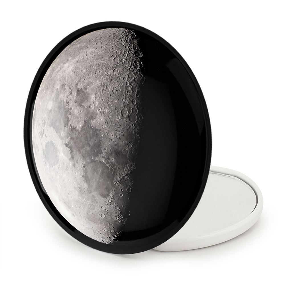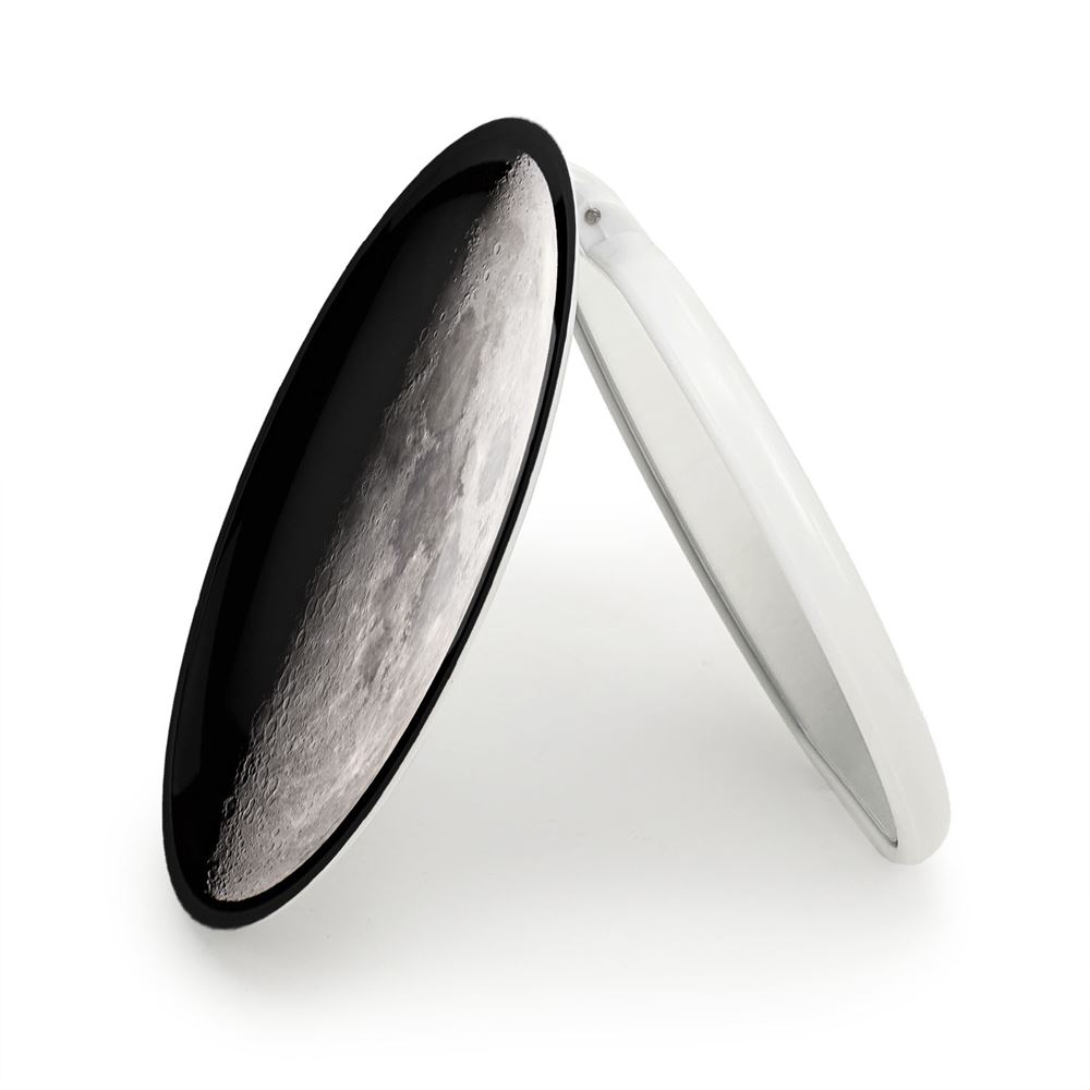 آینه های تاشو ماه خندالو، از جنس پلاستیک فشرده ABS تولید شده و به رنگ سفید می باشد. یکی از آینه ها ابعاد واقعی را نشان داده و دیگری با قابلیت بزرگنمایی، جزئیات را بهتر نمایش می دهد. ابعاد هر یک از آینه ها، دایره ای به قطر 7.5 سانت می باشد که نه خیلی بزرگ و غیر قابل استفاده در کیف آرایشی ست و نه خیلی کوچک که تصویر خاصی در آن مشاهده نشود. آینه تاشو ماه سایزی استاندارد و کارآمد دارد و در هر کیفی جا میگیرد. چاپ طرح بوسیله چاپگرهای دیجیتال شش رنگ با شفافیت و کیفیتی مثال زدنی بر روی یک وجه از بدنه ی آینه انجام گرفته و با روکش لمینت حرارتی پوشیده شده که در مقابل آسیب و خط و خش مقاوم بوده و کیفیت بالایی دارد. درب آینه بوسیله قفل بدنه ی آن، باز نمی ماند و کاملا بسته می شود و مناسب قرار گیری در کیف لوازم آرایش و کیف های کوچک دستی نیز هست. آینه های تاشو ماه خندالو با تنوع طرحی بسیار بالا، سلیقه هر نوع مخاطبی را تامین میکند.