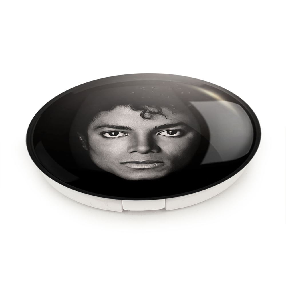 آینه های تاشو مایکل جکسون Michael Jackson خندالو، از جنس پلاستیک فشرده ABS تولید شده و به رنگ سفید می باشد. یکی از آینه ها ابعاد واقعی را نشان داده و دیگری با قابلیت بزرگنمایی، جزئیات را بهتر نمایش می دهد. ابعاد هر یک از آینه ها، دایره ای به قطر 7.5 سانت می باشد که نه خیلی بزرگ و غیر قابل استفاده در کیف آرایشی ست و نه خیلی کوچک که تصویر خاصی در آن مشاهده نشود. آینه تاشو مایکل جکسون Michael Jackson سایزی استاندارد و کارآمد دارد و در هر کیفی جا میگیرد. چاپ طرح بوسیله چاپگرهای دیجیتال شش رنگ با شفافیت و کیفیتی مثال زدنی بر روی یک وجه از بدنه ی آینه انجام گرفته و با روکش لمینت حرارتی پوشیده شده که در مقابل آسیب و خط و خش مقاوم بوده و کیفیت بالایی دارد. درب آینه بوسیله قفل بدنه ی آن، باز نمی ماند و کاملا بسته می شود و مناسب قرار گیری در کیف لوازم آرایش و کیف های کوچک دستی نیز هست. آینه های تاشو مایکل جکسون Michael Jackson خندالو با تنوع طرحی بسیار بالا، سلیقه هر نوع مخاطبی را تامین میکند.