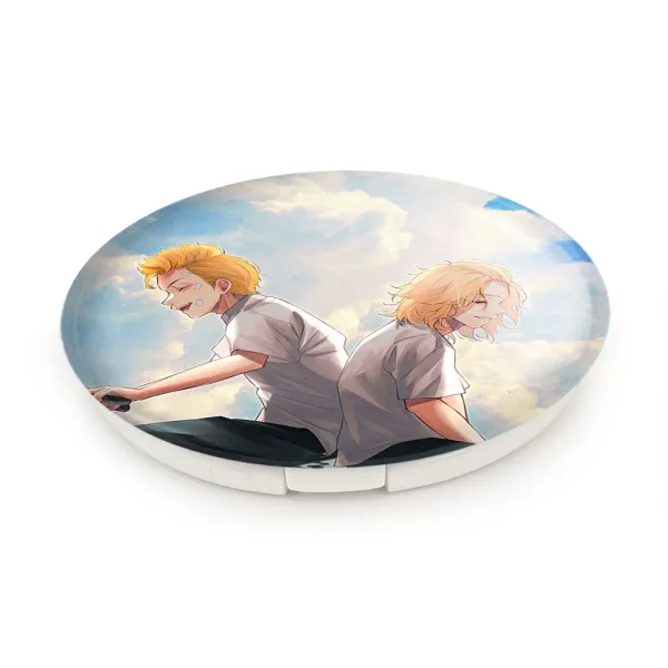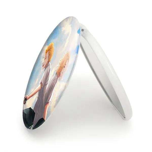 آینه های تاشو مایکی و تاکه میتچی انیمه توکیو ریونجرز خندالو، از جنس پلاستیک فشرده ABS تولید شده و به رنگ سفید می باشد. یکی از آینه ها ابعاد واقعی را نشان داده و دیگری با قابلیت بزرگنمایی، جزئیات را بهتر نمایش می دهد. ابعاد هر یک از آینه ها، دایره ای به قطر 7.5 سانت می باشد که نه خیلی بزرگ و غیر قابل استفاده در کیف آرایشی ست و نه خیلی کوچک که تصویر خاصی در آن مشاهده نشود. آینه تاشو مایکی و تاکه میتچی انیمه توکیو ریونجرز سایزی استاندارد و کارآمد دارد و در هر کیفی جا میگیرد. چاپ طرح بوسیله چاپگرهای دیجیتال شش رنگ با شفافیت و کیفیتی مثال زدنی بر روی یک وجه از بدنه ی آینه انجام گرفته و با روکش لمینت حرارتی پوشیده شده که در مقابل آسیب و خط و خش مقاوم بوده و کیفیت بالایی دارد. درب آینه بوسیله قفل بدنه ی آن، باز نمی ماند و کاملا بسته می شود و مناسب قرار گیری در کیف لوازم آرایش و کیف های کوچک دستی نیز هست. آینه های تاشو مایکی و تاکه میتچی انیمه توکیو ریونجرز خندالو با تنوع طرحی بسیار بالا، سلیقه هر نوع مخاطبی را تامین میکند.