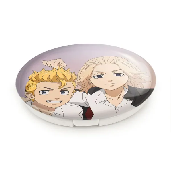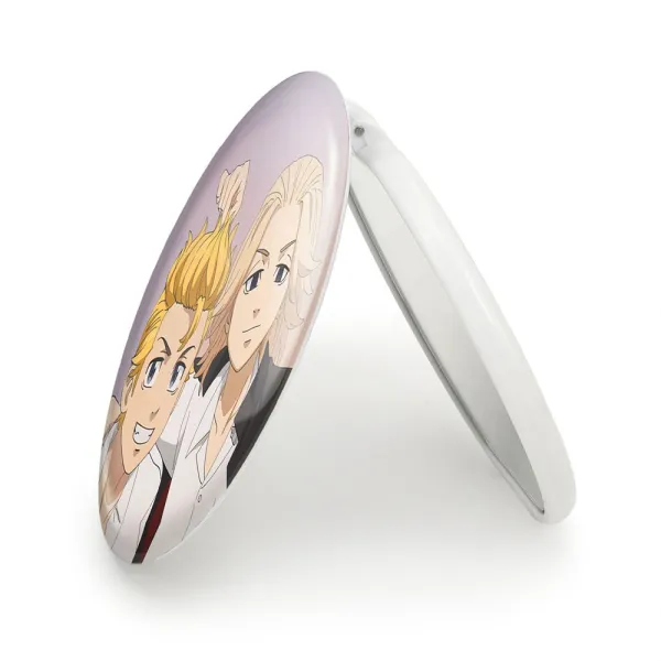 آینه های تاشو مایکی و تاکه میتچی و دراکن انیمه توکیو ریونجرز خندالو، از جنس پلاستیک فشرده ABS تولید شده و به رنگ سفید می باشد. یکی از آینه ها ابعاد واقعی را نشان داده و دیگری با قابلیت بزرگنمایی، جزئیات را بهتر نمایش می دهد. ابعاد هر یک از آینه ها، دایره ای به قطر 7.5 سانت می باشد که نه خیلی بزرگ و غیر قابل استفاده در کیف آرایشی ست و نه خیلی کوچک که تصویر خاصی در آن مشاهده نشود. آینه تاشو مایکی و تاکه میتچی و دراکن انیمه توکیو ریونجرز سایزی استاندارد و کارآمد دارد و در هر کیفی جا میگیرد. چاپ طرح بوسیله چاپگرهای دیجیتال شش رنگ با شفافیت و کیفیتی مثال زدنی بر روی یک وجه از بدنه ی آینه انجام گرفته و با روکش لمینت حرارتی پوشیده شده که در مقابل آسیب و خط و خش مقاوم بوده و کیفیت بالایی دارد. درب آینه بوسیله قفل بدنه ی آن، باز نمی ماند و کاملا بسته می شود و مناسب قرار گیری در کیف لوازم آرایش و کیف های کوچک دستی نیز هست. آینه های تاشو مایکی و تاکه میتچی و دراکن انیمه توکیو ریونجرز خندالو با تنوع طرحی بسیار بالا، سلیقه هر نوع مخاطبی را تامین میکند.