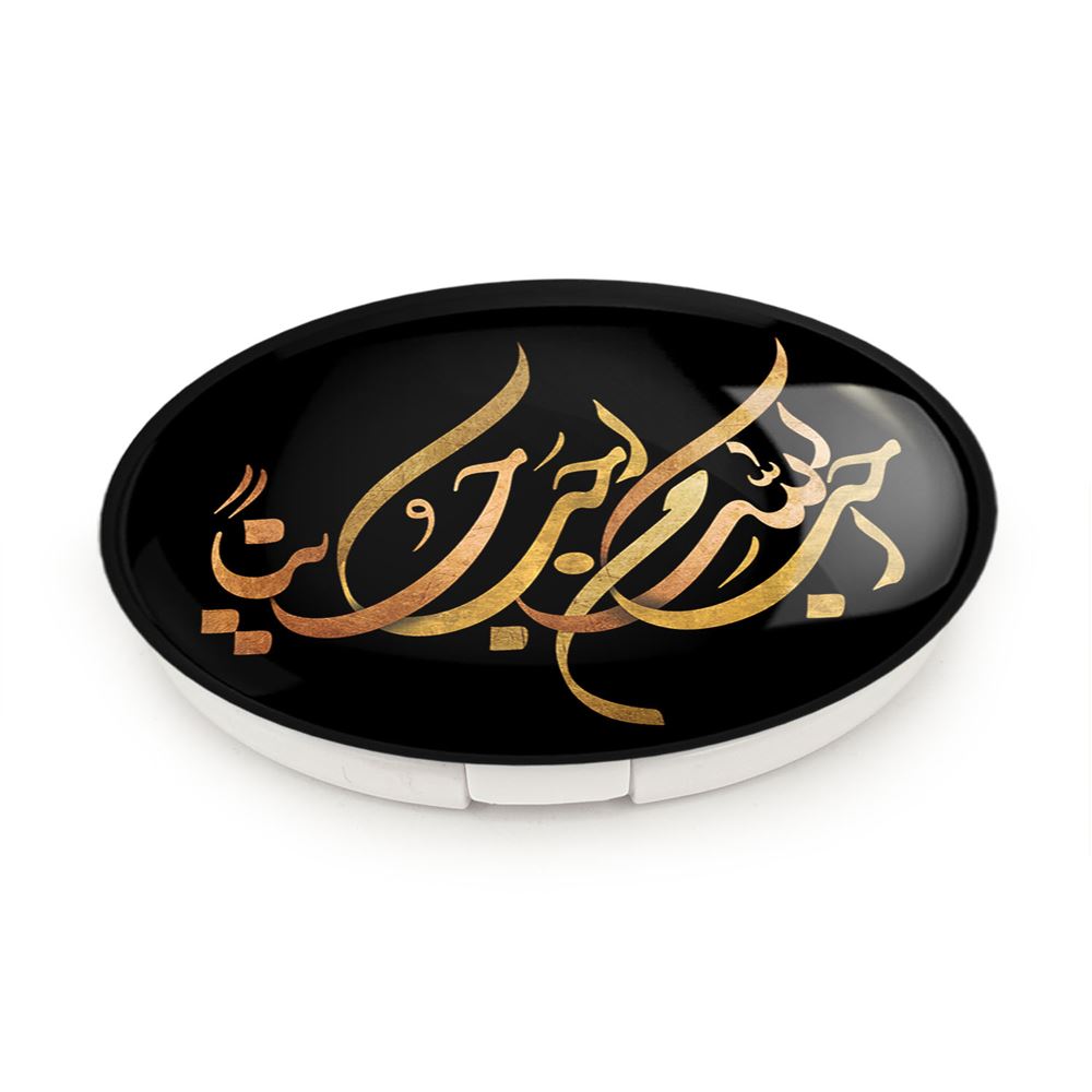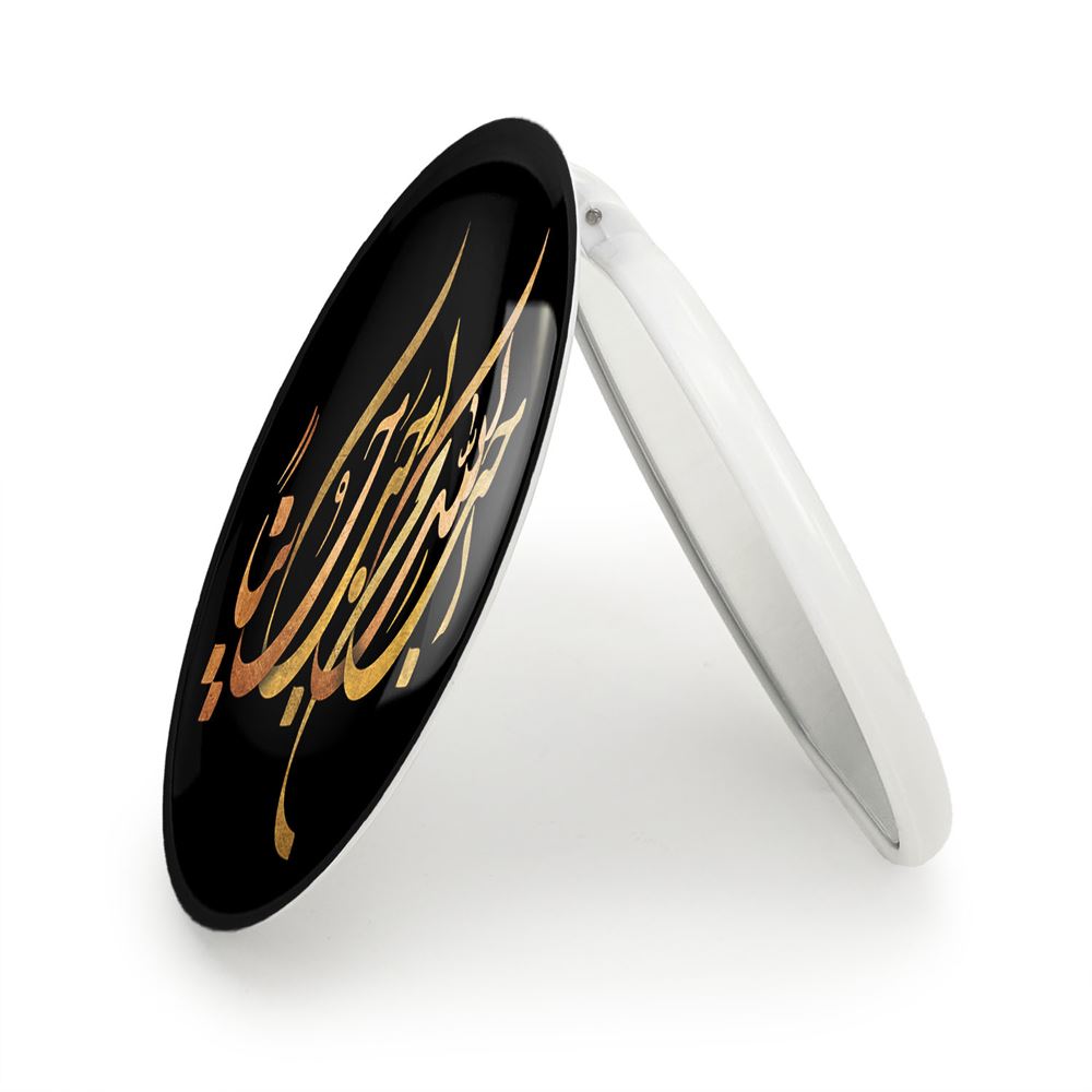 آینه های تاشو محرم احب الله من احب حسین خندالو، از جنس پلاستیک فشرده ABS تولید شده و به رنگ سفید می باشد. یکی از آینه ها ابعاد واقعی را نشان داده و دیگری با قابلیت بزرگنمایی، جزئیات را بهتر نمایش می دهد. ابعاد هر یک از آینه ها، دایره ای به قطر 7.5 سانت می باشد که نه خیلی بزرگ و غیر قابل استفاده در کیف آرایشی ست و نه خیلی کوچک که تصویر خاصی در آن مشاهده نشود. آینه تاشو محرم احب الله من احب حسین سایزی استاندارد و کارآمد دارد و در هر کیفی جا میگیرد. چاپ طرح بوسیله چاپگرهای دیجیتال شش رنگ با شفافیت و کیفیتی مثال زدنی بر روی یک وجه از بدنه ی آینه انجام گرفته و با روکش لمینت حرارتی پوشیده شده که در مقابل آسیب و خط و خش مقاوم بوده و کیفیت بالایی دارد. درب آینه بوسیله قفل بدنه ی آن، باز نمی ماند و کاملا بسته می شود و مناسب قرار گیری در کیف لوازم آرایش و کیف های کوچک دستی نیز هست. آینه های تاشو محرم احب الله من احب حسین خندالو با تنوع طرحی بسیار بالا، سلیقه هر نوع مخاطبی را تامین میکند.