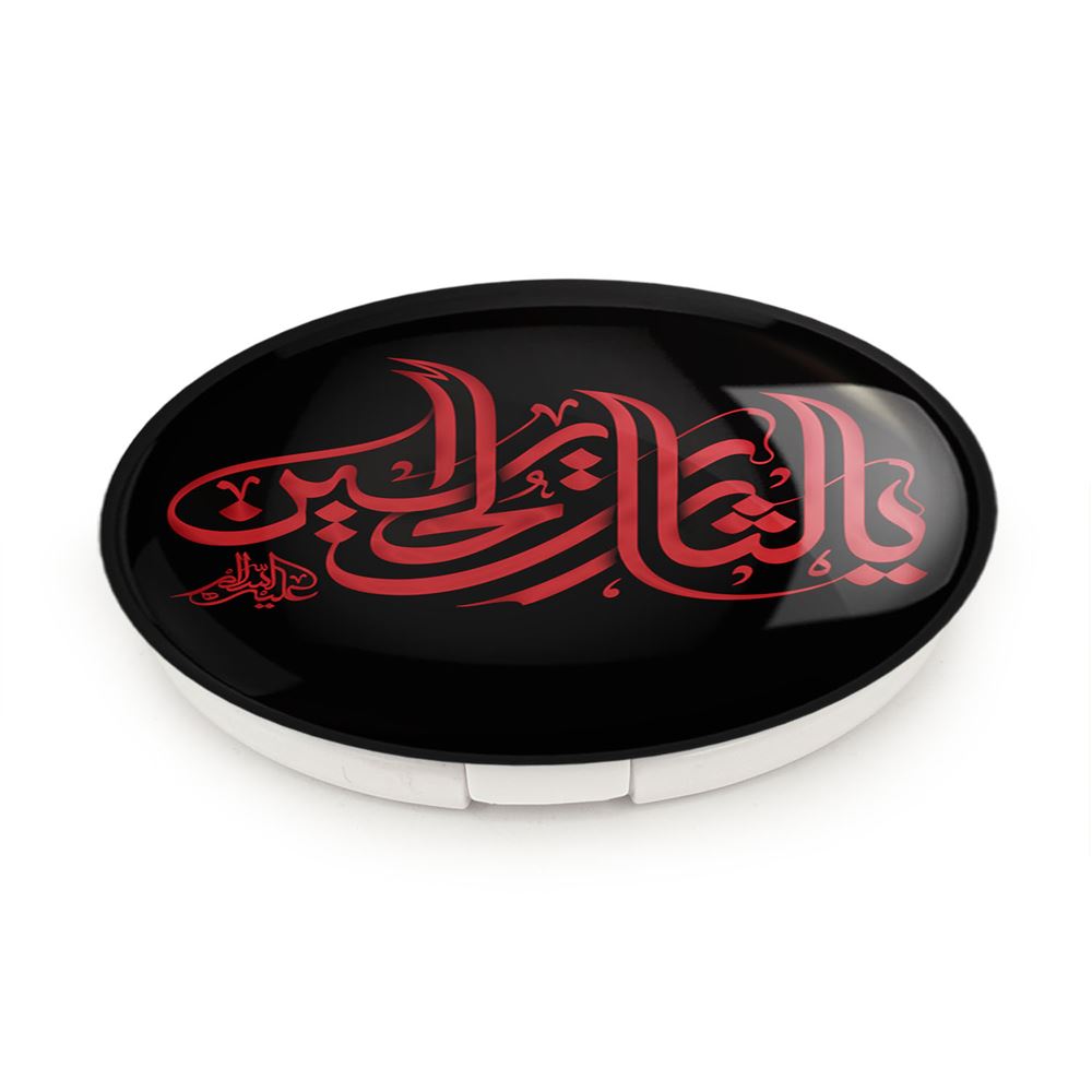 آینه های تاشو محرم احب الله من احب حسین خندالو، از جنس پلاستیک فشرده ABS تولید شده و به رنگ سفید می باشد. یکی از آینه ها ابعاد واقعی را نشان داده و دیگری با قابلیت بزرگنمایی، جزئیات را بهتر نمایش می دهد. ابعاد هر یک از آینه ها، دایره ای به قطر 7.5 سانت می باشد که نه خیلی بزرگ و غیر قابل استفاده در کیف آرایشی ست و نه خیلی کوچک که تصویر خاصی در آن مشاهده نشود. آینه تاشو محرم احب الله من احب حسین سایزی استاندارد و کارآمد دارد و در هر کیفی جا میگیرد. چاپ طرح بوسیله چاپگرهای دیجیتال شش رنگ با شفافیت و کیفیتی مثال زدنی بر روی یک وجه از بدنه ی آینه انجام گرفته و با روکش لمینت حرارتی پوشیده شده که در مقابل آسیب و خط و خش مقاوم بوده و کیفیت بالایی دارد. درب آینه بوسیله قفل بدنه ی آن، باز نمی ماند و کاملا بسته می شود و مناسب قرار گیری در کیف لوازم آرایش و کیف های کوچک دستی نیز هست. آینه های تاشو محرم احب الله من احب حسین خندالو با تنوع طرحی بسیار بالا، سلیقه هر نوع مخاطبی را تامین میکند.