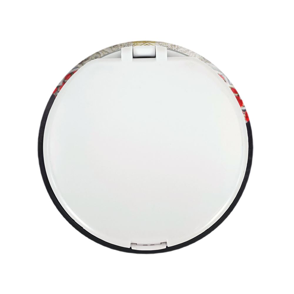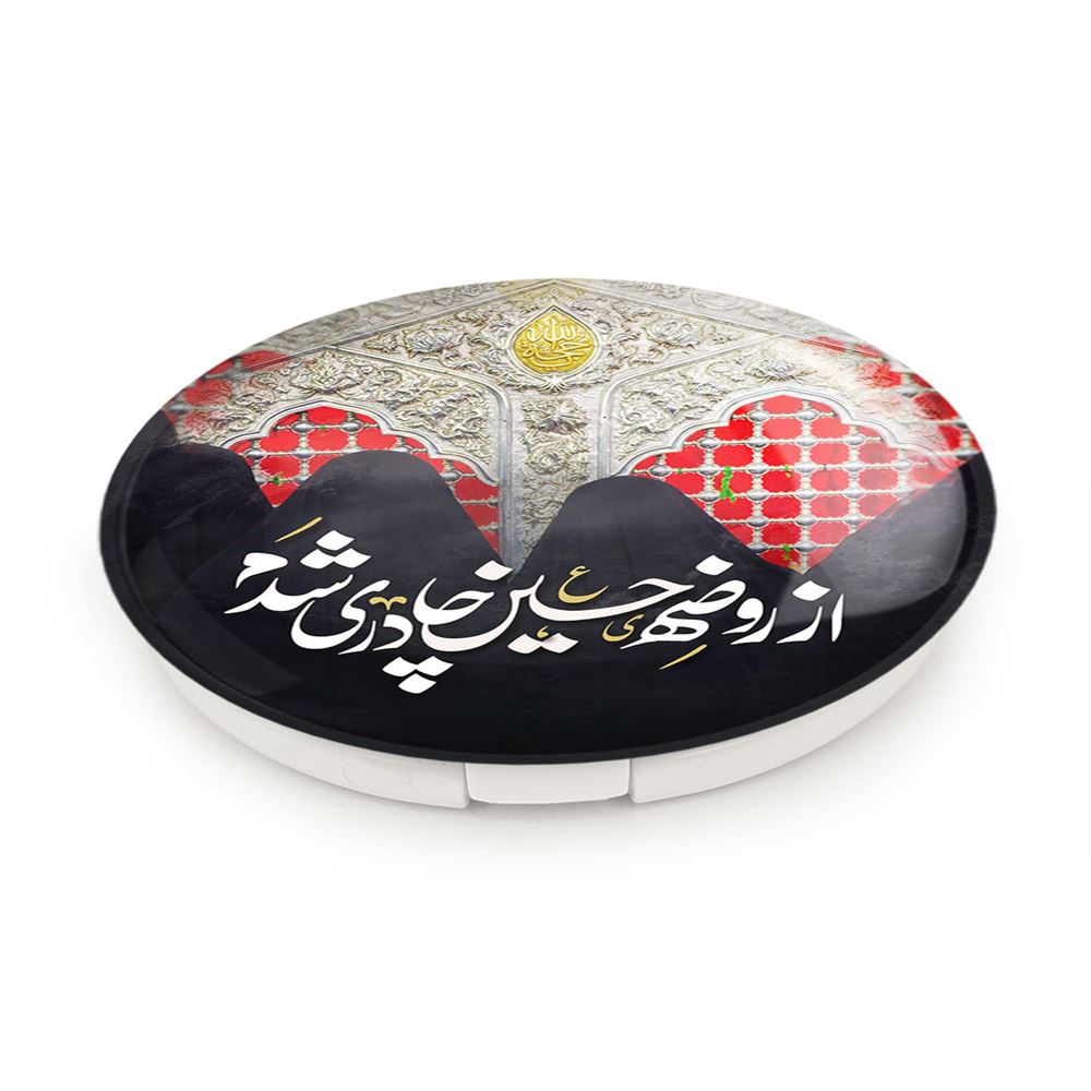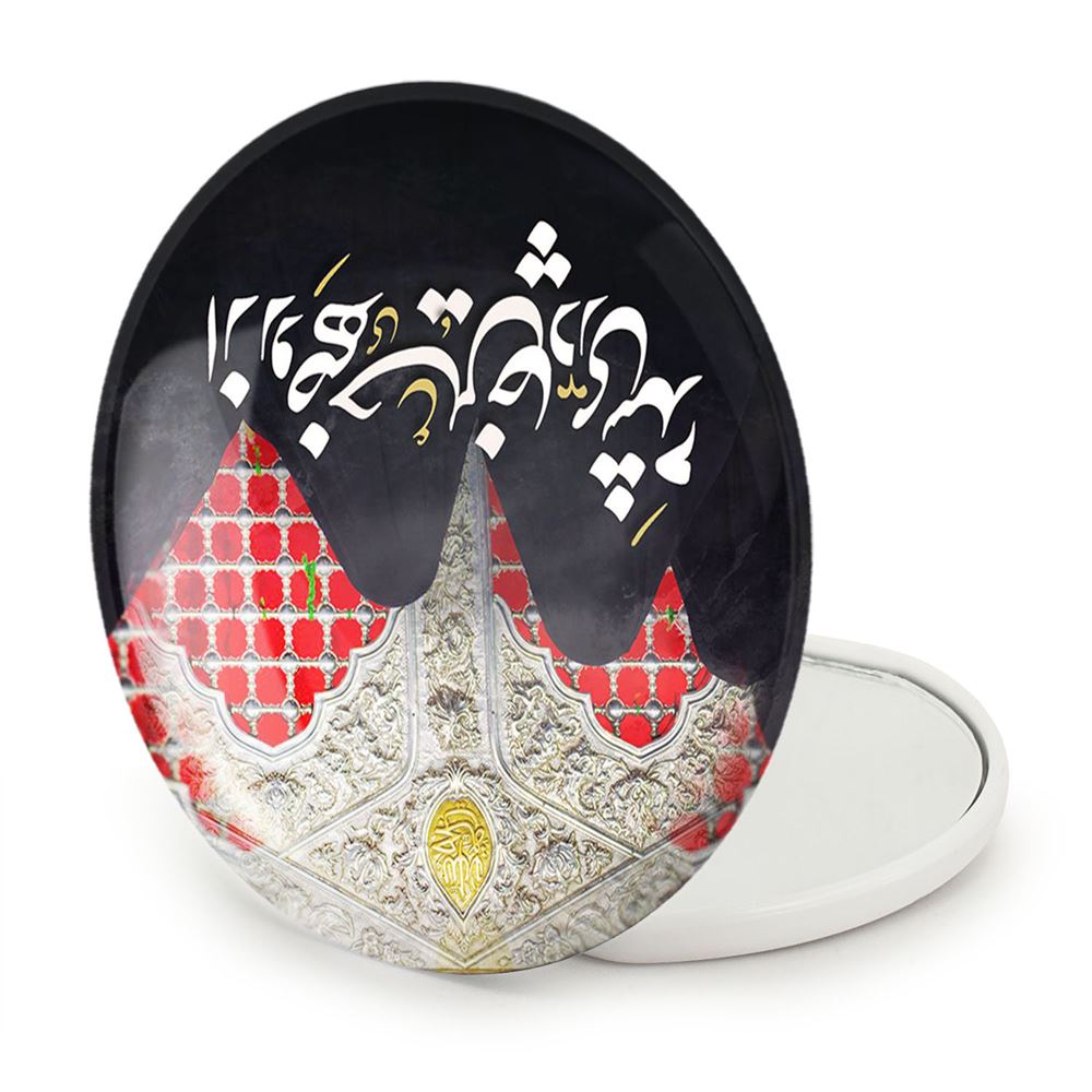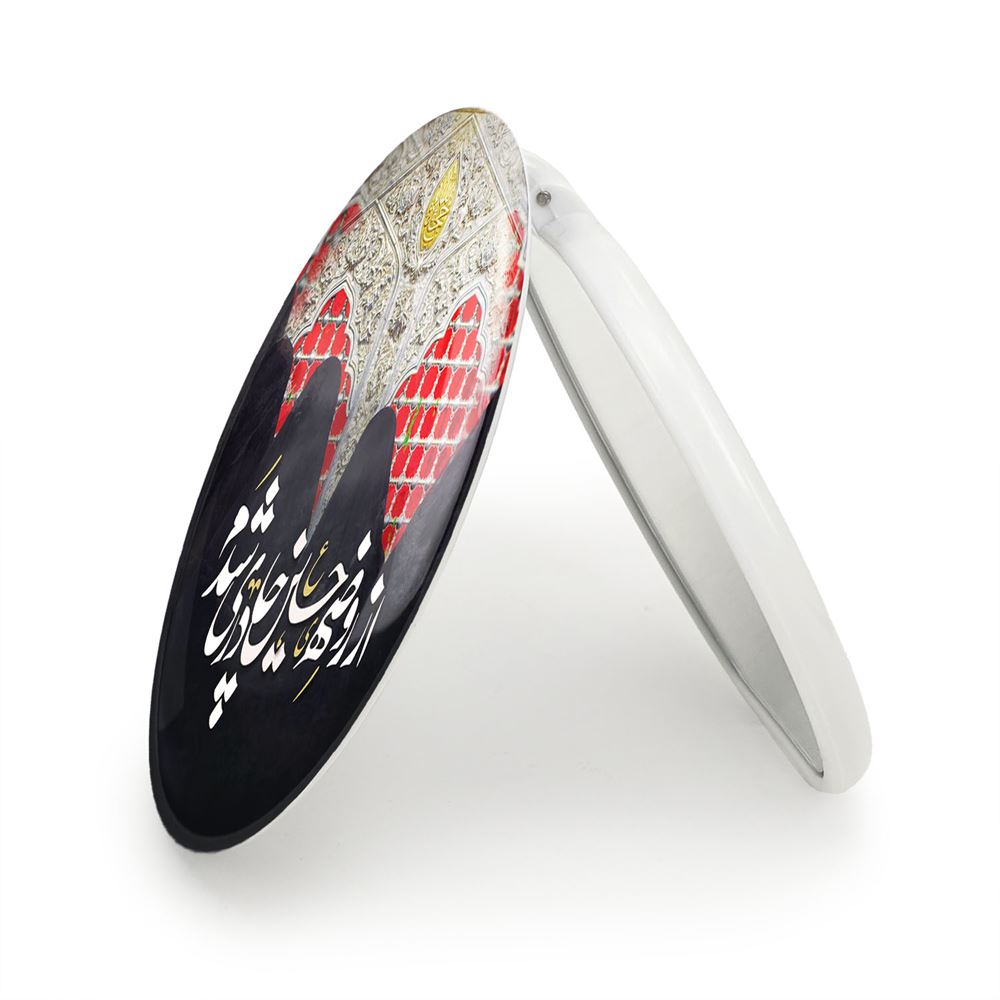 آینه های تاشو محرم از روضه حسین چادری شدم خندالو، از جنس پلاستیک فشرده ABS تولید شده و به رنگ سفید می باشد. یکی از آینه ها ابعاد واقعی را نشان داده و دیگری با قابلیت بزرگنمایی، جزئیات را بهتر نمایش می دهد. ابعاد هر یک از آینه ها، دایره ای به قطر 7.5 سانت می باشد که نه خیلی بزرگ و غیر قابل استفاده در کیف آرایشی ست و نه خیلی کوچک که تصویر خاصی در آن مشاهده نشود. آینه تاشو محرم از روضه حسین چادری شدم سایزی استاندارد و کارآمد دارد و در هر کیفی جا میگیرد. چاپ طرح بوسیله چاپگرهای دیجیتال شش رنگ با شفافیت و کیفیتی مثال زدنی بر روی یک وجه از بدنه ی آینه انجام گرفته و با روکش لمینت حرارتی پوشیده شده که در مقابل آسیب و خط و خش مقاوم بوده و کیفیت بالایی دارد. درب آینه بوسیله قفل بدنه ی آن، باز نمی ماند و کاملا بسته می شود و مناسب قرار گیری در کیف لوازم آرایش و کیف های کوچک دستی نیز هست. آینه های تاشو محرم از روضه حسین چادری شدم خندالو با تنوع طرحی بسیار بالا، سلیقه هر نوع مخاطبی را تامین میکند.