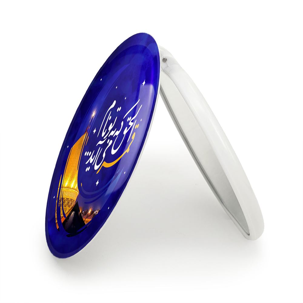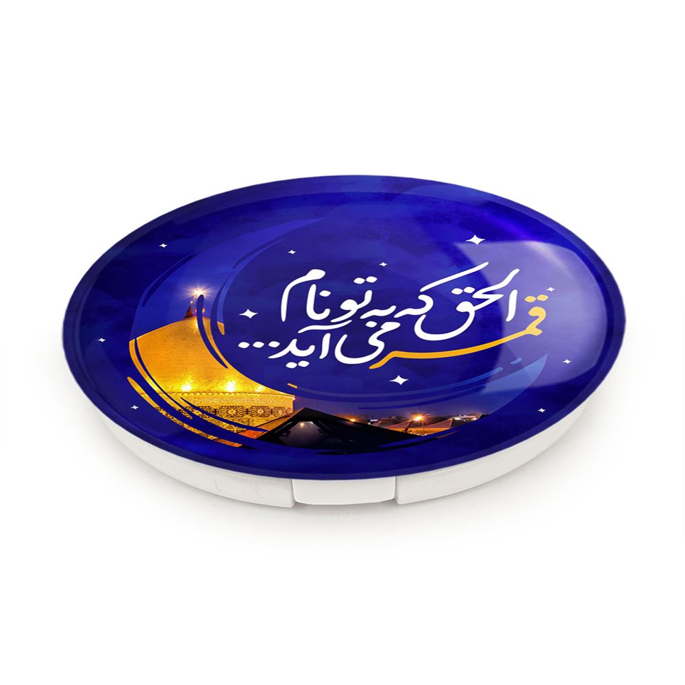 آینه های تاشو محرم الحق که به تو نام قمر می آید خندالو، از جنس پلاستیک فشرده ABS تولید شده و به رنگ سفید می باشد. یکی از آینه ها ابعاد واقعی را نشان داده و دیگری با قابلیت بزرگنمایی، جزئیات را بهتر نمایش می دهد. ابعاد هر یک از آینه ها، دایره ای به قطر 7.5 سانت می باشد که نه خیلی بزرگ و غیر قابل استفاده در کیف آرایشی ست و نه خیلی کوچک که تصویر خاصی در آن مشاهده نشود. آینه تاشو محرم الحق که به تو نام قمر می آید سایزی استاندارد و کارآمد دارد و در هر کیفی جا میگیرد. چاپ طرح بوسیله چاپگرهای دیجیتال شش رنگ با شفافیت و کیفیتی مثال زدنی بر روی یک وجه از بدنه ی آینه انجام گرفته و با روکش لمینت حرارتی پوشیده شده که در مقابل آسیب و خط و خش مقاوم بوده و کیفیت بالایی دارد. درب آینه بوسیله قفل بدنه ی آن، باز نمی ماند و کاملا بسته می شود و مناسب قرار گیری در کیف لوازم آرایش و کیف های کوچک دستی نیز هست. آینه های تاشو محرم الحق که به تو نام قمر می آید خندالو با تنوع طرحی بسیار بالا، سلیقه هر نوع مخاطبی را تامین میکند.