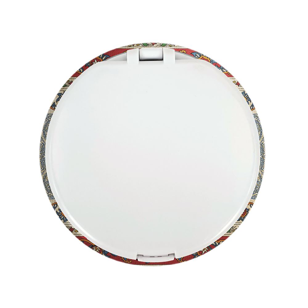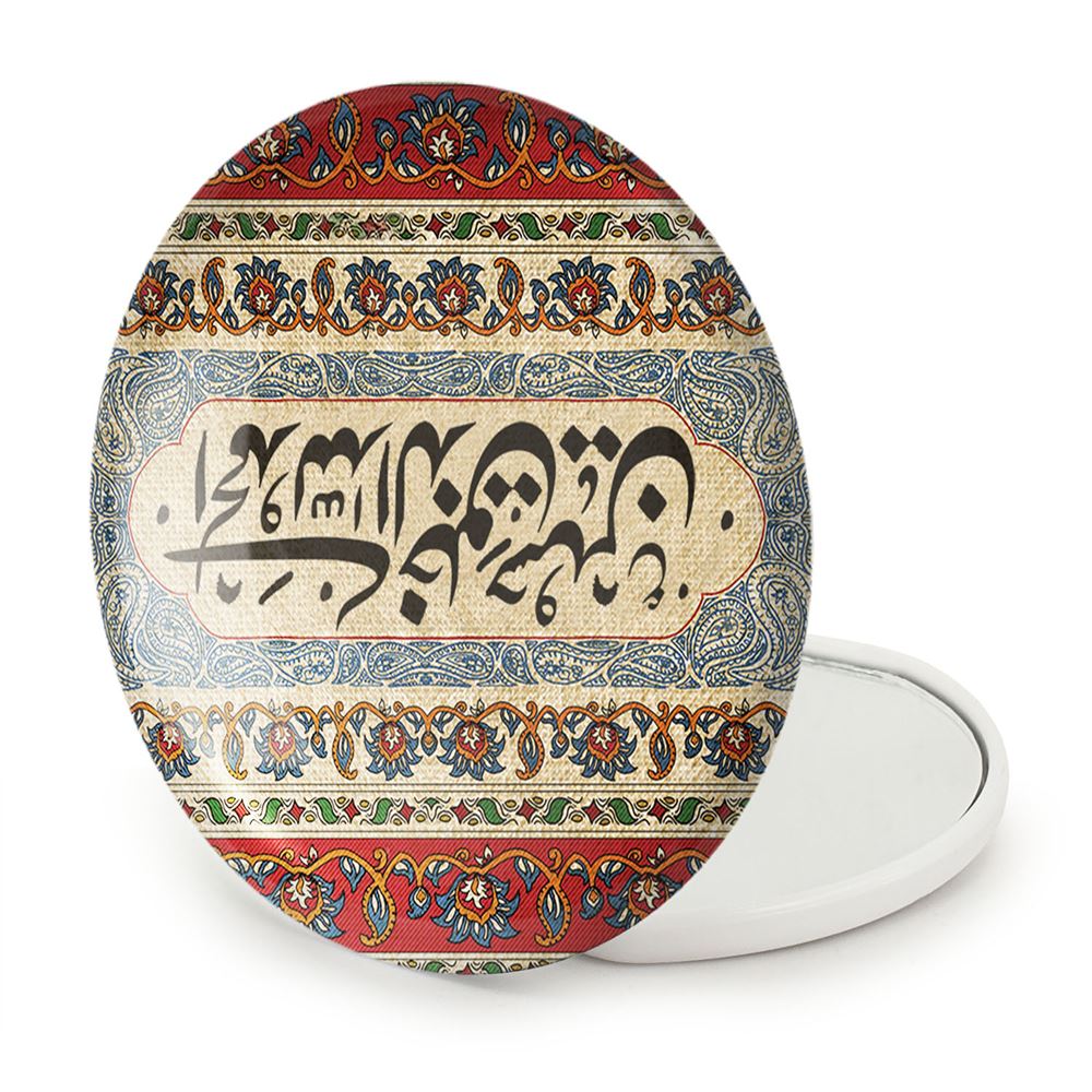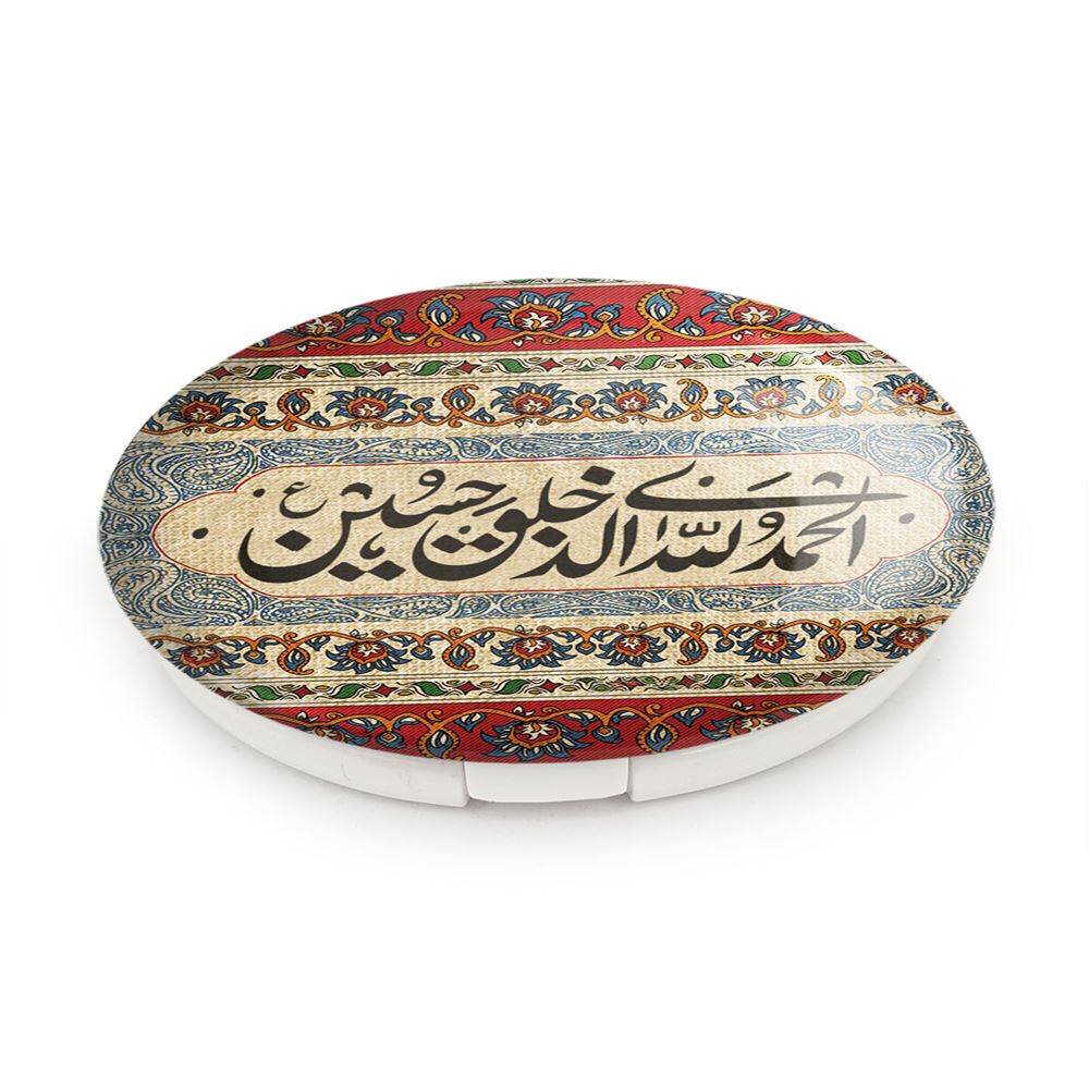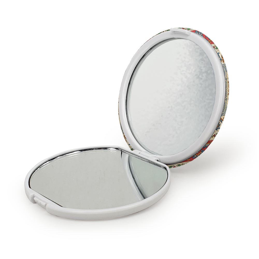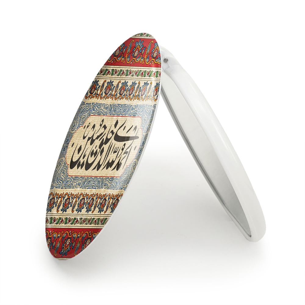 آینه های تاشو محرم الحمد الله الذی خلق حسین خندالو، از جنس پلاستیک فشرده ABS تولید شده و به رنگ سفید می باشد. یکی از آینه ها ابعاد واقعی را نشان داده و دیگری با قابلیت بزرگنمایی، جزئیات را بهتر نمایش می دهد. ابعاد هر یک از آینه ها، دایره ای به قطر 7.5 سانت می باشد که نه خیلی بزرگ و غیر قابل استفاده در کیف آرایشی ست و نه خیلی کوچک که تصویر خاصی در آن مشاهده نشود. آینه تاشو محرم الحمد الله الذی خلق حسین سایزی استاندارد و کارآمد دارد و در هر کیفی جا میگیرد. چاپ طرح بوسیله چاپگرهای دیجیتال شش رنگ با شفافیت و کیفیتی مثال زدنی بر روی یک وجه از بدنه ی آینه انجام گرفته و با روکش لمینت حرارتی پوشیده شده که در مقابل آسیب و خط و خش مقاوم بوده و کیفیت بالایی دارد. درب آینه بوسیله قفل بدنه ی آن، باز نمی ماند و کاملا بسته می شود و مناسب قرار گیری در کیف لوازم آرایش و کیف های کوچک دستی نیز هست. آینه های تاشو محرم الحمد الله الذی خلق حسین خندالو با تنوع طرحی بسیار بالا، سلیقه هر نوع مخاطبی را تامین میکند.