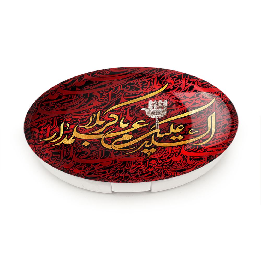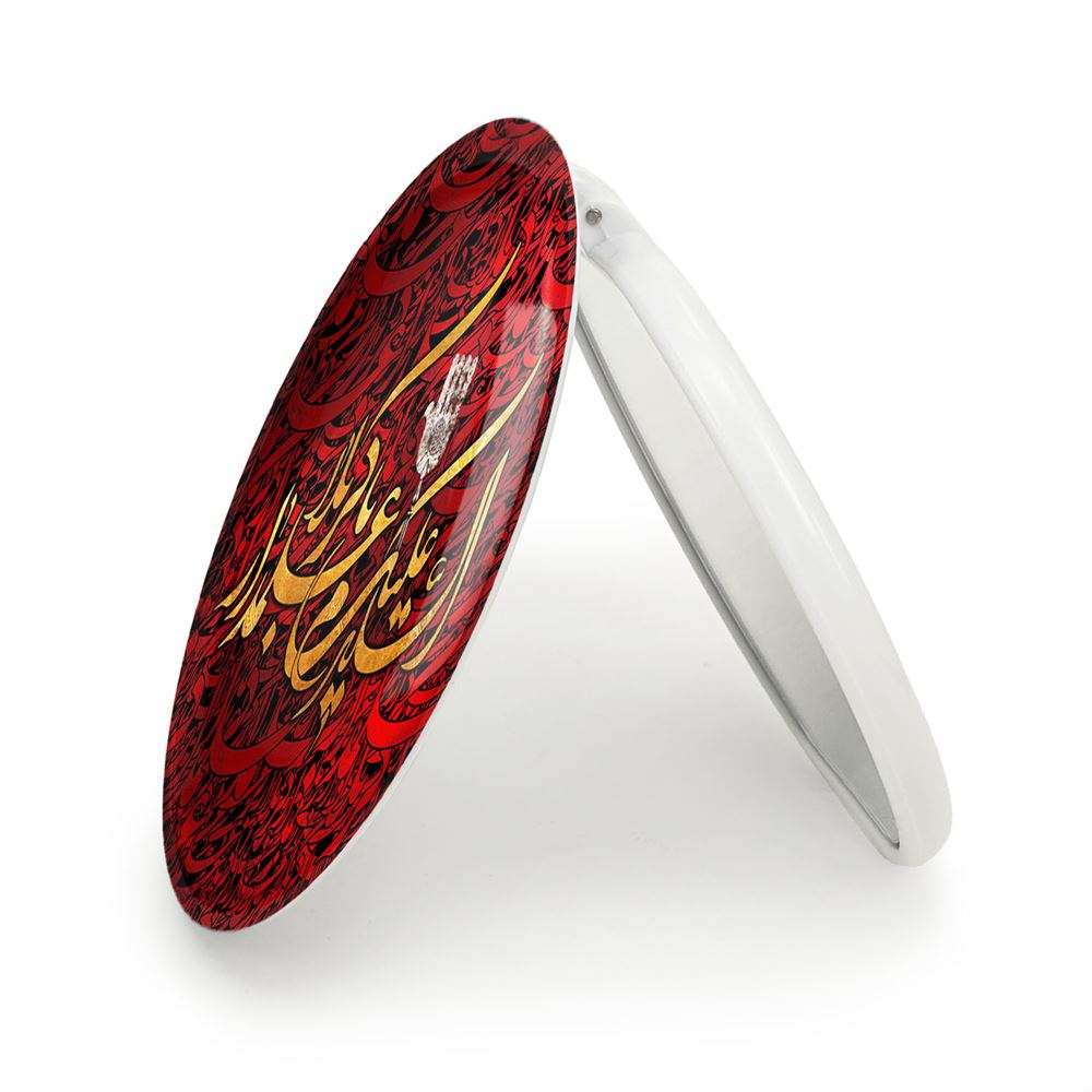 آینه های تاشو محرم السلام علیک یا علمدار کربلا خندالو، از جنس پلاستیک فشرده ABS تولید شده و به رنگ سفید می باشد. یکی از آینه ها ابعاد واقعی را نشان داده و دیگری با قابلیت بزرگنمایی، جزئیات را بهتر نمایش می دهد. ابعاد هر یک از آینه ها، دایره ای به قطر 7.5 سانت می باشد که نه خیلی بزرگ و غیر قابل استفاده در کیف آرایشی ست و نه خیلی کوچک که تصویر خاصی در آن مشاهده نشود. آینه تاشو محرم السلام علیک یا علمدار کربلا سایزی استاندارد و کارآمد دارد و در هر کیفی جا میگیرد. چاپ طرح بوسیله چاپگرهای دیجیتال شش رنگ با شفافیت و کیفیتی مثال زدنی بر روی یک وجه از بدنه ی آینه انجام گرفته و با روکش لمینت حرارتی پوشیده شده که در مقابل آسیب و خط و خش مقاوم بوده و کیفیت بالایی دارد. درب آینه بوسیله قفل بدنه ی آن، باز نمی ماند و کاملا بسته می شود و مناسب قرار گیری در کیف لوازم آرایش و کیف های کوچک دستی نیز هست. آینه های تاشو محرم السلام علیک یا علمدار کربلا خندالو با تنوع طرحی بسیار بالا، سلیقه هر نوع مخاطبی را تامین میکند.