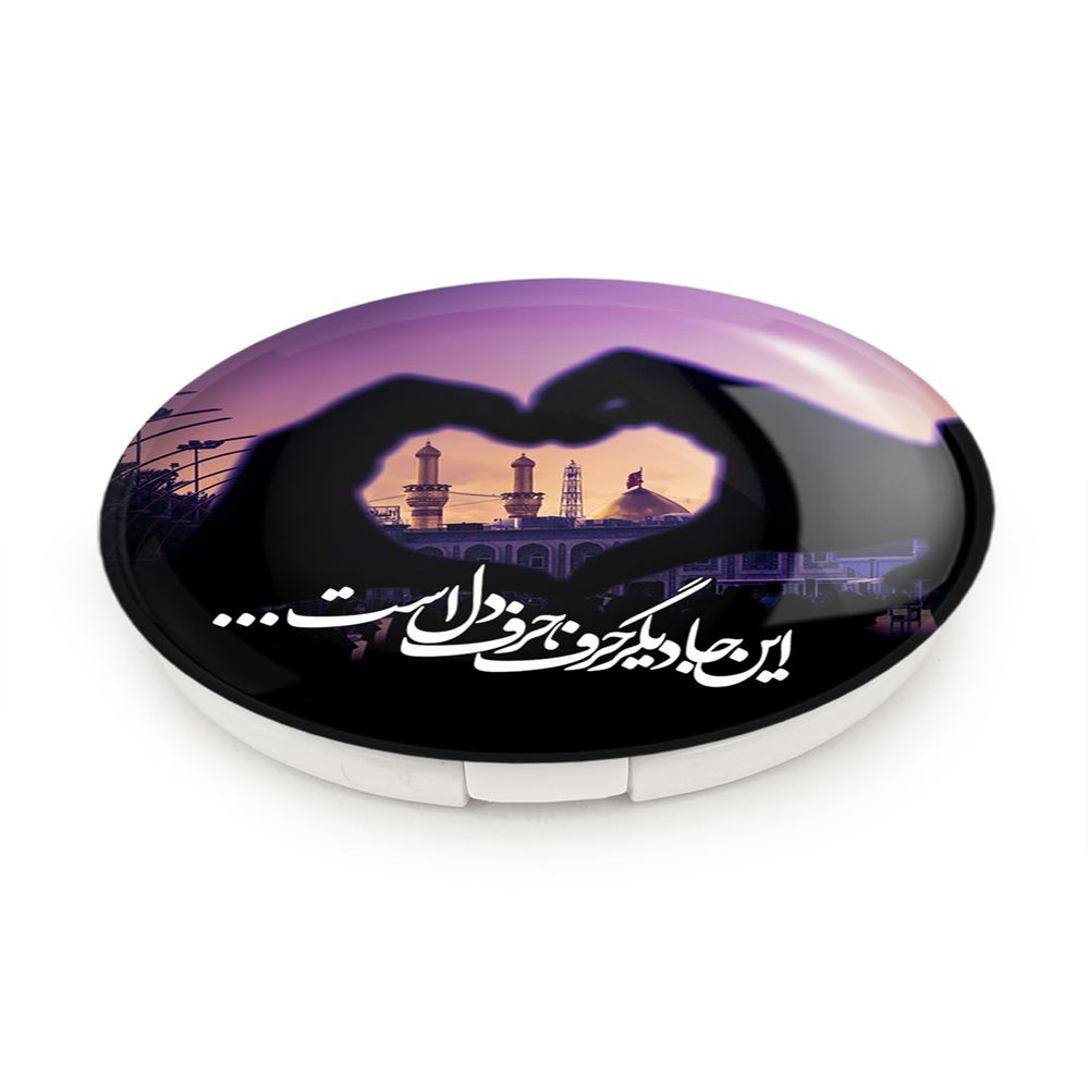 آینه های تاشو محرم این جا دیگر حرف، حرف دل خندالو، از جنس پلاستیک فشرده ABS تولید شده و به رنگ سفید می باشد. یکی از آینه ها ابعاد واقعی را نشان داده و دیگری با قابلیت بزرگنمایی، جزئیات را بهتر نمایش می دهد. ابعاد هر یک از آینه ها، دایره ای به قطر 7.5 سانت می باشد که نه خیلی بزرگ و غیر قابل استفاده در کیف آرایشی ست و نه خیلی کوچک که تصویر خاصی در آن مشاهده نشود. آینه تاشو محرم این جا دیگر حرف، حرف دل سایزی استاندارد و کارآمد دارد و در هر کیفی جا میگیرد. چاپ طرح بوسیله چاپگرهای دیجیتال شش رنگ با شفافیت و کیفیتی مثال زدنی بر روی یک وجه از بدنه ی آینه انجام گرفته و با روکش لمینت حرارتی پوشیده شده که در مقابل آسیب و خط و خش مقاوم بوده و کیفیت بالایی دارد. درب آینه بوسیله قفل بدنه ی آن، باز نمی ماند و کاملا بسته می شود و مناسب قرار گیری در کیف لوازم آرایش و کیف های کوچک دستی نیز هست. آینه های تاشو محرم این جا دیگر حرف، حرف دل خندالو با تنوع طرحی بسیار بالا، سلیقه هر نوع مخاطبی را تامین میکند.
