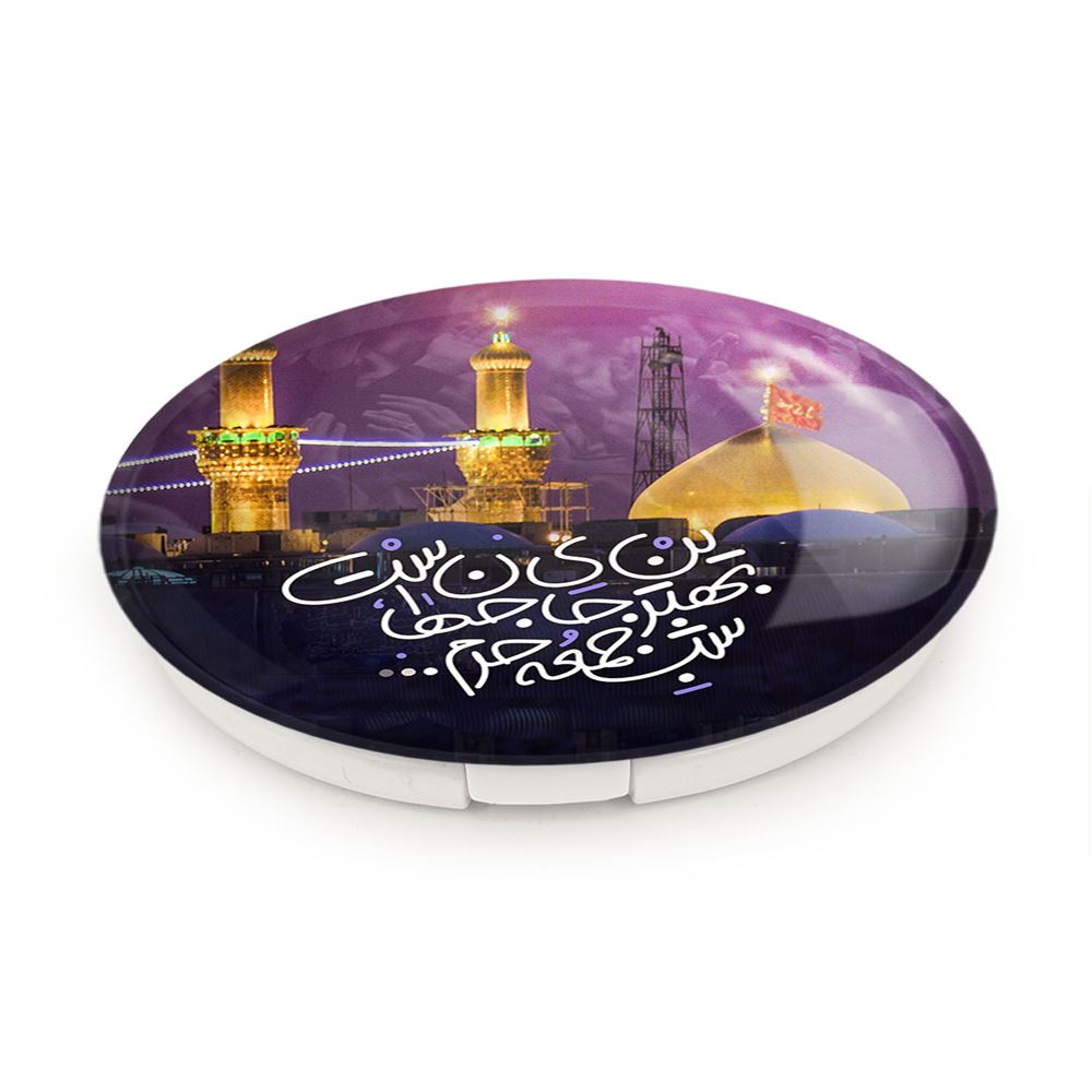 آینه های تاشو محرم بهترین جای جهان است شب جمعه حرم خندالو، از جنس پلاستیک فشرده ABS تولید شده و به رنگ سفید می باشد. یکی از آینه ها ابعاد واقعی را نشان داده و دیگری با قابلیت بزرگنمایی، جزئیات را بهتر نمایش می دهد. ابعاد هر یک از آینه ها، دایره ای به قطر 7.5 سانت می باشد که نه خیلی بزرگ و غیر قابل استفاده در کیف آرایشی ست و نه خیلی کوچک که تصویر خاصی در آن مشاهده نشود. آینه تاشو محرم بهترین جای جهان است شب جمعه حرم سایزی استاندارد و کارآمد دارد و در هر کیفی جا میگیرد. چاپ طرح بوسیله چاپگرهای دیجیتال شش رنگ با شفافیت و کیفیتی مثال زدنی بر روی یک وجه از بدنه ی آینه انجام گرفته و با روکش لمینت حرارتی پوشیده شده که در مقابل آسیب و خط و خش مقاوم بوده و کیفیت بالایی دارد. درب آینه بوسیله قفل بدنه ی آن، باز نمی ماند و کاملا بسته می شود و مناسب قرار گیری در کیف لوازم آرایش و کیف های کوچک دستی نیز هست. آینه های تاشو محرم بهترین جای جهان است شب جمعه حرم خندالو با تنوع طرحی بسیار بالا، سلیقه هر نوع مخاطبی را تامین میکند.