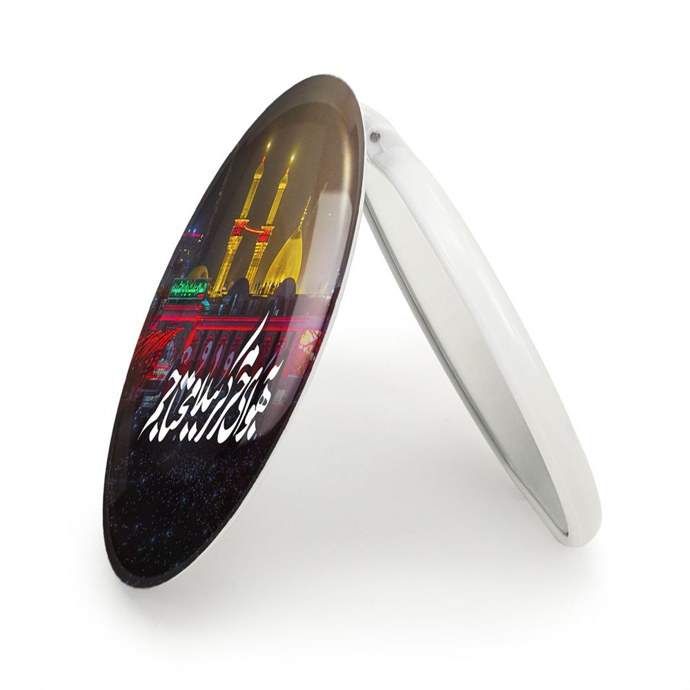 آینه های تاشو محرم به هوای حرم کربُبلا محتاجم خندالو، از جنس پلاستیک فشرده ABS تولید شده و به رنگ سفید می باشد. یکی از آینه ها ابعاد واقعی را نشان داده و دیگری با قابلیت بزرگنمایی، جزئیات را بهتر نمایش می دهد. ابعاد هر یک از آینه ها، دایره ای به قطر 7.5 سانت می باشد که نه خیلی بزرگ و غیر قابل استفاده در کیف آرایشی ست و نه خیلی کوچک که تصویر خاصی در آن مشاهده نشود. آینه تاشو محرم به هوای حرم کربُبلا محتاجم سایزی استاندارد و کارآمد دارد و در هر کیفی جا میگیرد. چاپ طرح بوسیله چاپگرهای دیجیتال شش رنگ با شفافیت و کیفیتی مثال زدنی بر روی یک وجه از بدنه ی آینه انجام گرفته و با روکش لمینت حرارتی پوشیده شده که در مقابل آسیب و خط و خش مقاوم بوده و کیفیت بالایی دارد. درب آینه بوسیله قفل بدنه ی آن، باز نمی ماند و کاملا بسته می شود و مناسب قرار گیری در کیف لوازم آرایش و کیف های کوچک دستی نیز هست. آینه های تاشو محرم به هوای حرم کربُبلا محتاجم خندالو با تنوع طرحی بسیار بالا، سلیقه هر نوع مخاطبی را تامین میکند.