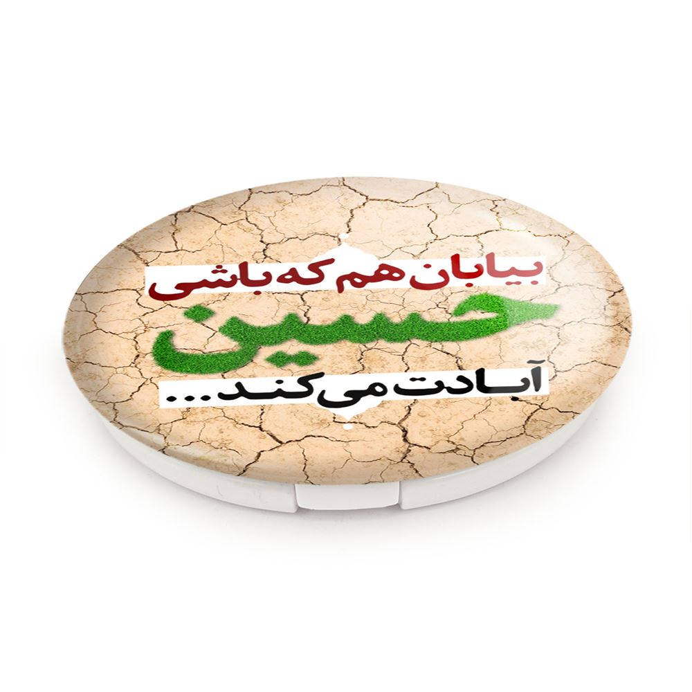 آینه های تاشو محرم بیابان هم که باشی حسین آبادت می کند خندالو، از جنس پلاستیک فشرده ABS تولید شده و به رنگ سفید می باشد. یکی از آینه ها ابعاد واقعی را نشان داده و دیگری با قابلیت بزرگنمایی، جزئیات را بهتر نمایش می دهد. ابعاد هر یک از آینه ها، دایره ای به قطر 7.5 سانت می باشد که نه خیلی بزرگ و غیر قابل استفاده در کیف آرایشی ست و نه خیلی کوچک که تصویر خاصی در آن مشاهده نشود. آینه تاشو محرم بیابان هم که باشی حسین آبادت می کند سایزی استاندارد و کارآمد دارد و در هر کیفی جا میگیرد. چاپ طرح بوسیله چاپگرهای دیجیتال شش رنگ با شفافیت و کیفیتی مثال زدنی بر روی یک وجه از بدنه ی آینه انجام گرفته و با روکش لمینت حرارتی پوشیده شده که در مقابل آسیب و خط و خش مقاوم بوده و کیفیت بالایی دارد. درب آینه بوسیله قفل بدنه ی آن، باز نمی ماند و کاملا بسته می شود و مناسب قرار گیری در کیف لوازم آرایش و کیف های کوچک دستی نیز هست. آینه های تاشو محرم بیابان هم که باشی حسین آبادت می کند خندالو با تنوع طرحی بسیار بالا، سلیقه هر نوع مخاطبی را تامین میکند.