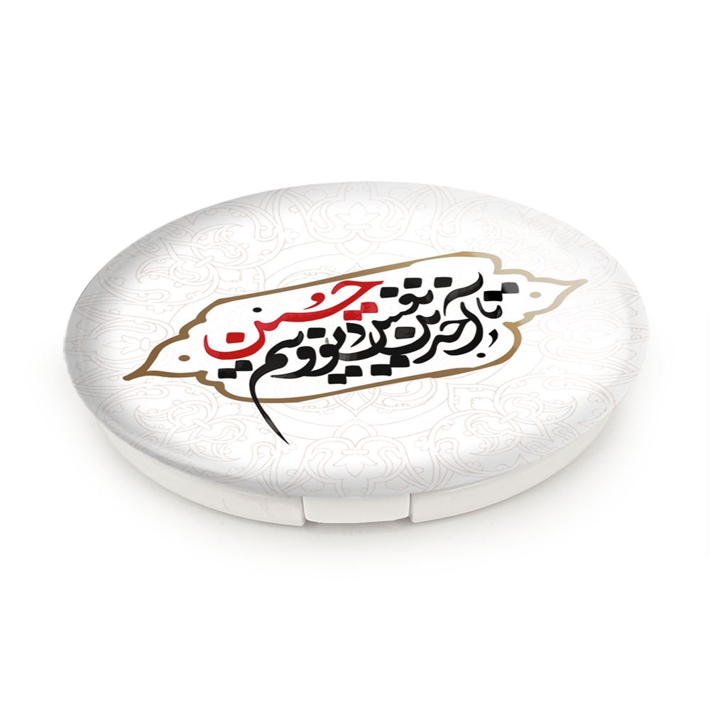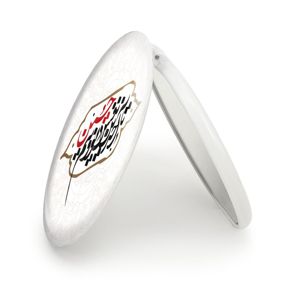 آینه های تاشو محرم تا آخرین نفس دیوونتم حسین خندالو، از جنس پلاستیک فشرده ABS تولید شده و به رنگ سفید می باشد. یکی از آینه ها ابعاد واقعی را نشان داده و دیگری با قابلیت بزرگنمایی، جزئیات را بهتر نمایش می دهد. ابعاد هر یک از آینه ها، دایره ای به قطر 7.5 سانت می باشد که نه خیلی بزرگ و غیر قابل استفاده در کیف آرایشی ست و نه خیلی کوچک که تصویر خاصی در آن مشاهده نشود. آینه تاشو محرم تا آخرین نفس دیوونتم حسین سایزی استاندارد و کارآمد دارد و در هر کیفی جا میگیرد. چاپ طرح بوسیله چاپگرهای دیجیتال شش رنگ با شفافیت و کیفیتی مثال زدنی بر روی یک وجه از بدنه ی آینه انجام گرفته و با روکش لمینت حرارتی پوشیده شده که در مقابل آسیب و خط و خش مقاوم بوده و کیفیت بالایی دارد. درب آینه بوسیله قفل بدنه ی آن، باز نمی ماند و کاملا بسته می شود و مناسب قرار گیری در کیف لوازم آرایش و کیف های کوچک دستی نیز هست. آینه های تاشو محرم تا آخرین نفس دیوونتم حسین خندالو با تنوع طرحی بسیار بالا، سلیقه هر نوع مخاطبی را تامین میکند.
