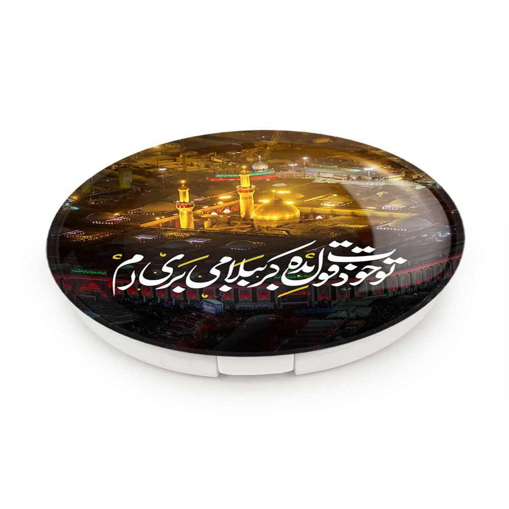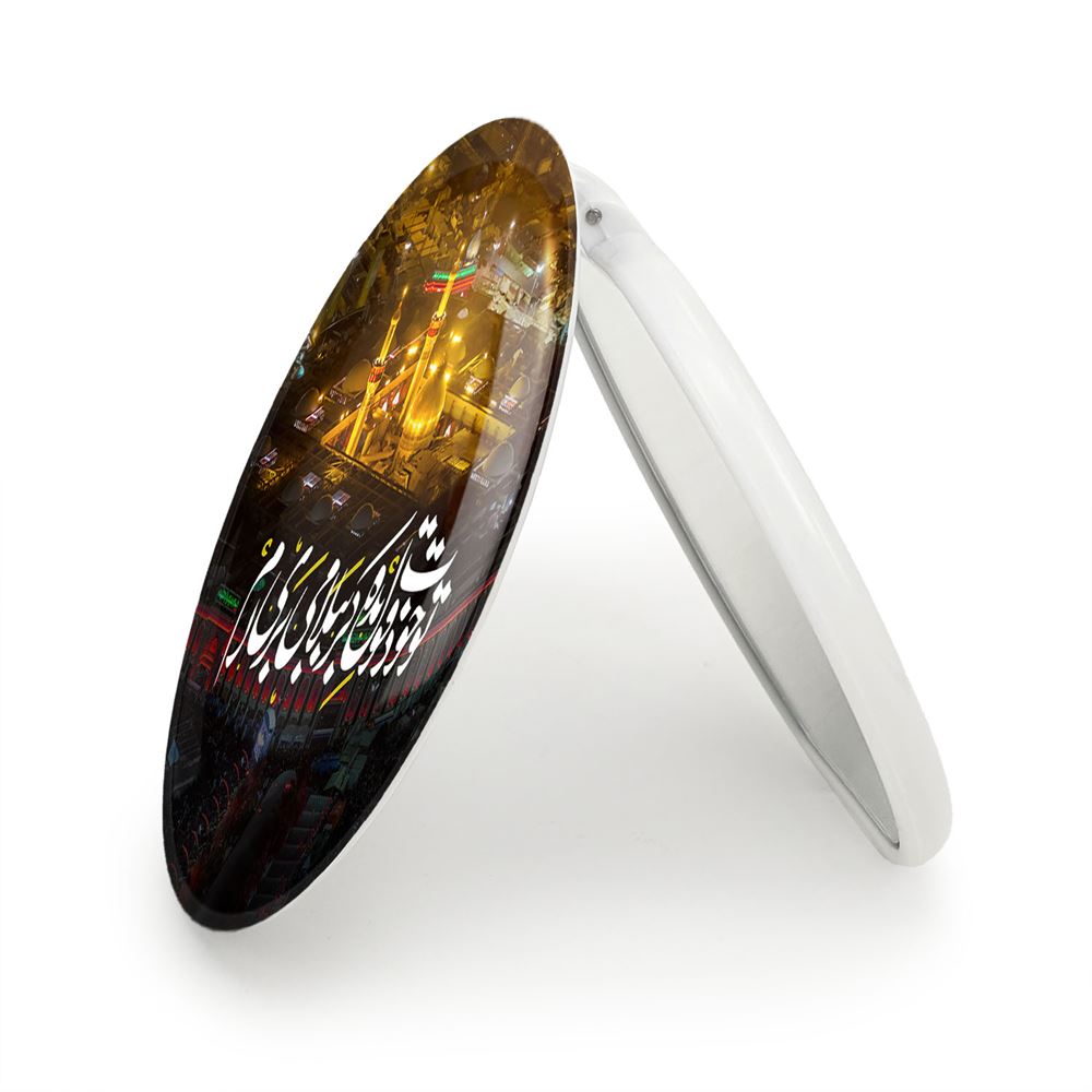 آینه های تاشو محرم تو خودت قول بده کربُبلا می بری ام خندالو، از جنس پلاستیک فشرده ABS تولید شده و به رنگ سفید می باشد. یکی از آینه ها ابعاد واقعی را نشان داده و دیگری با قابلیت بزرگنمایی، جزئیات را بهتر نمایش می دهد. ابعاد هر یک از آینه ها، دایره ای به قطر 7.5 سانت می باشد که نه خیلی بزرگ و غیر قابل استفاده در کیف آرایشی ست و نه خیلی کوچک که تصویر خاصی در آن مشاهده نشود. آینه تاشو محرم تو خودت قول بده کربُبلا می بری ام سایزی استاندارد و کارآمد دارد و در هر کیفی جا میگیرد. چاپ طرح بوسیله چاپگرهای دیجیتال شش رنگ با شفافیت و کیفیتی مثال زدنی بر روی یک وجه از بدنه ی آینه انجام گرفته و با روکش لمینت حرارتی پوشیده شده که در مقابل آسیب و خط و خش مقاوم بوده و کیفیت بالایی دارد. درب آینه بوسیله قفل بدنه ی آن، باز نمی ماند و کاملا بسته می شود و مناسب قرار گیری در کیف لوازم آرایش و کیف های کوچک دستی نیز هست. آینه های تاشو محرم تو خودت قول بده کربُبلا می بری ام خندالو با تنوع طرحی بسیار بالا، سلیقه هر نوع مخاطبی را تامین میکند.