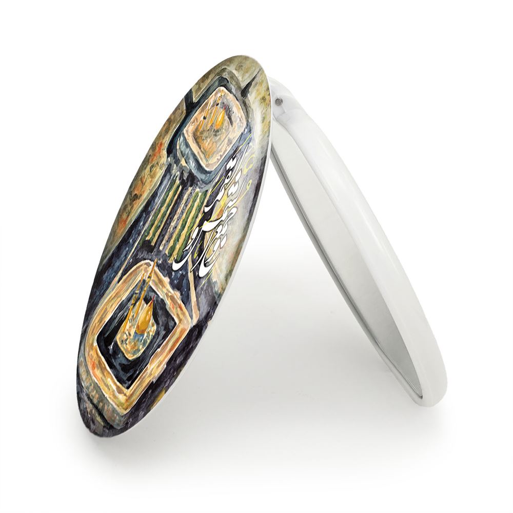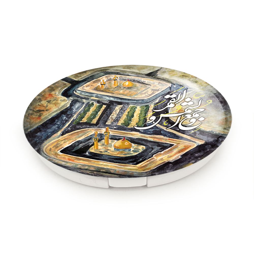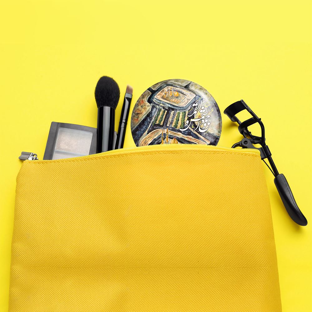 آینه های تاشو محرم جمع الشمس و القمر یعنی که دو برادر در کنار هم اند خندالو، از جنس پلاستیک فشرده ABS تولید شده و به رنگ سفید می باشد. یکی از آینه ها ابعاد واقعی را نشان داده و دیگری با قابلیت بزرگنمایی، جزئیات را بهتر نمایش می دهد. ابعاد هر یک از آینه ها، دایره ای به قطر 7.5 سانت می باشد که نه خیلی بزرگ و غیر قابل استفاده در کیف آرایشی ست و نه خیلی کوچک که تصویر خاصی در آن مشاهده نشود. آینه تاشو محرم جمع الشمس و القمر یعنی که دو برادر در کنار هم اند سایزی استاندارد و کارآمد دارد و در هر کیفی جا میگیرد. چاپ طرح بوسیله چاپگرهای دیجیتال شش رنگ با شفافیت و کیفیتی مثال زدنی بر روی یک وجه از بدنه ی آینه انجام گرفته و با روکش لمینت حرارتی پوشیده شده که در مقابل آسیب و خط و خش مقاوم بوده و کیفیت بالایی دارد. درب آینه بوسیله قفل بدنه ی آن، باز نمی ماند و کاملا بسته می شود و مناسب قرار گیری در کیف لوازم آرایش و کیف های کوچک دستی نیز هست. آینه های تاشو محرم جمع الشمس و القمر یعنی که دو برادر در کنار هم اند خندالو با تنوع طرحی بسیار بالا، سلیقه هر نوع مخاطبی را تامین میکند.