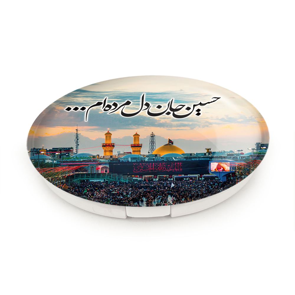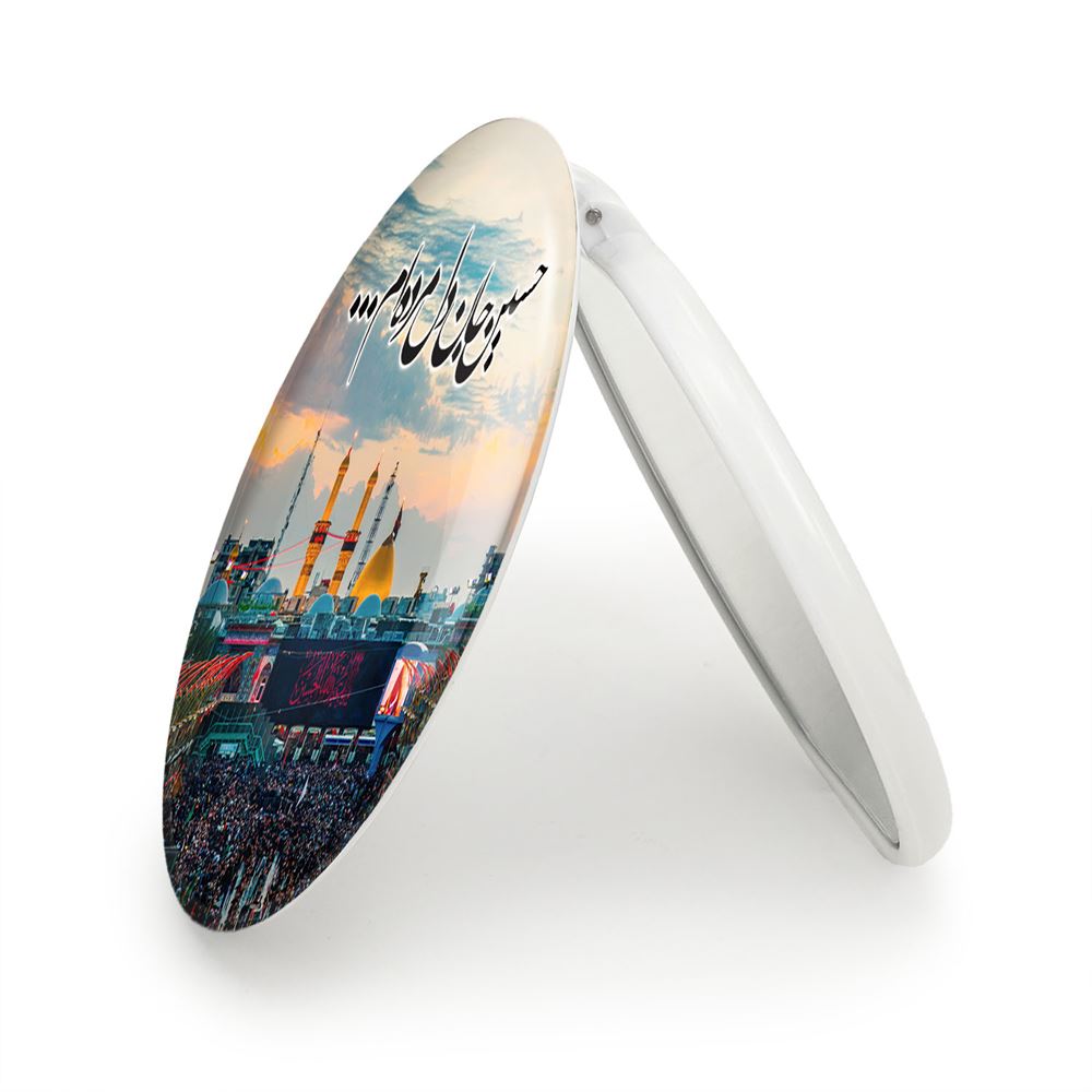 آینه های تاشو محرم حسین جان دل مرده ام خندالو، از جنس پلاستیک فشرده ABS تولید شده و به رنگ سفید می باشد. یکی از آینه ها ابعاد واقعی را نشان داده و دیگری با قابلیت بزرگنمایی، جزئیات را بهتر نمایش می دهد. ابعاد هر یک از آینه ها، دایره ای به قطر 7.5 سانت می باشد که نه خیلی بزرگ و غیر قابل استفاده در کیف آرایشی ست و نه خیلی کوچک که تصویر خاصی در آن مشاهده نشود. آینه تاشو محرم حسین جان دل مرده ام سایزی استاندارد و کارآمد دارد و در هر کیفی جا میگیرد. چاپ طرح بوسیله چاپگرهای دیجیتال شش رنگ با شفافیت و کیفیتی مثال زدنی بر روی یک وجه از بدنه ی آینه انجام گرفته و با روکش لمینت حرارتی پوشیده شده که در مقابل آسیب و خط و خش مقاوم بوده و کیفیت بالایی دارد. درب آینه بوسیله قفل بدنه ی آن، باز نمی ماند و کاملا بسته می شود و مناسب قرار گیری در کیف لوازم آرایش و کیف های کوچک دستی نیز هست. آینه های تاشو محرم حسین جان دل مرده ام خندالو با تنوع طرحی بسیار بالا، سلیقه هر نوع مخاطبی را تامین میکند.