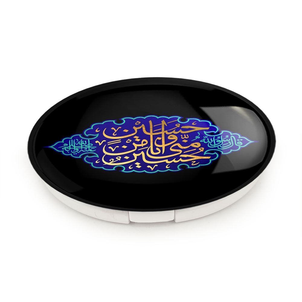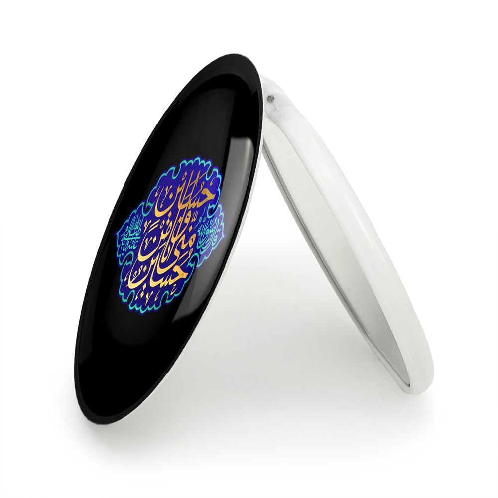 آینه های تاشو محرم حسین منی و أنا من حسین خندالو، از جنس پلاستیک فشرده ABS تولید شده و به رنگ سفید می باشد. یکی از آینه ها ابعاد واقعی را نشان داده و دیگری با قابلیت بزرگنمایی، جزئیات را بهتر نمایش می دهد. ابعاد هر یک از آینه ها، دایره ای به قطر 7.5 سانت می باشد که نه خیلی بزرگ و غیر قابل استفاده در کیف آرایشی ست و نه خیلی کوچک که تصویر خاصی در آن مشاهده نشود. آینه تاشو محرم حسین منی و أنا من حسین سایزی استاندارد و کارآمد دارد و در هر کیفی جا میگیرد. چاپ طرح بوسیله چاپگرهای دیجیتال شش رنگ با شفافیت و کیفیتی مثال زدنی بر روی یک وجه از بدنه ی آینه انجام گرفته و با روکش لمینت حرارتی پوشیده شده که در مقابل آسیب و خط و خش مقاوم بوده و کیفیت بالایی دارد. درب آینه بوسیله قفل بدنه ی آن، باز نمی ماند و کاملا بسته می شود و مناسب قرار گیری در کیف لوازم آرایش و کیف های کوچک دستی نیز هست. آینه های تاشو محرم حسین منی و أنا من حسین خندالو با تنوع طرحی بسیار بالا، سلیقه هر نوع مخاطبی را تامین میکند.