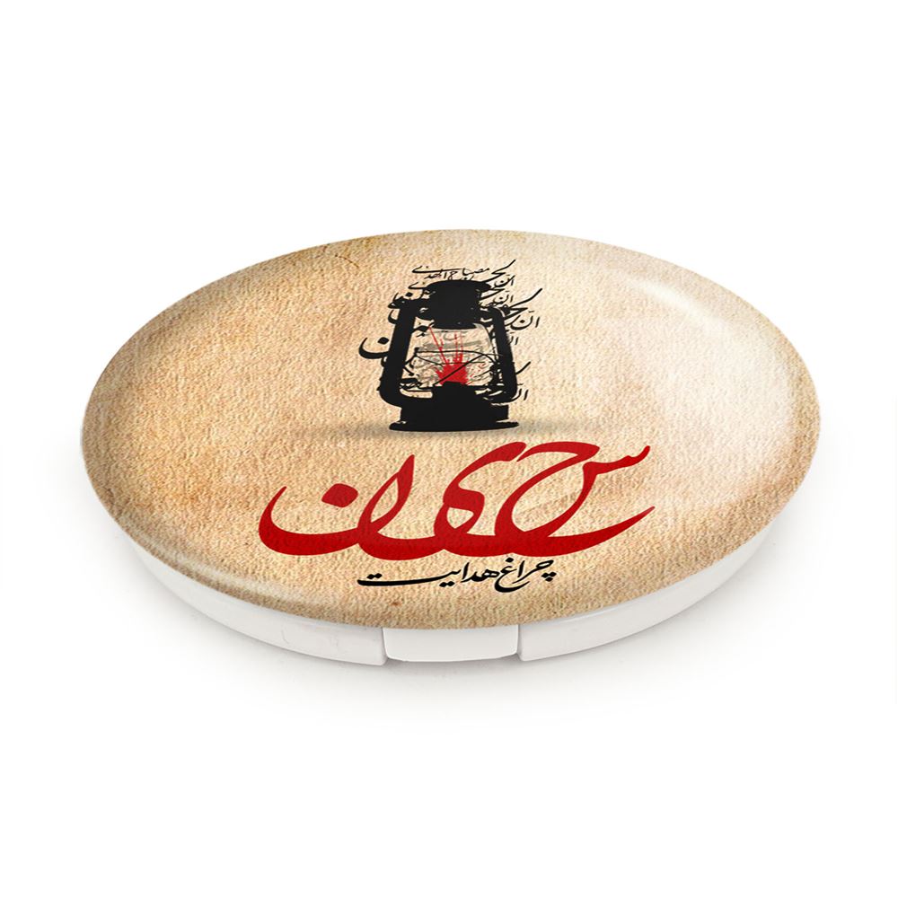 آینه های تاشو محرم حسین چراغ هدایت خندالو، از جنس پلاستیک فشرده ABS تولید شده و به رنگ سفید می باشد. یکی از آینه ها ابعاد واقعی را نشان داده و دیگری با قابلیت بزرگنمایی، جزئیات را بهتر نمایش می دهد. ابعاد هر یک از آینه ها، دایره ای به قطر 7.5 سانت می باشد که نه خیلی بزرگ و غیر قابل استفاده در کیف آرایشی ست و نه خیلی کوچک که تصویر خاصی در آن مشاهده نشود. آینه تاشو محرم حسین چراغ هدایت سایزی استاندارد و کارآمد دارد و در هر کیفی جا میگیرد. چاپ طرح بوسیله چاپگرهای دیجیتال شش رنگ با شفافیت و کیفیتی مثال زدنی بر روی یک وجه از بدنه ی آینه انجام گرفته و با روکش لمینت حرارتی پوشیده شده که در مقابل آسیب و خط و خش مقاوم بوده و کیفیت بالایی دارد. درب آینه بوسیله قفل بدنه ی آن، باز نمی ماند و کاملا بسته می شود و مناسب قرار گیری در کیف لوازم آرایش و کیف های کوچک دستی نیز هست. آینه های تاشو محرم حسین چراغ هدایت خندالو با تنوع طرحی بسیار بالا، سلیقه هر نوع مخاطبی را تامین میکند.