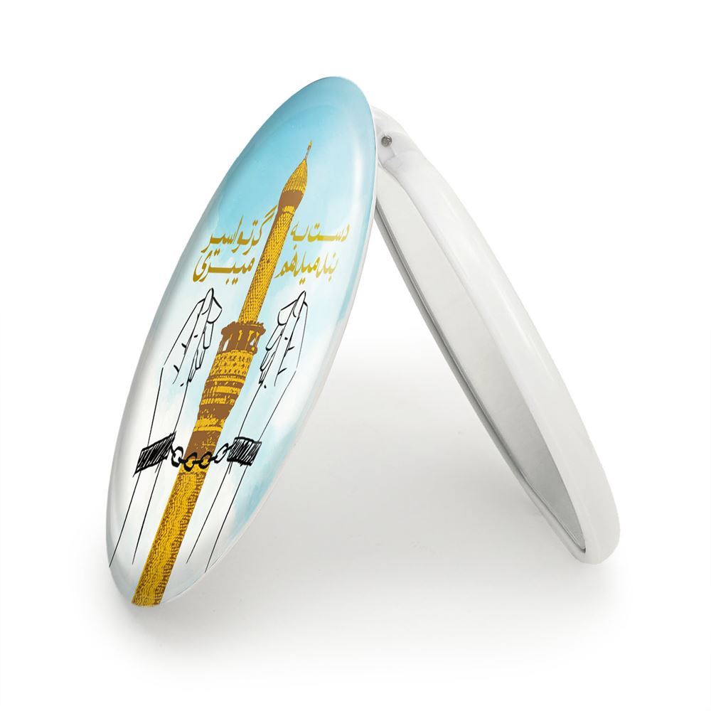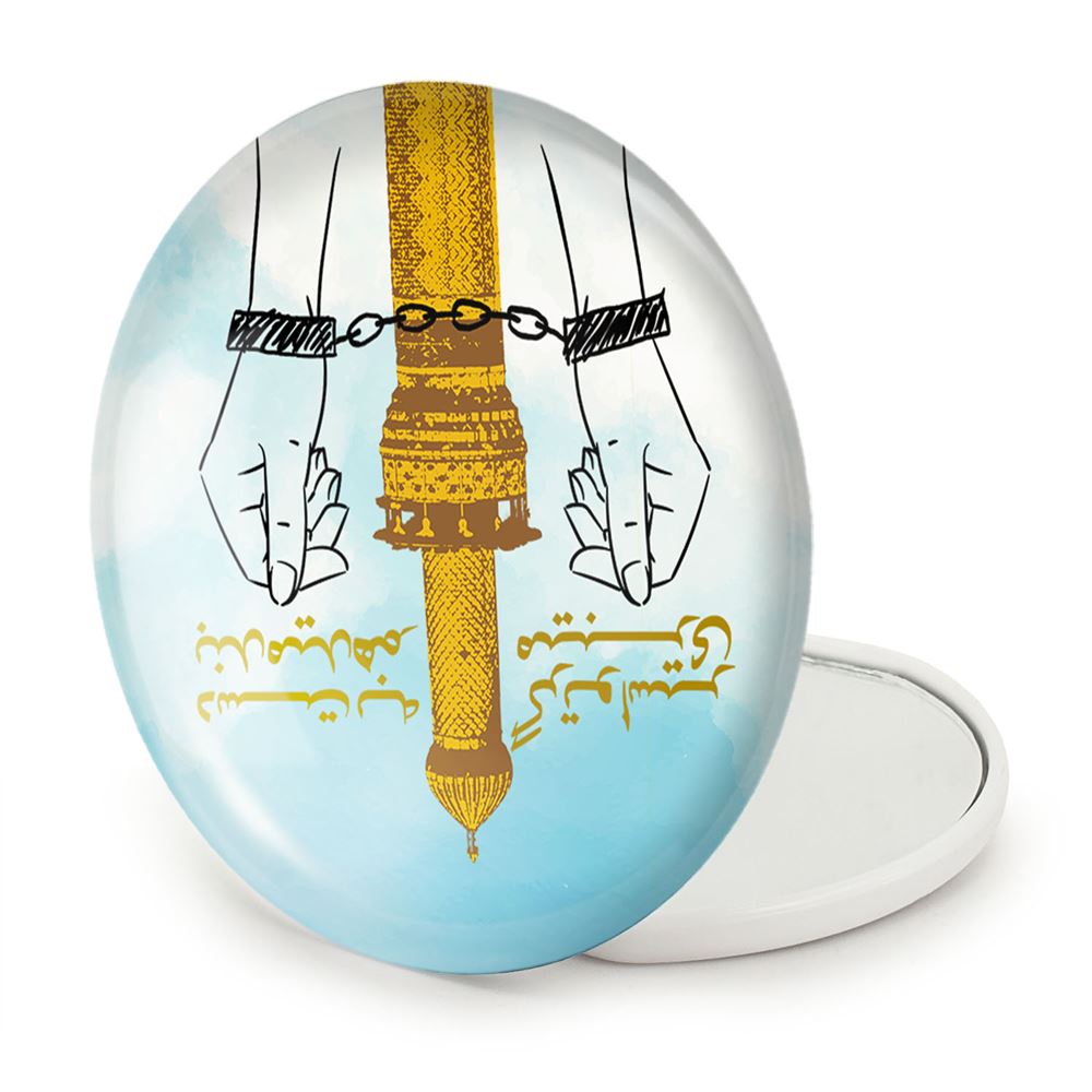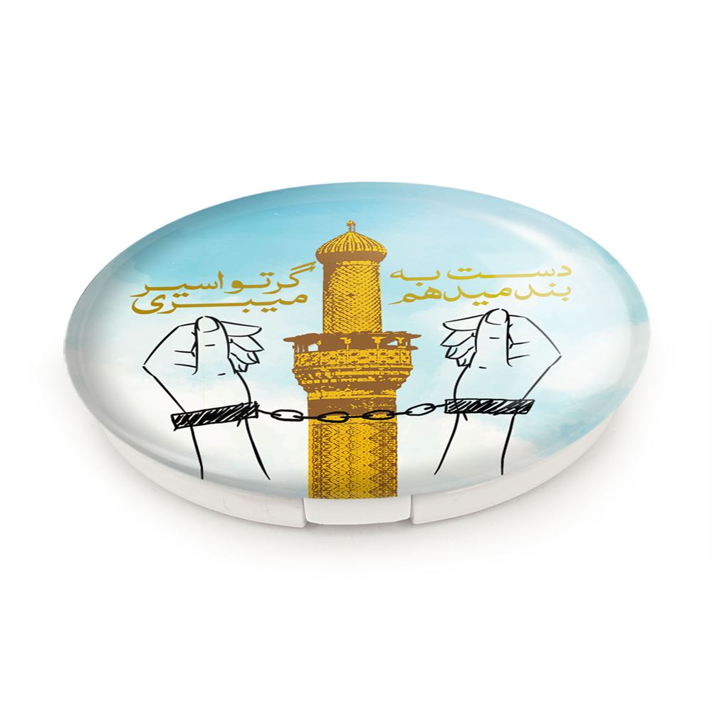 آینه های تاشو محرم دست به بند میدهم گر تو اسیر میبری خندالو، از جنس پلاستیک فشرده ABS تولید شده و به رنگ سفید می باشد. یکی از آینه ها ابعاد واقعی را نشان داده و دیگری با قابلیت بزرگنمایی، جزئیات را بهتر نمایش می دهد. ابعاد هر یک از آینه ها، دایره ای به قطر 7.5 سانت می باشد که نه خیلی بزرگ و غیر قابل استفاده در کیف آرایشی ست و نه خیلی کوچک که تصویر خاصی در آن مشاهده نشود. آینه تاشو محرم دست به بند میدهم گر تو اسیر میبری سایزی استاندارد و کارآمد دارد و در هر کیفی جا میگیرد. چاپ طرح بوسیله چاپگرهای دیجیتال شش رنگ با شفافیت و کیفیتی مثال زدنی بر روی یک وجه از بدنه ی آینه انجام گرفته و با روکش لمینت حرارتی پوشیده شده که در مقابل آسیب و خط و خش مقاوم بوده و کیفیت بالایی دارد. درب آینه بوسیله قفل بدنه ی آن، باز نمی ماند و کاملا بسته می شود و مناسب قرار گیری در کیف لوازم آرایش و کیف های کوچک دستی نیز هست. آینه های تاشو محرم دست به بند میدهم گر تو اسیر میبری خندالو با تنوع طرحی بسیار بالا، سلیقه هر نوع مخاطبی را تامین میکند.
