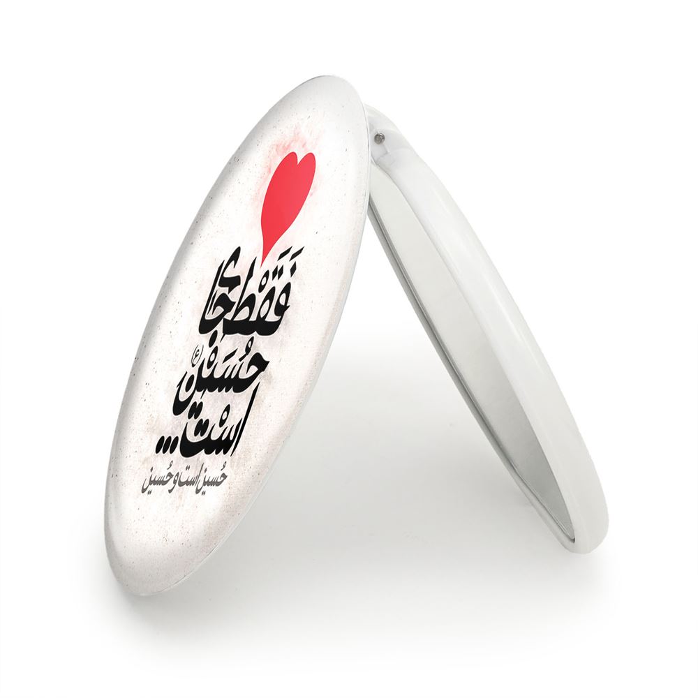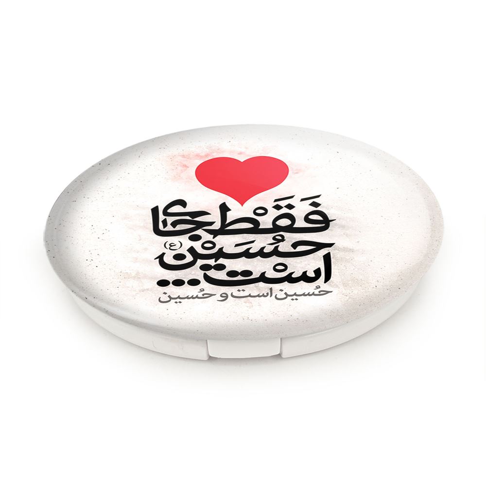 آینه های تاشو محرم دل فقط جای حسین است ، حسین است و حسین خندالو، از جنس پلاستیک فشرده ABS تولید شده و به رنگ سفید می باشد. یکی از آینه ها ابعاد واقعی را نشان داده و دیگری با قابلیت بزرگنمایی، جزئیات را بهتر نمایش می دهد. ابعاد هر یک از آینه ها، دایره ای به قطر 7.5 سانت می باشد که نه خیلی بزرگ و غیر قابل استفاده در کیف آرایشی ست و نه خیلی کوچک که تصویر خاصی در آن مشاهده نشود. آینه تاشو محرم دل فقط جای حسین است ، حسین است و حسین سایزی استاندارد و کارآمد دارد و در هر کیفی جا میگیرد. چاپ طرح بوسیله چاپگرهای دیجیتال شش رنگ با شفافیت و کیفیتی مثال زدنی بر روی یک وجه از بدنه ی آینه انجام گرفته و با روکش لمینت حرارتی پوشیده شده که در مقابل آسیب و خط و خش مقاوم بوده و کیفیت بالایی دارد. درب آینه بوسیله قفل بدنه ی آن، باز نمی ماند و کاملا بسته می شود و مناسب قرار گیری در کیف لوازم آرایش و کیف های کوچک دستی نیز هست. آینه های تاشو محرم دل فقط جای حسین است ، حسین است و حسین خندالو با تنوع طرحی بسیار بالا، سلیقه هر نوع مخاطبی را تامین میکند.