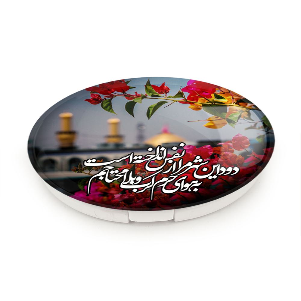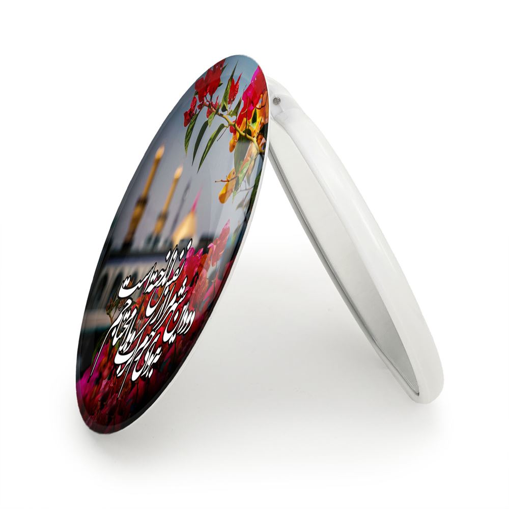 آینه های تاشو محرم دود این شهر مرا از نفس انداخته است به هوای حرم کرببلا محتاجم خندالو، از جنس پلاستیک فشرده ABS تولید شده و به رنگ سفید می باشد. یکی از آینه ها ابعاد واقعی را نشان داده و دیگری با قابلیت بزرگنمایی، جزئیات را بهتر نمایش می دهد. ابعاد هر یک از آینه ها، دایره ای به قطر 7.5 سانت می باشد که نه خیلی بزرگ و غیر قابل استفاده در کیف آرایشی ست و نه خیلی کوچک که تصویر خاصی در آن مشاهده نشود. آینه تاشو محرم دود این شهر مرا از نفس انداخته است به هوای حرم کرببلا محتاجم سایزی استاندارد و کارآمد دارد و در هر کیفی جا میگیرد. چاپ طرح بوسیله چاپگرهای دیجیتال شش رنگ با شفافیت و کیفیتی مثال زدنی بر روی یک وجه از بدنه ی آینه انجام گرفته و با روکش لمینت حرارتی پوشیده شده که در مقابل آسیب و خط و خش مقاوم بوده و کیفیت بالایی دارد. درب آینه بوسیله قفل بدنه ی آن، باز نمی ماند و کاملا بسته می شود و مناسب قرار گیری در کیف لوازم آرایش و کیف های کوچک دستی نیز هست. آینه های تاشو محرم دود این شهر مرا از نفس انداخته است به هوای حرم کرببلا محتاجم خندالو با تنوع طرحی بسیار بالا، سلیقه هر نوع مخاطبی را تامین میکند.