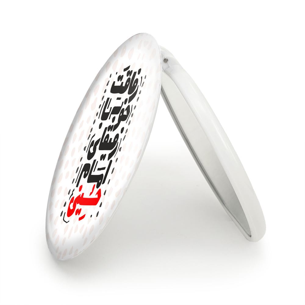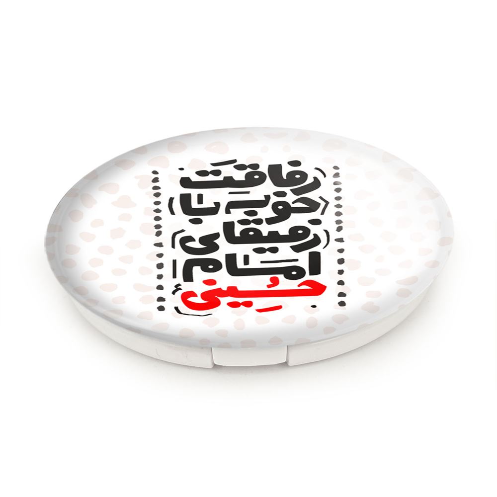 آینه های تاشو محرم رفاقت خوبه با رفقای امام حسینی خندالو، از جنس پلاستیک فشرده ABS تولید شده و به رنگ سفید می باشد. یکی از آینه ها ابعاد واقعی را نشان داده و دیگری با قابلیت بزرگنمایی، جزئیات را بهتر نمایش می دهد. ابعاد هر یک از آینه ها، دایره ای به قطر 7.5 سانت می باشد که نه خیلی بزرگ و غیر قابل استفاده در کیف آرایشی ست و نه خیلی کوچک که تصویر خاصی در آن مشاهده نشود. آینه تاشو محرم رفاقت خوبه با رفقای امام حسینی سایزی استاندارد و کارآمد دارد و در هر کیفی جا میگیرد. چاپ طرح بوسیله چاپگرهای دیجیتال شش رنگ با شفافیت و کیفیتی مثال زدنی بر روی یک وجه از بدنه ی آینه انجام گرفته و با روکش لمینت حرارتی پوشیده شده که در مقابل آسیب و خط و خش مقاوم بوده و کیفیت بالایی دارد. درب آینه بوسیله قفل بدنه ی آن، باز نمی ماند و کاملا بسته می شود و مناسب قرار گیری در کیف لوازم آرایش و کیف های کوچک دستی نیز هست. آینه های تاشو محرم رفاقت خوبه با رفقای امام حسینی خندالو با تنوع طرحی بسیار بالا، سلیقه هر نوع مخاطبی را تامین میکند.