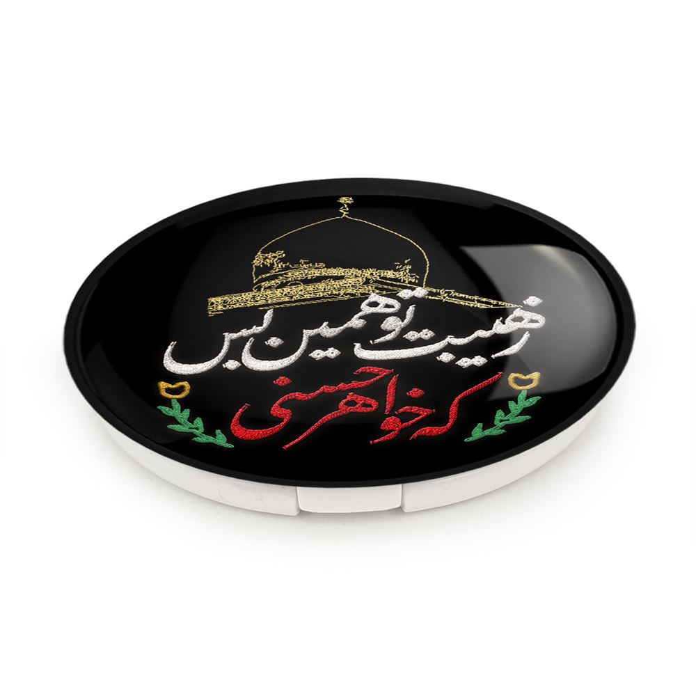 آینه های تاشو محرم ز هیبت تو همین بس که خواهر حسنی خندالو، از جنس پلاستیک فشرده ABS تولید شده و به رنگ سفید می باشد. یکی از آینه ها ابعاد واقعی را نشان داده و دیگری با قابلیت بزرگنمایی، جزئیات را بهتر نمایش می دهد. ابعاد هر یک از آینه ها، دایره ای به قطر 7.5 سانت می باشد که نه خیلی بزرگ و غیر قابل استفاده در کیف آرایشی ست و نه خیلی کوچک که تصویر خاصی در آن مشاهده نشود. آینه تاشو محرم ز هیبت تو همین بس که خواهر حسنی سایزی استاندارد و کارآمد دارد و در هر کیفی جا میگیرد. چاپ طرح بوسیله چاپگرهای دیجیتال شش رنگ با شفافیت و کیفیتی مثال زدنی بر روی یک وجه از بدنه ی آینه انجام گرفته و با روکش لمینت حرارتی پوشیده شده که در مقابل آسیب و خط و خش مقاوم بوده و کیفیت بالایی دارد. درب آینه بوسیله قفل بدنه ی آن، باز نمی ماند و کاملا بسته می شود و مناسب قرار گیری در کیف لوازم آرایش و کیف های کوچک دستی نیز هست. آینه های تاشو محرم ز هیبت تو همین بس که خواهر حسنی خندالو با تنوع طرحی بسیار بالا، سلیقه هر نوع مخاطبی را تامین میکند.