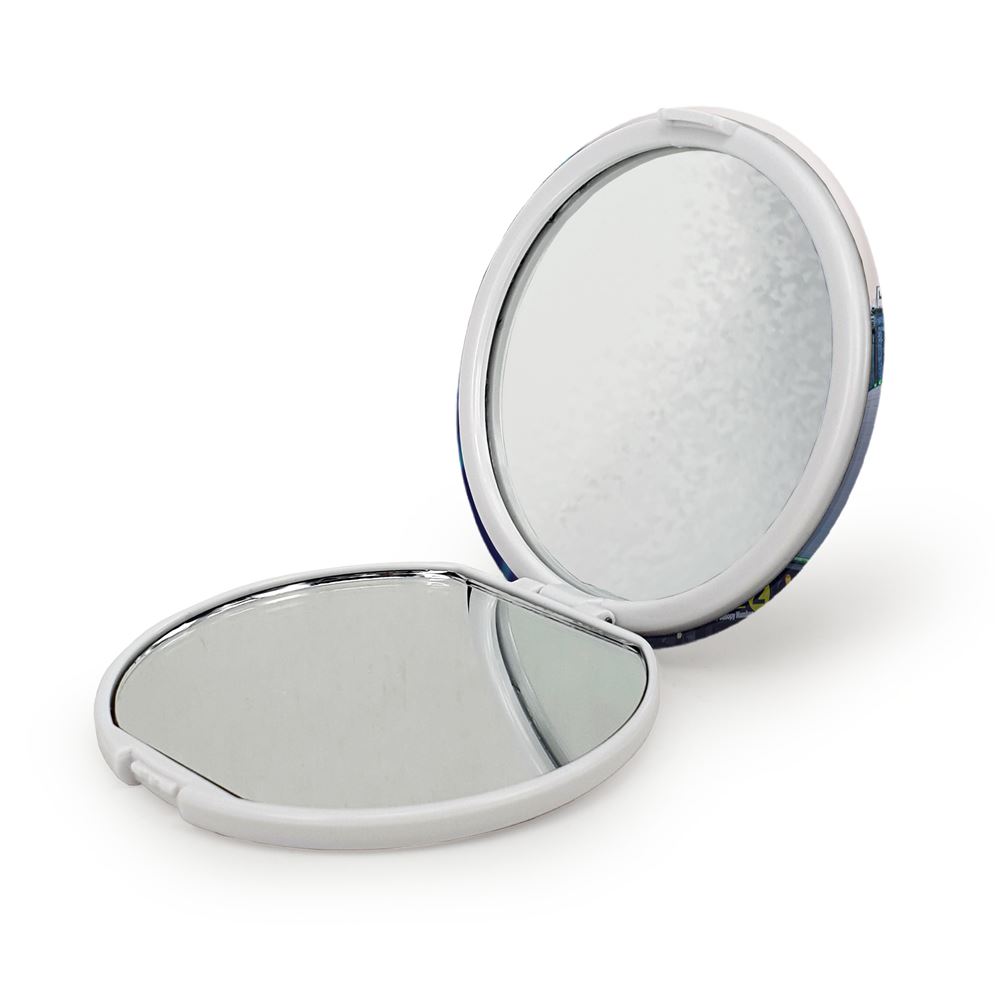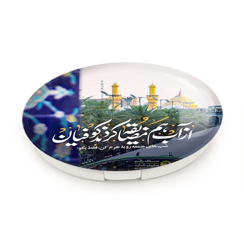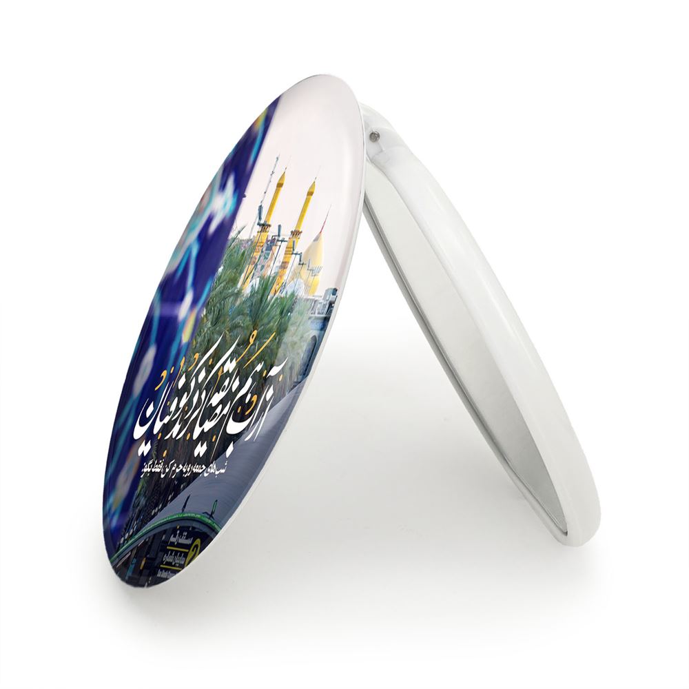 آینه های تاشو محرم شب های جمعه رو به حرم کن فقط بگو از آب هم مضایقه کردند کوفیان خندالو، از جنس پلاستیک فشرده ABS تولید شده و به رنگ سفید می باشد. یکی از آینه ها ابعاد واقعی را نشان داده و دیگری با قابلیت بزرگنمایی، جزئیات را بهتر نمایش می دهد. ابعاد هر یک از آینه ها، دایره ای به قطر 7.5 سانت می باشد که نه خیلی بزرگ و غیر قابل استفاده در کیف آرایشی ست و نه خیلی کوچک که تصویر خاصی در آن مشاهده نشود. آینه تاشو محرم شب های جمعه رو به حرم کن فقط بگو از آب هم مضایقه کردند کوفیان سایزی استاندارد و کارآمد دارد و در هر کیفی جا میگیرد. چاپ طرح بوسیله چاپگرهای دیجیتال شش رنگ با شفافیت و کیفیتی مثال زدنی بر روی یک وجه از بدنه ی آینه انجام گرفته و با روکش لمینت حرارتی پوشیده شده که در مقابل آسیب و خط و خش مقاوم بوده و کیفیت بالایی دارد. درب آینه بوسیله قفل بدنه ی آن، باز نمی ماند و کاملا بسته می شود و مناسب قرار گیری در کیف لوازم آرایش و کیف های کوچک دستی نیز هست. آینه های تاشو محرم شب های جمعه رو به حرم کن فقط بگو از آب هم مضایقه کردند کوفیان خندالو با تنوع طرحی بسیار بالا، سلیقه هر نوع مخاطبی را تامین میکند.