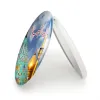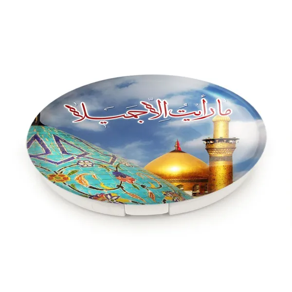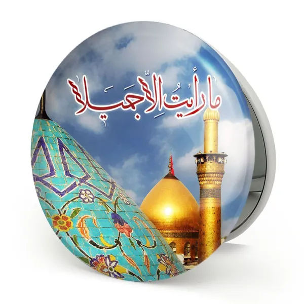 آینه های تاشو محرم ما رایت الا جمیلا خندالو، از جنس پلاستیک فشرده ABS تولید شده و به رنگ سفید می باشد. یکی از آینه ها ابعاد واقعی را نشان داده و دیگری با قابلیت بزرگنمایی، جزئیات را بهتر نمایش می دهد. ابعاد هر یک از آینه ها، دایره ای به قطر 7.5 سانت می باشد که نه خیلی بزرگ و غیر قابل استفاده در کیف آرایشی ست و نه خیلی کوچک که تصویر خاصی در آن مشاهده نشود. آینه تاشو محرم ما رایت الا جمیلا سایزی استاندارد و کارآمد دارد و در هر کیفی جا میگیرد. چاپ طرح بوسیله چاپگرهای دیجیتال شش رنگ با شفافیت و کیفیتی مثال زدنی بر روی یک وجه از بدنه ی آینه انجام گرفته و با روکش لمینت حرارتی پوشیده شده که در مقابل آسیب و خط و خش مقاوم بوده و کیفیت بالایی دارد. درب آینه بوسیله قفل بدنه ی آن، باز نمی ماند و کاملا بسته می شود و مناسب قرار گیری در کیف لوازم آرایش و کیف های کوچک دستی نیز هست. آینه های تاشو محرم ما رایت الا جمیلا خندالو با تنوع طرحی بسیار بالا، سلیقه هر نوع مخاطبی را تامین میکند.