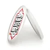 آینه های تاشو محرم ما مست حسینیم توکلت علی الله خندالو، از جنس پلاستیک فشرده ABS تولید شده و به رنگ سفید می باشد. یکی از آینه ها ابعاد واقعی را نشان داده و دیگری با قابلیت بزرگنمایی، جزئیات را بهتر نمایش می دهد. ابعاد هر یک از آینه ها، دایره ای به قطر 7.5 سانت می باشد که نه خیلی بزرگ و غیر قابل استفاده در کیف آرایشی ست و نه خیلی کوچک که تصویر خاصی در آن مشاهده نشود. آینه تاشو محرم ما مست حسینیم توکلت علی الله سایزی استاندارد و کارآمد دارد و در هر کیفی جا میگیرد. چاپ طرح بوسیله چاپگرهای دیجیتال شش رنگ با شفافیت و کیفیتی مثال زدنی بر روی یک وجه از بدنه ی آینه انجام گرفته و با روکش لمینت حرارتی پوشیده شده که در مقابل آسیب و خط و خش مقاوم بوده و کیفیت بالایی دارد. درب آینه بوسیله قفل بدنه ی آن، باز نمی ماند و کاملا بسته می شود و مناسب قرار گیری در کیف لوازم آرایش و کیف های کوچک دستی نیز هست. آینه های تاشو محرم ما مست حسینیم توکلت علی الله خندالو با تنوع طرحی بسیار بالا، سلیقه هر نوع مخاطبی را تامین میکند.
