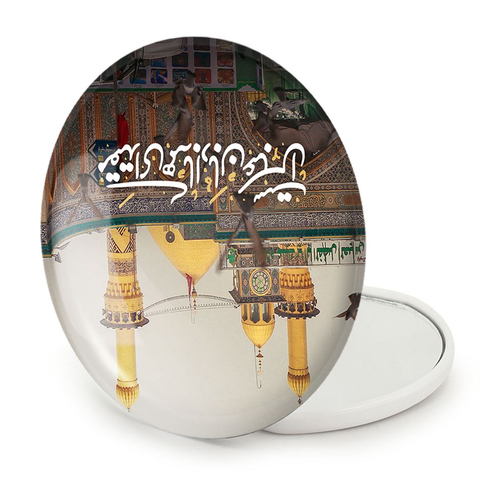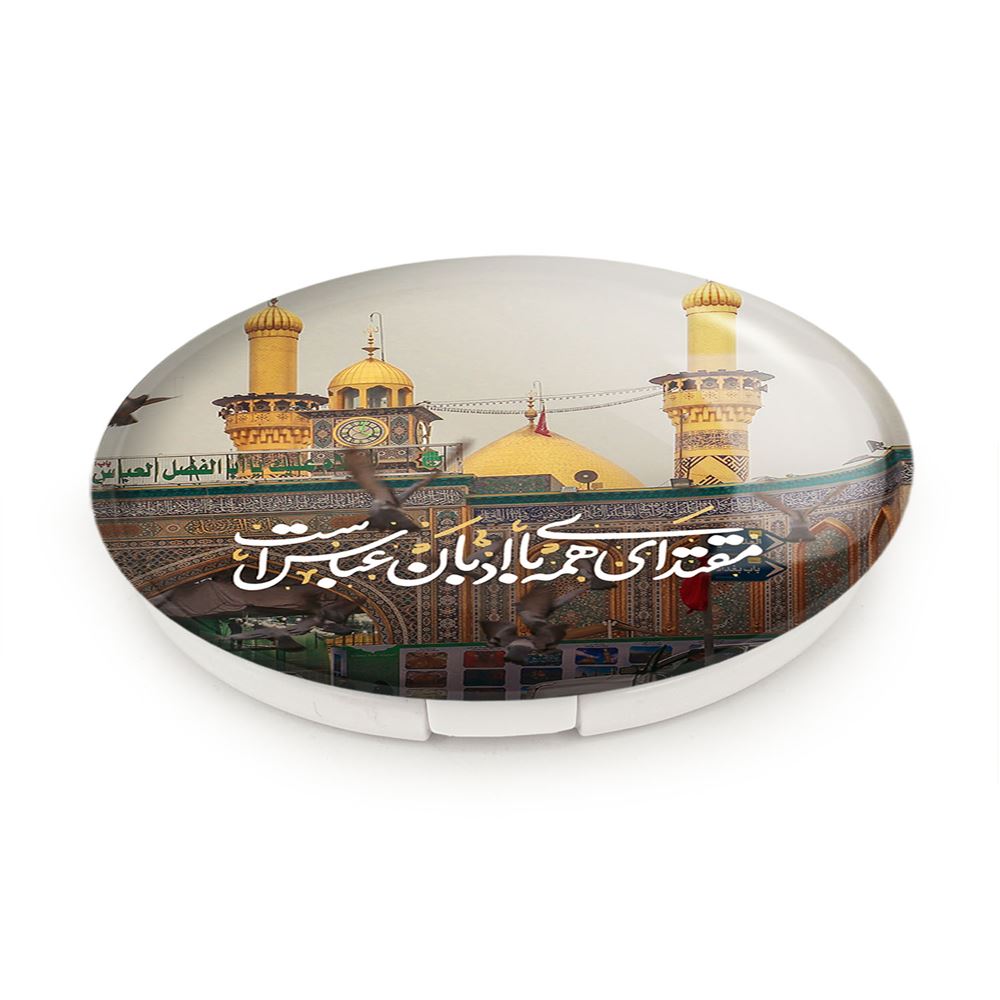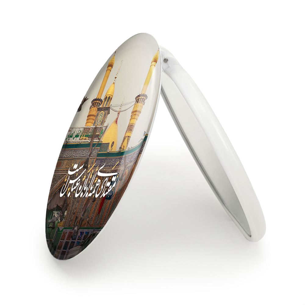 آینه های تاشو محرم مقتدای همه ی باادبان عباس است خندالو، از جنس پلاستیک فشرده ABS تولید شده و به رنگ سفید می باشد. یکی از آینه ها ابعاد واقعی را نشان داده و دیگری با قابلیت بزرگنمایی، جزئیات را بهتر نمایش می دهد. ابعاد هر یک از آینه ها، دایره ای به قطر 7.5 سانت می باشد که نه خیلی بزرگ و غیر قابل استفاده در کیف آرایشی ست و نه خیلی کوچک که تصویر خاصی در آن مشاهده نشود. آینه تاشو محرم مقتدای همه ی باادبان عباس است سایزی استاندارد و کارآمد دارد و در هر کیفی جا میگیرد. چاپ طرح بوسیله چاپگرهای دیجیتال شش رنگ با شفافیت و کیفیتی مثال زدنی بر روی یک وجه از بدنه ی آینه انجام گرفته و با روکش لمینت حرارتی پوشیده شده که در مقابل آسیب و خط و خش مقاوم بوده و کیفیت بالایی دارد. درب آینه بوسیله قفل بدنه ی آن، باز نمی ماند و کاملا بسته می شود و مناسب قرار گیری در کیف لوازم آرایش و کیف های کوچک دستی نیز هست. آینه های تاشو محرم مقتدای همه ی باادبان عباس است خندالو با تنوع طرحی بسیار بالا، سلیقه هر نوع مخاطبی را تامین میکند.