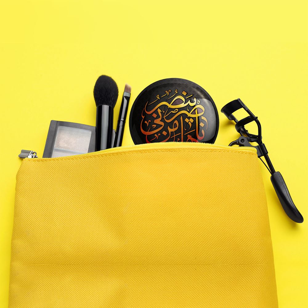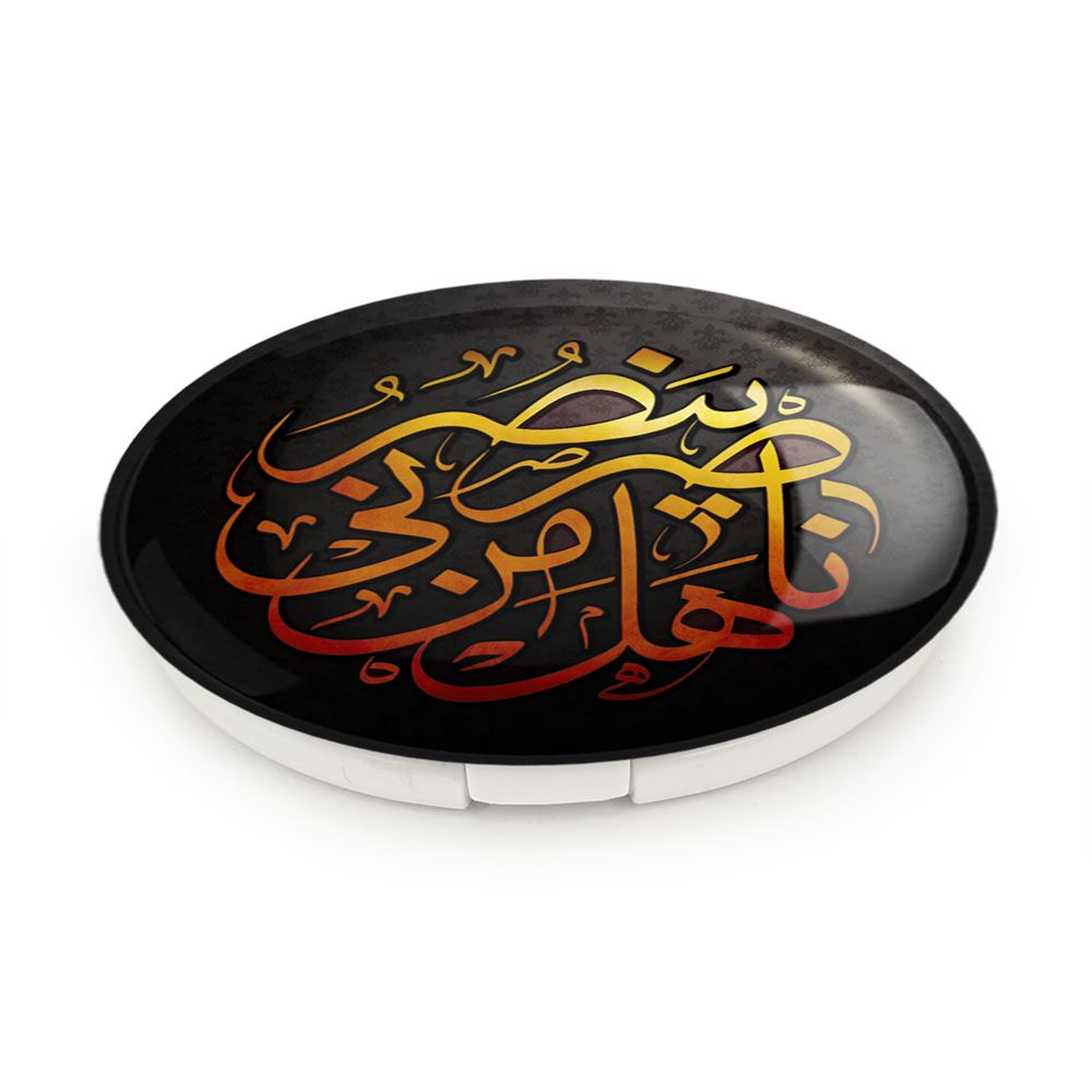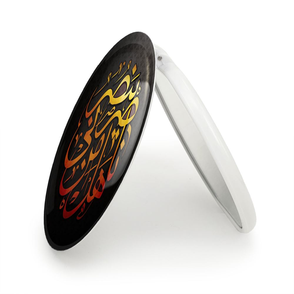 آینه های تاشو محرم هل من ناصر ینصرنی خندالو، از جنس پلاستیک فشرده ABS تولید شده و به رنگ سفید می باشد. یکی از آینه ها ابعاد واقعی را نشان داده و دیگری با قابلیت بزرگنمایی، جزئیات را بهتر نمایش می دهد. ابعاد هر یک از آینه ها، دایره ای به قطر 7.5 سانت می باشد که نه خیلی بزرگ و غیر قابل استفاده در کیف آرایشی ست و نه خیلی کوچک که تصویر خاصی در آن مشاهده نشود. آینه تاشو محرم هل من ناصر ینصرنی سایزی استاندارد و کارآمد دارد و در هر کیفی جا میگیرد. چاپ طرح بوسیله چاپگرهای دیجیتال شش رنگ با شفافیت و کیفیتی مثال زدنی بر روی یک وجه از بدنه ی آینه انجام گرفته و با روکش لمینت حرارتی پوشیده شده که در مقابل آسیب و خط و خش مقاوم بوده و کیفیت بالایی دارد. درب آینه بوسیله قفل بدنه ی آن، باز نمی ماند و کاملا بسته می شود و مناسب قرار گیری در کیف لوازم آرایش و کیف های کوچک دستی نیز هست. آینه های تاشو محرم هل من ناصر ینصرنی خندالو با تنوع طرحی بسیار بالا، سلیقه هر نوع مخاطبی را تامین میکند.