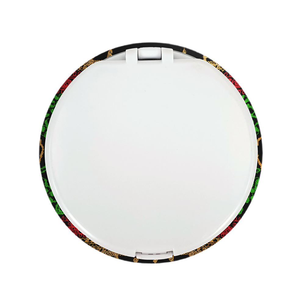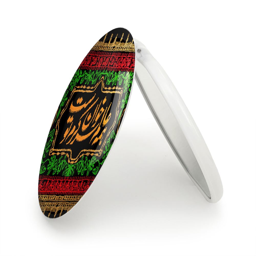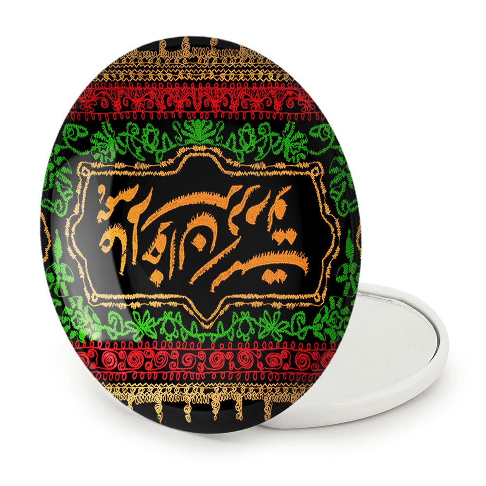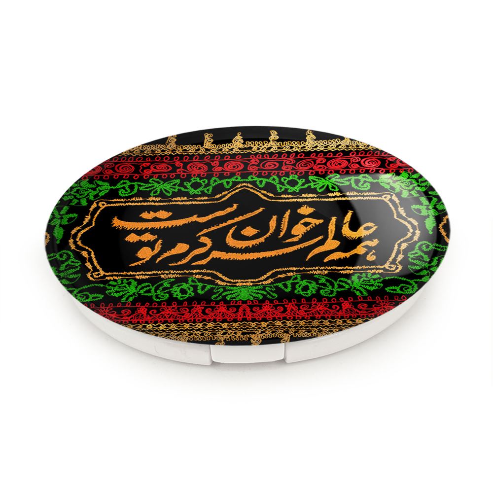 آینه های تاشو محرم همه عالم سر خوان کرم توست خندالو، از جنس پلاستیک فشرده ABS تولید شده و به رنگ سفید می باشد. یکی از آینه ها ابعاد واقعی را نشان داده و دیگری با قابلیت بزرگنمایی، جزئیات را بهتر نمایش می دهد. ابعاد هر یک از آینه ها، دایره ای به قطر 7.5 سانت می باشد که نه خیلی بزرگ و غیر قابل استفاده در کیف آرایشی ست و نه خیلی کوچک که تصویر خاصی در آن مشاهده نشود. آینه تاشو محرم همه عالم سر خوان کرم توست سایزی استاندارد و کارآمد دارد و در هر کیفی جا میگیرد. چاپ طرح بوسیله چاپگرهای دیجیتال شش رنگ با شفافیت و کیفیتی مثال زدنی بر روی یک وجه از بدنه ی آینه انجام گرفته و با روکش لمینت حرارتی پوشیده شده که در مقابل آسیب و خط و خش مقاوم بوده و کیفیت بالایی دارد. درب آینه بوسیله قفل بدنه ی آن، باز نمی ماند و کاملا بسته می شود و مناسب قرار گیری در کیف لوازم آرایش و کیف های کوچک دستی نیز هست. آینه های تاشو محرم همه عالم سر خوان کرم توست خندالو با تنوع طرحی بسیار بالا، سلیقه هر نوع مخاطبی را تامین میکند.