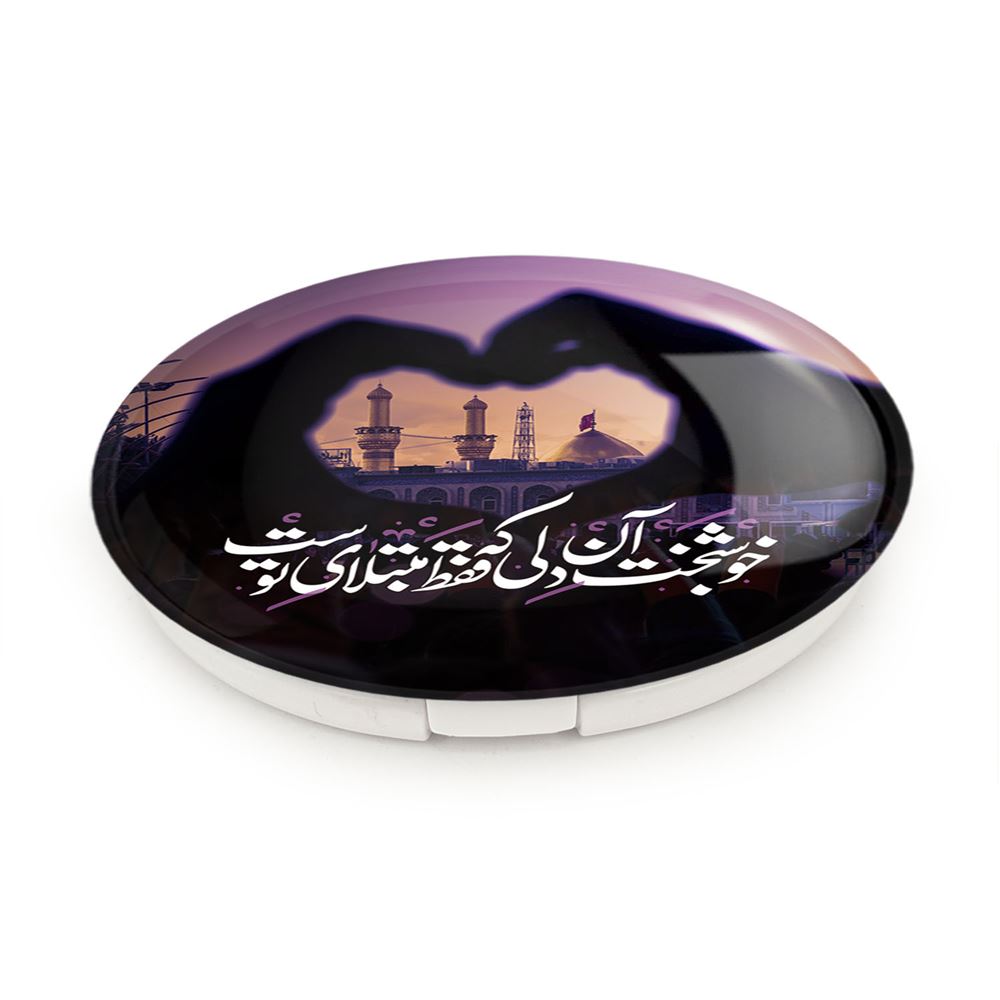 آینه های تاشو محرم کربلا خوشبخت آن دلی که فقط مبتلای توست خندالو، از جنس پلاستیک فشرده ABS تولید شده و به رنگ سفید می باشد. یکی از آینه ها ابعاد واقعی را نشان داده و دیگری با قابلیت بزرگنمایی، جزئیات را بهتر نمایش می دهد. ابعاد هر یک از آینه ها، دایره ای به قطر 7.5 سانت می باشد که نه خیلی بزرگ و غیر قابل استفاده در کیف آرایشی ست و نه خیلی کوچک که تصویر خاصی در آن مشاهده نشود. آینه تاشو محرم کربلا خوشبخت آن دلی که فقط مبتلای توست سایزی استاندارد و کارآمد دارد و در هر کیفی جا میگیرد. چاپ طرح بوسیله چاپگرهای دیجیتال شش رنگ با شفافیت و کیفیتی مثال زدنی بر روی یک وجه از بدنه ی آینه انجام گرفته و با روکش لمینت حرارتی پوشیده شده که در مقابل آسیب و خط و خش مقاوم بوده و کیفیت بالایی دارد. درب آینه بوسیله قفل بدنه ی آن، باز نمی ماند و کاملا بسته می شود و مناسب قرار گیری در کیف لوازم آرایش و کیف های کوچک دستی نیز هست. آینه های تاشو محرم کربلا خوشبخت آن دلی که فقط مبتلای توست خندالو با تنوع طرحی بسیار بالا، سلیقه هر نوع مخاطبی را تامین میکند.