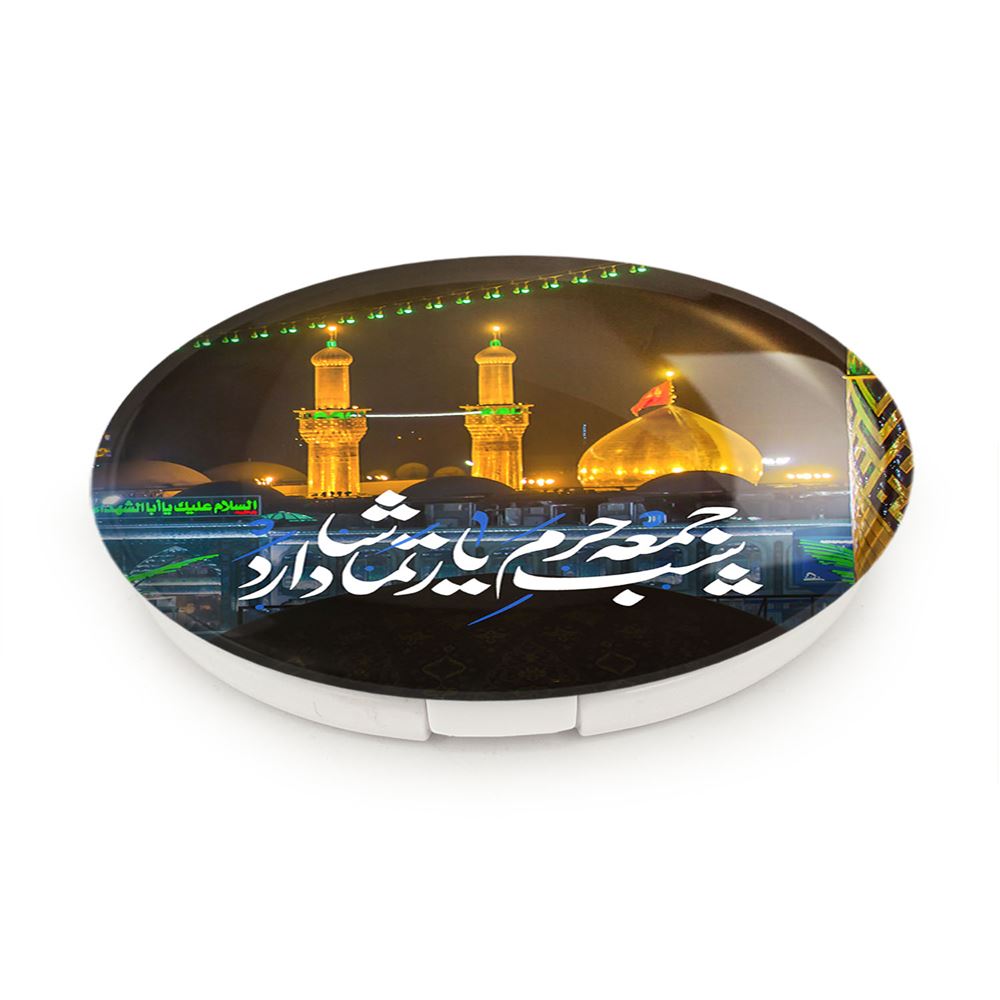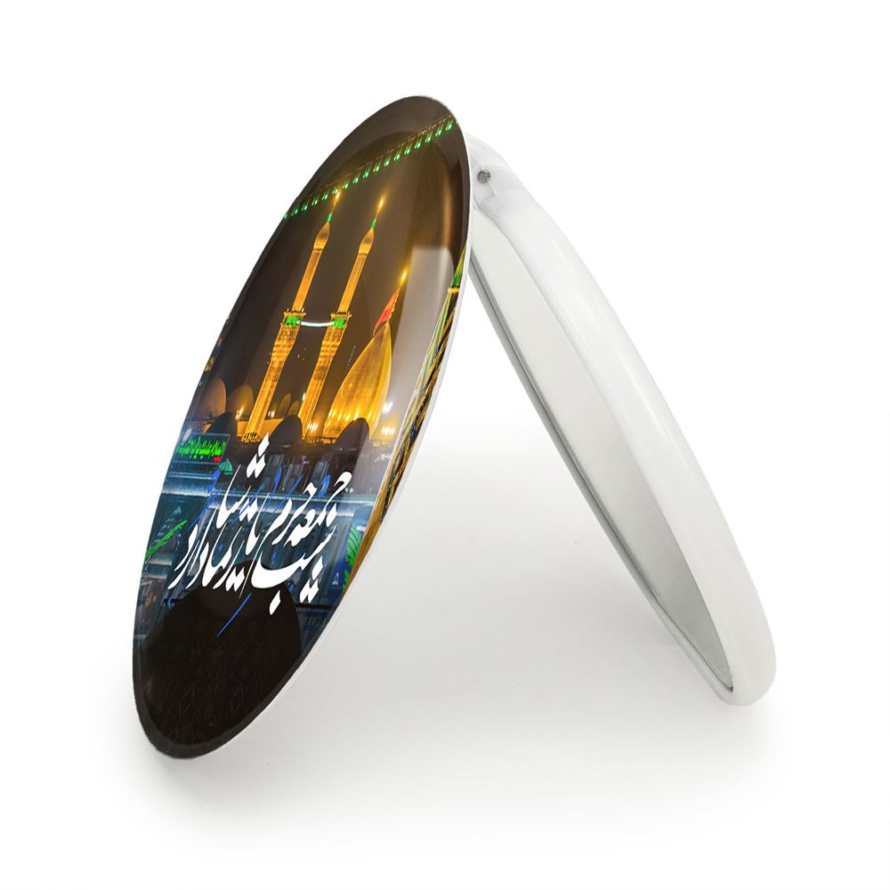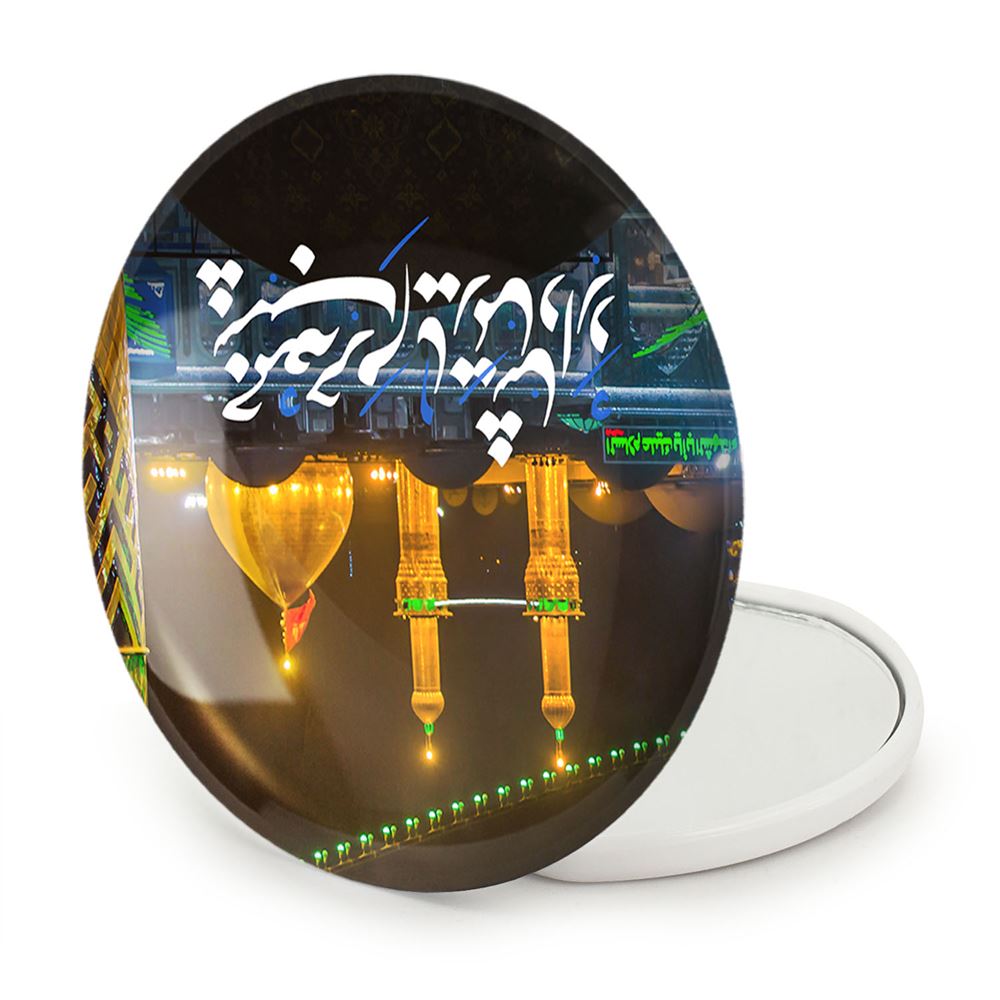آینه های تاشو محرم کربلا شب جمعه حرم یار تماشا دارد خندالو، از جنس پلاستیک فشرده ABS تولید شده و به رنگ سفید می باشد. یکی از آینه ها ابعاد واقعی را نشان داده و دیگری با قابلیت بزرگنمایی، جزئیات را بهتر نمایش می دهد. ابعاد هر یک از آینه ها، دایره ای به قطر 7.5 سانت می باشد که نه خیلی بزرگ و غیر قابل استفاده در کیف آرایشی ست و نه خیلی کوچک که تصویر خاصی در آن مشاهده نشود. آینه تاشو محرم کربلا شب جمعه حرم یار تماشا دارد سایزی استاندارد و کارآمد دارد و در هر کیفی جا میگیرد. چاپ طرح بوسیله چاپگرهای دیجیتال شش رنگ با شفافیت و کیفیتی مثال زدنی بر روی یک وجه از بدنه ی آینه انجام گرفته و با روکش لمینت حرارتی پوشیده شده که در مقابل آسیب و خط و خش مقاوم بوده و کیفیت بالایی دارد. درب آینه بوسیله قفل بدنه ی آن، باز نمی ماند و کاملا بسته می شود و مناسب قرار گیری در کیف لوازم آرایش و کیف های کوچک دستی نیز هست. آینه های تاشو محرم کربلا شب جمعه حرم یار تماشا دارد خندالو با تنوع طرحی بسیار بالا، سلیقه هر نوع مخاطبی را تامین میکند.