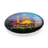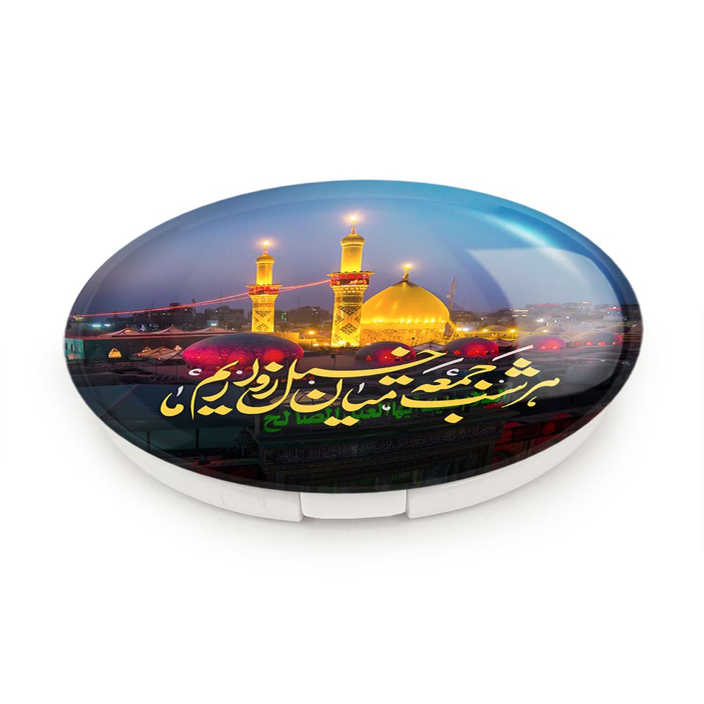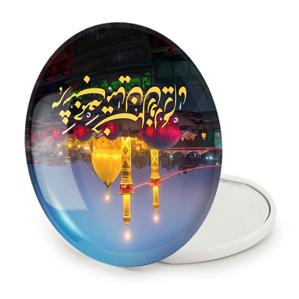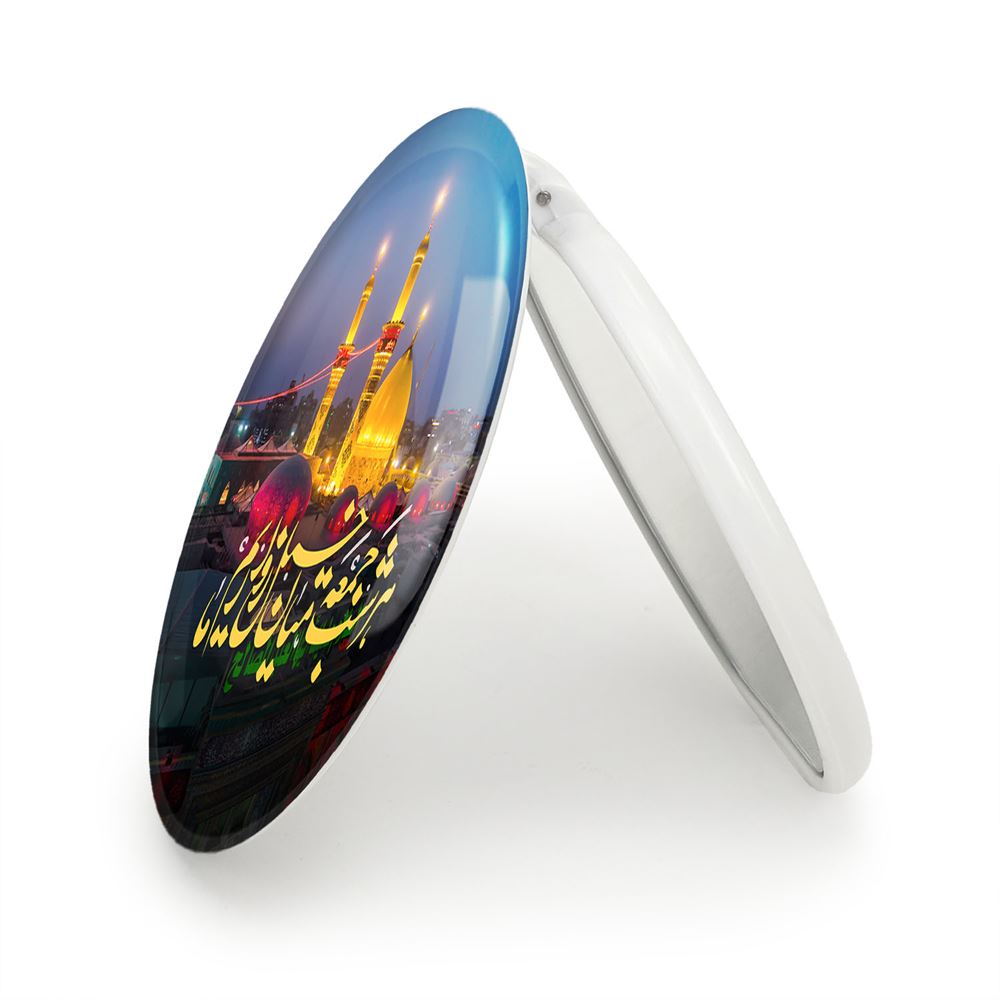 آینه های تاشو محرم کربلا هر شب جمعه میان خیل زواریم ما خندالو، از جنس پلاستیک فشرده ABS تولید شده و به رنگ سفید می باشد. یکی از آینه ها ابعاد واقعی را نشان داده و دیگری با قابلیت بزرگنمایی، جزئیات را بهتر نمایش می دهد. ابعاد هر یک از آینه ها، دایره ای به قطر 7.5 سانت می باشد که نه خیلی بزرگ و غیر قابل استفاده در کیف آرایشی ست و نه خیلی کوچک که تصویر خاصی در آن مشاهده نشود. آینه تاشو محرم کربلا هر شب جمعه میان خیل زواریم ما سایزی استاندارد و کارآمد دارد و در هر کیفی جا میگیرد. چاپ طرح بوسیله چاپگرهای دیجیتال شش رنگ با شفافیت و کیفیتی مثال زدنی بر روی یک وجه از بدنه ی آینه انجام گرفته و با روکش لمینت حرارتی پوشیده شده که در مقابل آسیب و خط و خش مقاوم بوده و کیفیت بالایی دارد. درب آینه بوسیله قفل بدنه ی آن، باز نمی ماند و کاملا بسته می شود و مناسب قرار گیری در کیف لوازم آرایش و کیف های کوچک دستی نیز هست. آینه های تاشو محرم کربلا هر شب جمعه میان خیل زواریم ما خندالو با تنوع طرحی بسیار بالا، سلیقه هر نوع مخاطبی را تامین میکند.