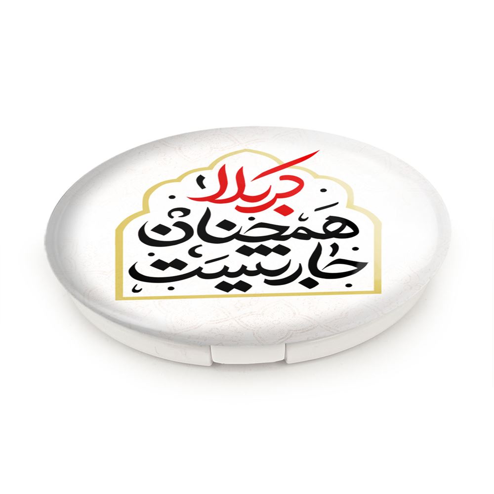 آینه های تاشو محرم کربلا همچنان جاریست خندالو، از جنس پلاستیک فشرده ABS تولید شده و به رنگ سفید می باشد. یکی از آینه ها ابعاد واقعی را نشان داده و دیگری با قابلیت بزرگنمایی، جزئیات را بهتر نمایش می دهد. ابعاد هر یک از آینه ها، دایره ای به قطر 7.5 سانت می باشد که نه خیلی بزرگ و غیر قابل استفاده در کیف آرایشی ست و نه خیلی کوچک که تصویر خاصی در آن مشاهده نشود. آینه تاشو محرم کربلا همچنان جاریست سایزی استاندارد و کارآمد دارد و در هر کیفی جا میگیرد. چاپ طرح بوسیله چاپگرهای دیجیتال شش رنگ با شفافیت و کیفیتی مثال زدنی بر روی یک وجه از بدنه ی آینه انجام گرفته و با روکش لمینت حرارتی پوشیده شده که در مقابل آسیب و خط و خش مقاوم بوده و کیفیت بالایی دارد. درب آینه بوسیله قفل بدنه ی آن، باز نمی ماند و کاملا بسته می شود و مناسب قرار گیری در کیف لوازم آرایش و کیف های کوچک دستی نیز هست. آینه های تاشو محرم کربلا همچنان جاریست خندالو با تنوع طرحی بسیار بالا، سلیقه هر نوع مخاطبی را تامین میکند.