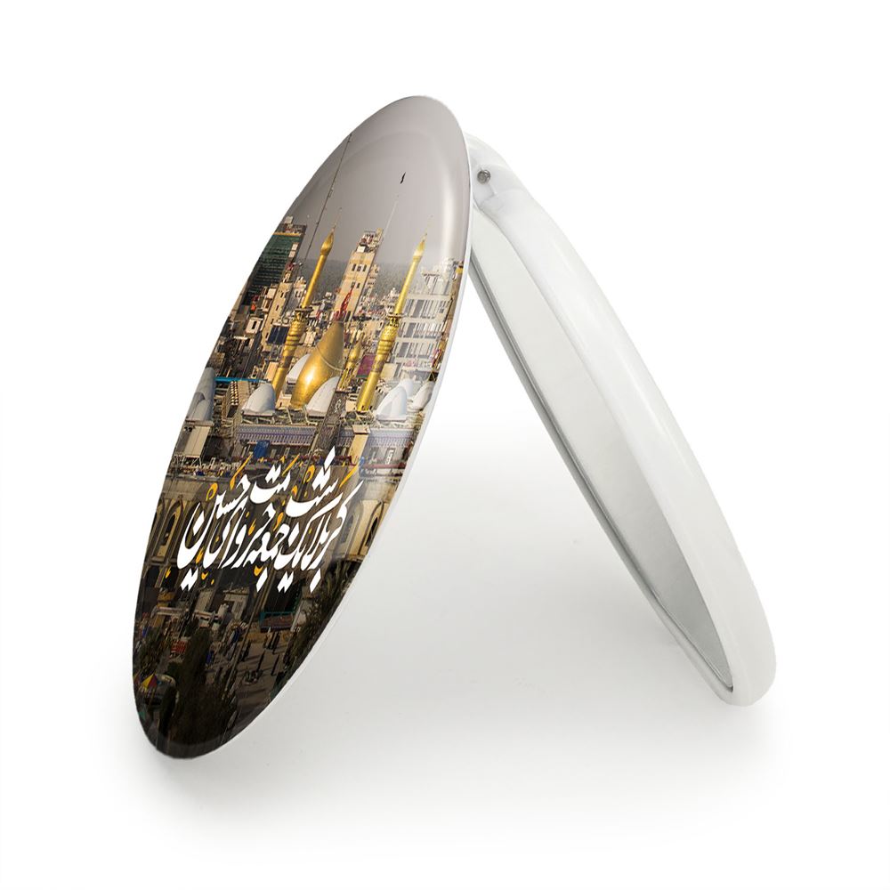 آینه های تاشو محرم کربلا یک شب جمعه حرمت وای حسین خندالو، از جنس پلاستیک فشرده ABS تولید شده و به رنگ سفید می باشد. یکی از آینه ها ابعاد واقعی را نشان داده و دیگری با قابلیت بزرگنمایی، جزئیات را بهتر نمایش می دهد. ابعاد هر یک از آینه ها، دایره ای به قطر 7.5 سانت می باشد که نه خیلی بزرگ و غیر قابل استفاده در کیف آرایشی ست و نه خیلی کوچک که تصویر خاصی در آن مشاهده نشود. آینه تاشو محرم کربلا یک شب جمعه حرمت وای حسین سایزی استاندارد و کارآمد دارد و در هر کیفی جا میگیرد. چاپ طرح بوسیله چاپگرهای دیجیتال شش رنگ با شفافیت و کیفیتی مثال زدنی بر روی یک وجه از بدنه ی آینه انجام گرفته و با روکش لمینت حرارتی پوشیده شده که در مقابل آسیب و خط و خش مقاوم بوده و کیفیت بالایی دارد. درب آینه بوسیله قفل بدنه ی آن، باز نمی ماند و کاملا بسته می شود و مناسب قرار گیری در کیف لوازم آرایش و کیف های کوچک دستی نیز هست. آینه های تاشو محرم کربلا یک شب جمعه حرمت وای حسین خندالو با تنوع طرحی بسیار بالا، سلیقه هر نوع مخاطبی را تامین میکند.