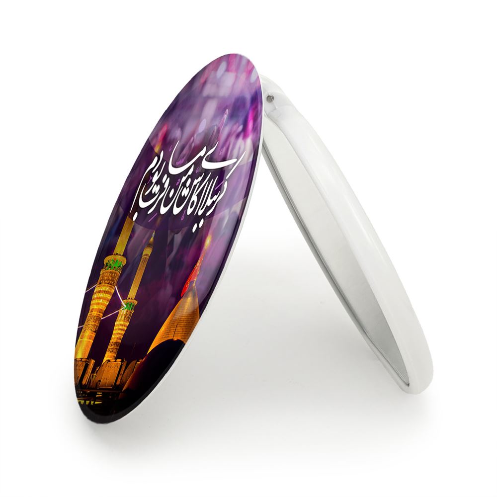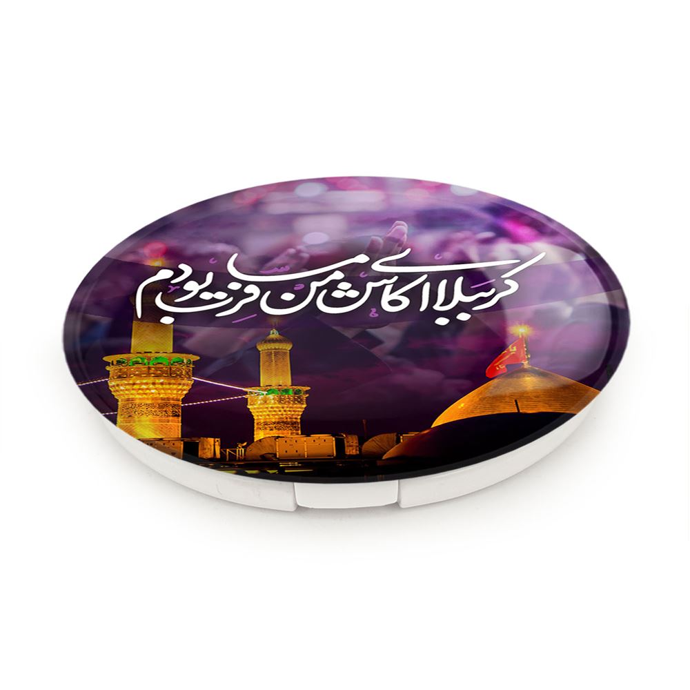 آینه های تاشو محرم کربُبلا ای کاش من مسافرت بودم خندالو، از جنس پلاستیک فشرده ABS تولید شده و به رنگ سفید می باشد. یکی از آینه ها ابعاد واقعی را نشان داده و دیگری با قابلیت بزرگنمایی، جزئیات را بهتر نمایش می دهد. ابعاد هر یک از آینه ها، دایره ای به قطر 7.5 سانت می باشد که نه خیلی بزرگ و غیر قابل استفاده در کیف آرایشی ست و نه خیلی کوچک که تصویر خاصی در آن مشاهده نشود. آینه تاشو محرم کربُبلا ای کاش من مسافرت بودم سایزی استاندارد و کارآمد دارد و در هر کیفی جا میگیرد. چاپ طرح بوسیله چاپگرهای دیجیتال شش رنگ با شفافیت و کیفیتی مثال زدنی بر روی یک وجه از بدنه ی آینه انجام گرفته و با روکش لمینت حرارتی پوشیده شده که در مقابل آسیب و خط و خش مقاوم بوده و کیفیت بالایی دارد. درب آینه بوسیله قفل بدنه ی آن، باز نمی ماند و کاملا بسته می شود و مناسب قرار گیری در کیف لوازم آرایش و کیف های کوچک دستی نیز هست. آینه های تاشو محرم کربُبلا ای کاش من مسافرت بودم خندالو با تنوع طرحی بسیار بالا، سلیقه هر نوع مخاطبی را تامین میکند.