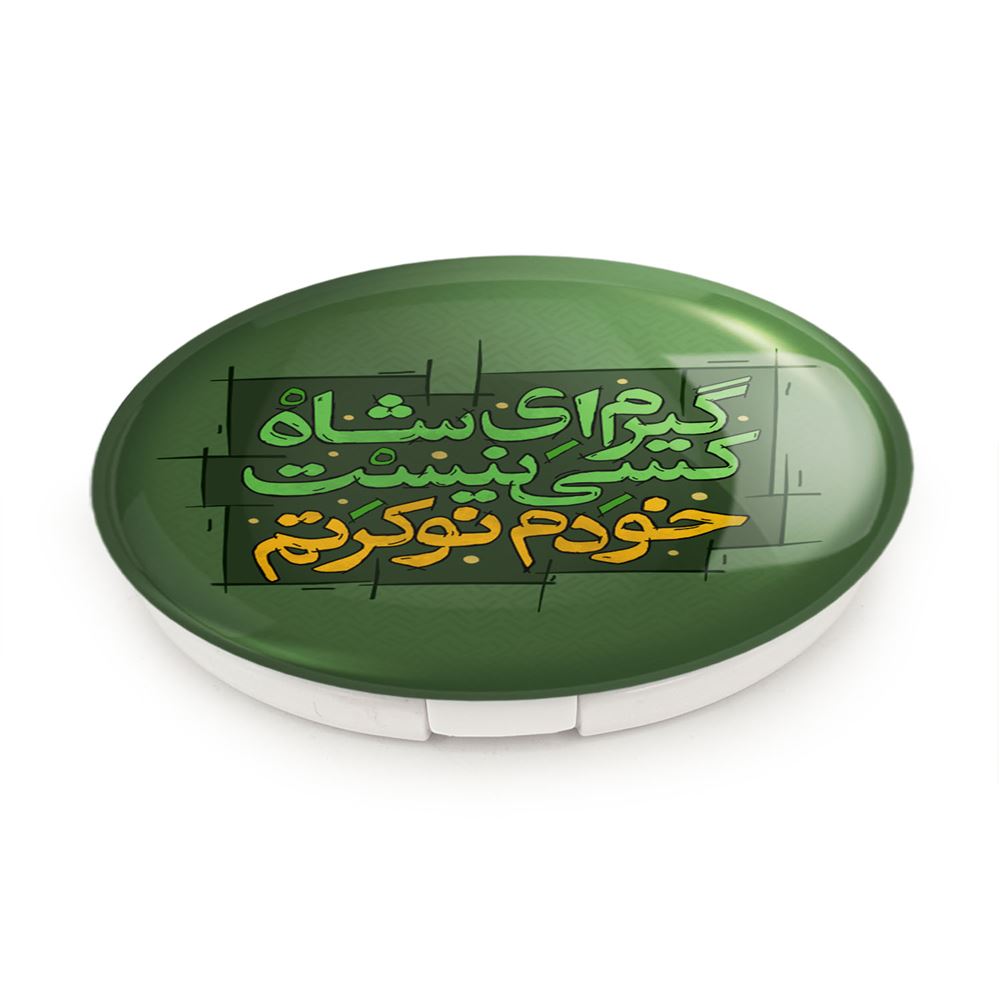 آینه های تاشو محرم گیرم ای شاه کسی نیست خودم نوکرتم خندالو، از جنس پلاستیک فشرده ABS تولید شده و به رنگ سفید می باشد. یکی از آینه ها ابعاد واقعی را نشان داده و دیگری با قابلیت بزرگنمایی، جزئیات را بهتر نمایش می دهد.