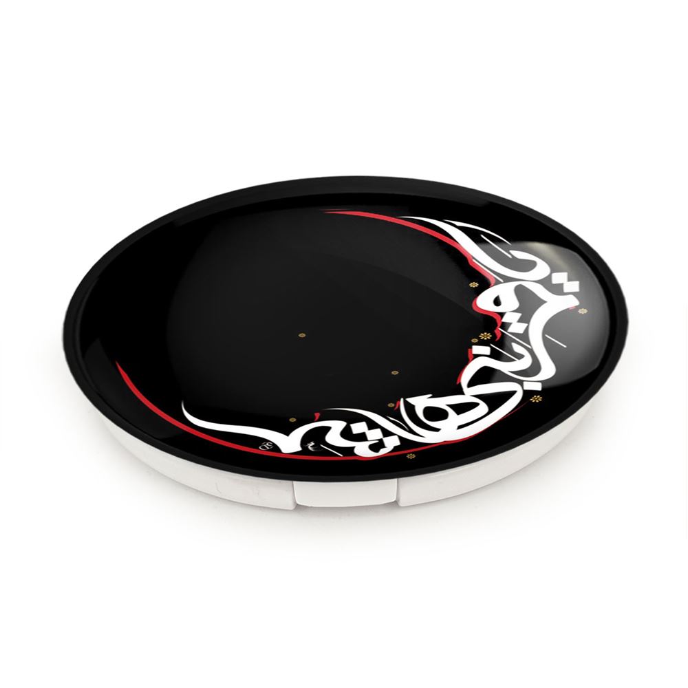 آینه های تاشو محرم یاقمر بنی هاشم خندالو، از جنس پلاستیک فشرده ABS تولید شده و به رنگ سفید می باشد. یکی از آینه ها ابعاد واقعی را نشان داده و دیگری با قابلیت بزرگنمایی، جزئیات را بهتر نمایش می دهد. ابعاد هر یک از آینه ها، دایره ای به قطر 7.5 سانت می باشد که نه خیلی بزرگ و غیر قابل استفاده در کیف آرایشی ست و نه خیلی کوچک که تصویر خاصی در آن مشاهده نشود. آینه تاشو محرم یاقمر بنی هاشم سایزی استاندارد و کارآمد دارد و در هر کیفی جا میگیرد. چاپ طرح بوسیله چاپگرهای دیجیتال شش رنگ با شفافیت و کیفیتی مثال زدنی بر روی یک وجه از بدنه ی آینه انجام گرفته و با روکش لمینت حرارتی پوشیده شده که در مقابل آسیب و خط و خش مقاوم بوده و کیفیت بالایی دارد. درب آینه بوسیله قفل بدنه ی آن، باز نمی ماند و کاملا بسته می شود و مناسب قرار گیری در کیف لوازم آرایش و کیف های کوچک دستی نیز هست. آینه های تاشو محرم یاقمر بنی هاشم خندالو با تنوع طرحی بسیار بالا، سلیقه هر نوع مخاطبی را تامین میکند.