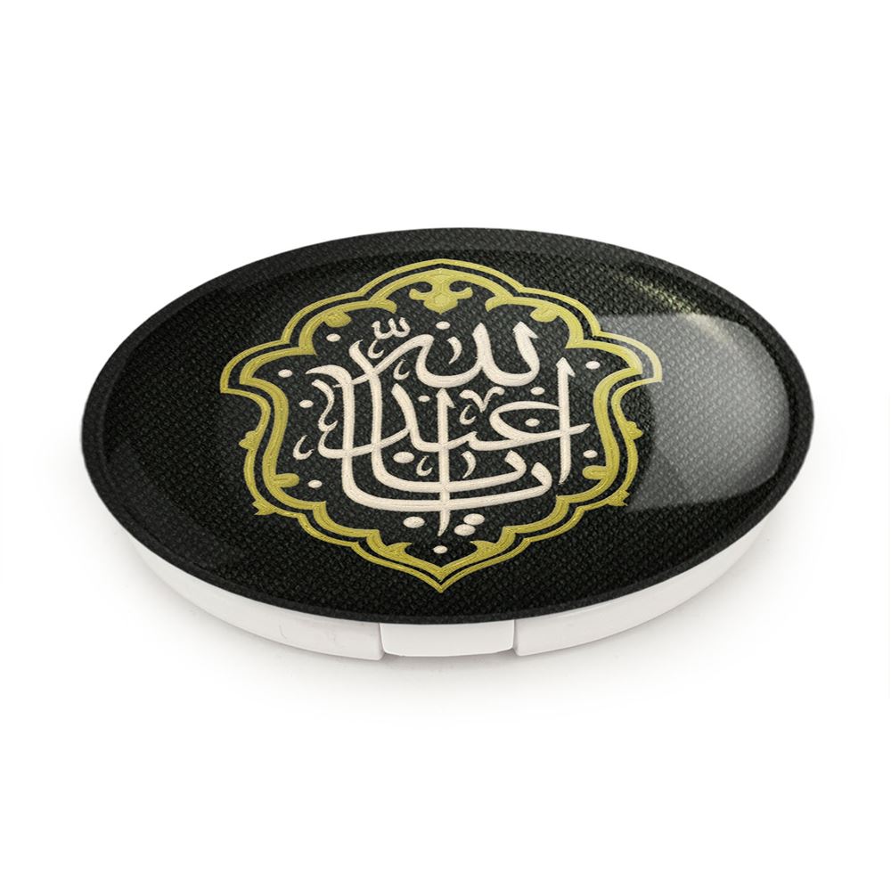 آینه های تاشو محرم یا اباعبدالله خندالو، از جنس پلاستیک فشرده ABS تولید شده و به رنگ سفید می باشد. یکی از آینه ها ابعاد واقعی را نشان داده و دیگری با قابلیت بزرگنمایی، جزئیات را بهتر نمایش می دهد. ابعاد هر یک از آینه ها، دایره ای به قطر 7.5 سانت می باشد که نه خیلی بزرگ و غیر قابل استفاده در کیف آرایشی ست و نه خیلی کوچک که تصویر خاصی در آن مشاهده نشود. آینه تاشو محرم یا اباعبدالله سایزی استاندارد و کارآمد دارد و در هر کیفی جا میگیرد. چاپ طرح بوسیله چاپگرهای دیجیتال شش رنگ با شفافیت و کیفیتی مثال زدنی بر روی یک وجه از بدنه ی آینه انجام گرفته و با روکش لمینت حرارتی پوشیده شده که در مقابل آسیب و خط و خش مقاوم بوده و کیفیت بالایی دارد. درب آینه بوسیله قفل بدنه ی آن، باز نمی ماند و کاملا بسته می شود و مناسب قرار گیری در کیف لوازم آرایش و کیف های کوچک دستی نیز هست. آینه های تاشو محرم یا اباعبدالله خندالو با تنوع طرحی بسیار بالا، سلیقه هر نوع مخاطبی را تامین میکند.
