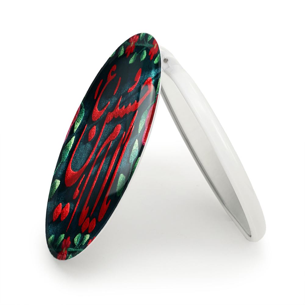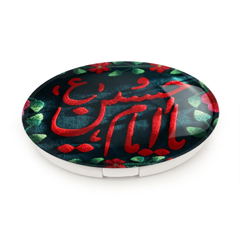 آینه های تاشو محرم یا امام حسین خندالو، از جنس پلاستیک فشرده ABS تولید شده و به رنگ سفید می باشد. یکی از آینه ها ابعاد واقعی را نشان داده و دیگری با قابلیت بزرگنمایی، جزئیات را بهتر نمایش می دهد. ابعاد هر یک از آینه ها، دایره ای به قطر 7.5 سانت می باشد که نه خیلی بزرگ و غیر قابل استفاده در کیف آرایشی ست و نه خیلی کوچک که تصویر خاصی در آن مشاهده نشود. آینه تاشو محرم یا امام حسین سایزی استاندارد و کارآمد دارد و در هر کیفی جا میگیرد. چاپ طرح بوسیله چاپگرهای دیجیتال شش رنگ با شفافیت و کیفیتی مثال زدنی بر روی یک وجه از بدنه ی آینه انجام گرفته و با روکش لمینت حرارتی پوشیده شده که در مقابل آسیب و خط و خش مقاوم بوده و کیفیت بالایی دارد. درب آینه بوسیله قفل بدنه ی آن، باز نمی ماند و کاملا بسته می شود و مناسب قرار گیری در کیف لوازم آرایش و کیف های کوچک دستی نیز هست. آینه های تاشو محرم یا امام حسین خندالو با تنوع طرحی بسیار بالا، سلیقه هر نوع مخاطبی را تامین میکند.