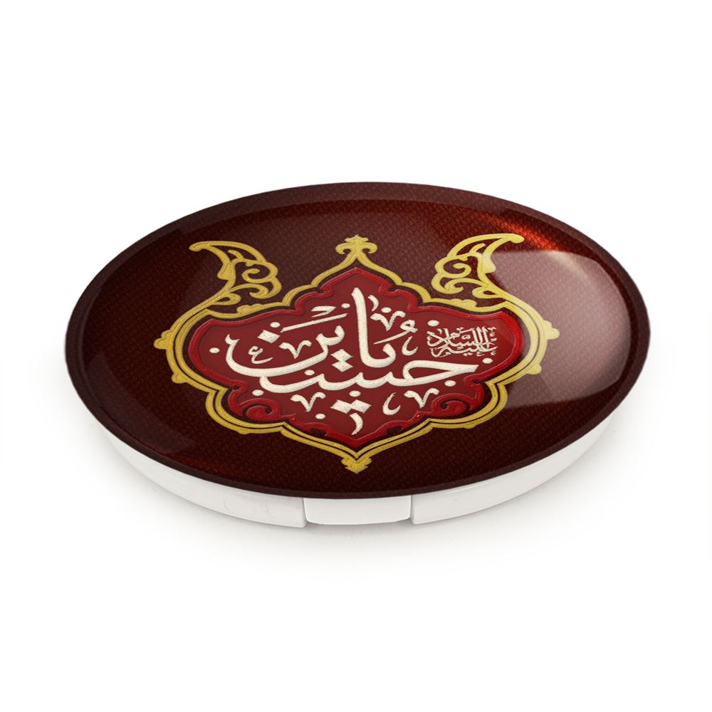آینه های تاشو محرم یا حسین خندالو، از جنس پلاستیک فشرده ABS تولید شده و به رنگ سفید می باشد. یکی از آینه ها ابعاد واقعی را نشان داده و دیگری با قابلیت بزرگنمایی، جزئیات را بهتر نمایش می دهد. ابعاد هر یک از آینه ها، دایره ای به قطر 7.5 سانت می باشد که نه خیلی بزرگ و غیر قابل استفاده در کیف آرایشی ست و نه خیلی کوچک که تصویر خاصی در آن مشاهده نشود. آینه تاشو محرم یا حسین سایزی استاندارد و کارآمد دارد و در هر کیفی جا میگیرد. چاپ طرح بوسیله چاپگرهای دیجیتال شش رنگ با شفافیت و کیفیتی مثال زدنی بر روی یک وجه از بدنه ی آینه انجام گرفته و با روکش لمینت حرارتی پوشیده شده که در مقابل آسیب و خط و خش مقاوم بوده و کیفیت بالایی دارد. درب آینه بوسیله قفل بدنه ی آن، باز نمی ماند و کاملا بسته می شود و مناسب قرار گیری در کیف لوازم آرایش و کیف های کوچک دستی نیز هست. آینه های تاشو محرم یا حسین خندالو با تنوع طرحی بسیار بالا، سلیقه هر نوع مخاطبی را تامین میکند.