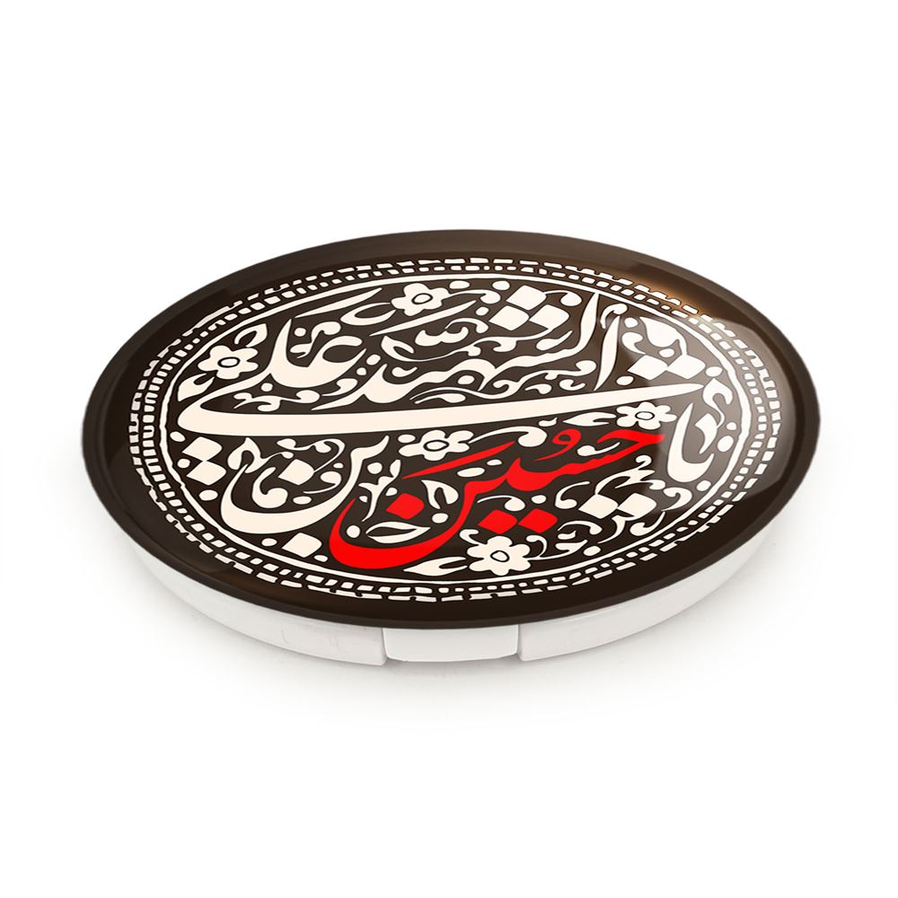 آینه های تاشو محرم یا حسین شهید خندالو، از جنس پلاستیک فشرده ABS تولید شده و به رنگ سفید می باشد. یکی از آینه ها ابعاد واقعی را نشان داده و دیگری با قابلیت بزرگنمایی، جزئیات را بهتر نمایش می دهد. ابعاد هر یک از آینه ها، دایره ای به قطر 7.5 سانت می باشد که نه خیلی بزرگ و غیر قابل استفاده در کیف آرایشی ست و نه خیلی کوچک که تصویر خاصی در آن مشاهده نشود. آینه تاشو محرم یا حسین شهید سایزی استاندارد و کارآمد دارد و در هر کیفی جا میگیرد. چاپ طرح بوسیله چاپگرهای دیجیتال شش رنگ با شفافیت و کیفیتی مثال زدنی بر روی یک وجه از بدنه ی آینه انجام گرفته و با روکش لمینت حرارتی پوشیده شده که در مقابل آسیب و خط و خش مقاوم بوده و کیفیت بالایی دارد. درب آینه بوسیله قفل بدنه ی آن، باز نمی ماند و کاملا بسته می شود و مناسب قرار گیری در کیف لوازم آرایش و کیف های کوچک دستی نیز هست. آینه های تاشو محرم یا حسین شهید خندالو با تنوع طرحی بسیار بالا، سلیقه هر نوع مخاطبی را تامین میکند.