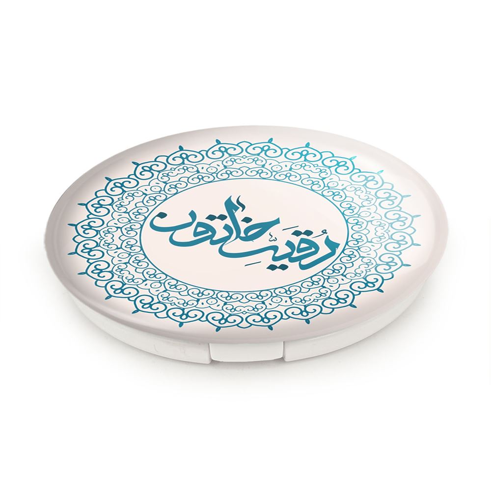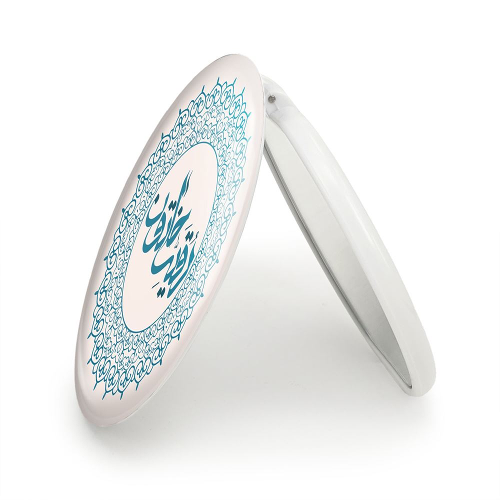 آینه های تاشو محرم یا رقیه خندالو، از جنس پلاستیک فشرده ABS تولید شده و به رنگ سفید می باشد. یکی از آینه ها ابعاد واقعی را نشان داده و دیگری با قابلیت بزرگنمایی، جزئیات را بهتر نمایش می دهد. ابعاد هر یک از آینه ها، دایره ای به قطر 7.5 سانت می باشد که نه خیلی بزرگ و غیر قابل استفاده در کیف آرایشی ست و نه خیلی کوچک که تصویر خاصی در آن مشاهده نشود. آینه تاشو محرم یا رقیه سایزی استاندارد و کارآمد دارد و در هر کیفی جا میگیرد. چاپ طرح بوسیله چاپگرهای دیجیتال شش رنگ با شفافیت و کیفیتی مثال زدنی بر روی یک وجه از بدنه ی آینه انجام گرفته و با روکش لمینت حرارتی پوشیده شده که در مقابل آسیب و خط و خش مقاوم بوده و کیفیت بالایی دارد. درب آینه بوسیله قفل بدنه ی آن، باز نمی ماند و کاملا بسته می شود و مناسب قرار گیری در کیف لوازم آرایش و کیف های کوچک دستی نیز هست. آینه های تاشو محرم یا رقیه خندالو با تنوع طرحی بسیار بالا، سلیقه هر نوع مخاطبی را تامین میکند.