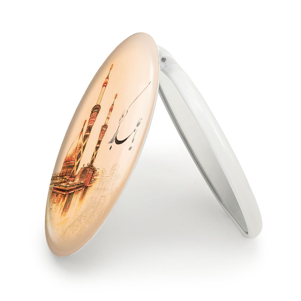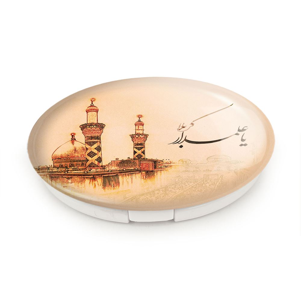 آینه های تاشو محرم یا علمدار کربلا خندالو، از جنس پلاستیک فشرده ABS تولید شده و به رنگ سفید می باشد. یکی از آینه ها ابعاد واقعی را نشان داده و دیگری با قابلیت بزرگنمایی، جزئیات را بهتر نمایش می دهد. ابعاد هر یک از آینه ها، دایره ای به قطر 7.5 سانت می باشد که نه خیلی بزرگ و غیر قابل استفاده در کیف آرایشی ست و نه خیلی کوچک که تصویر خاصی در آن مشاهده نشود. آینه تاشو محرم یا علمدار کربلا سایزی استاندارد و کارآمد دارد و در هر کیفی جا میگیرد. چاپ طرح بوسیله چاپگرهای دیجیتال شش رنگ با شفافیت و کیفیتی مثال زدنی بر روی یک وجه از بدنه ی آینه انجام گرفته و با روکش لمینت حرارتی پوشیده شده که در مقابل آسیب و خط و خش مقاوم بوده و کیفیت بالایی دارد. درب آینه بوسیله قفل بدنه ی آن، باز نمی ماند و کاملا بسته می شود و مناسب قرار گیری در کیف لوازم آرایش و کیف های کوچک دستی نیز هست. آینه های تاشو محرم یا علمدار کربلا خندالو با تنوع طرحی بسیار بالا، سلیقه هر نوع مخاطبی را تامین میکند.