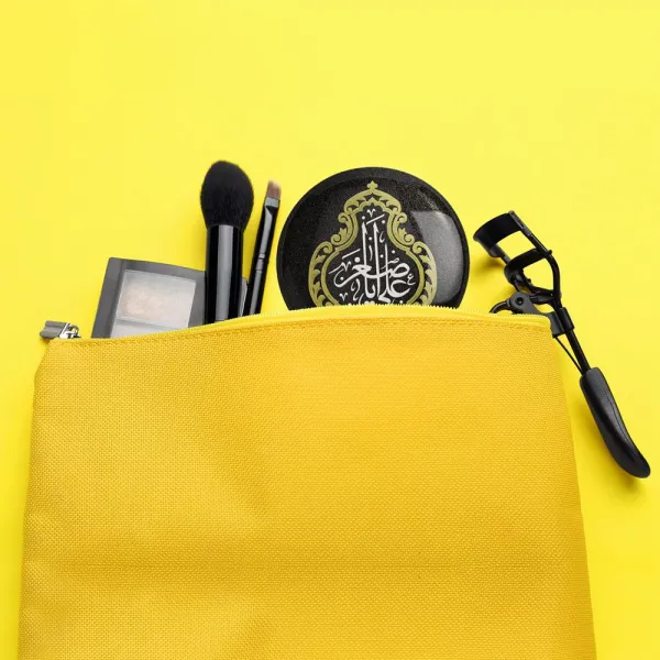 آینه های تاشو محرم یا علی اصغر خندالو، از جنس پلاستیک فشرده ABS تولید شده و به رنگ سفید می باشد. یکی از آینه ها ابعاد واقعی را نشان داده و دیگری با قابلیت بزرگنمایی، جزئیات را بهتر نمایش می دهد. ابعاد هر یک از آینه ها، دایره ای به قطر 7.5 سانت می باشد که نه خیلی بزرگ و غیر قابل استفاده در کیف آرایشی ست و نه خیلی کوچک که تصویر خاصی در آن مشاهده نشود. آینه تاشو محرم یا علی اصغر سایزی استاندارد و کارآمد دارد و در هر کیفی جا میگیرد. چاپ طرح بوسیله چاپگرهای دیجیتال شش رنگ با شفافیت و کیفیتی مثال زدنی بر روی یک وجه از بدنه ی آینه انجام گرفته و با روکش لمینت حرارتی پوشیده شده که در مقابل آسیب و خط و خش مقاوم بوده و کیفیت بالایی دارد. درب آینه بوسیله قفل بدنه ی آن، باز نمی ماند و کاملا بسته می شود و مناسب قرار گیری در کیف لوازم آرایش و کیف های کوچک دستی نیز هست. آینه های تاشو محرم یا علی اصغر خندالو با تنوع طرحی بسیار بالا، سلیقه هر نوع مخاطبی را تامین میکند.