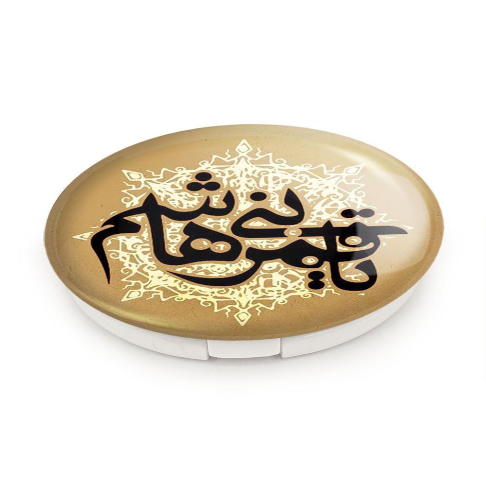 آینه های تاشو محرم یا قمر بنی هاشم خندالو، از جنس پلاستیک فشرده ABS تولید شده و به رنگ سفید می باشد. یکی از آینه ها ابعاد واقعی را نشان داده و دیگری با قابلیت بزرگنمایی، جزئیات را بهتر نمایش می دهد. ابعاد هر یک از آینه ها، دایره ای به قطر 7.5 سانت می باشد که نه خیلی بزرگ و غیر قابل استفاده در کیف آرایشی ست و نه خیلی کوچک که تصویر خاصی در آن مشاهده نشود. آینه تاشو محرم یا قمر بنی هاشم سایزی استاندارد و کارآمد دارد و در هر کیفی جا میگیرد. چاپ طرح بوسیله چاپگرهای دیجیتال شش رنگ با شفافیت و کیفیتی مثال زدنی بر روی یک وجه از بدنه ی آینه انجام گرفته و با روکش لمینت حرارتی پوشیده شده که در مقابل آسیب و خط و خش مقاوم بوده و کیفیت بالایی دارد. درب آینه بوسیله قفل بدنه ی آن، باز نمی ماند و کاملا بسته می شود و مناسب قرار گیری در کیف لوازم آرایش و کیف های کوچک دستی نیز هست. آینه های تاشو محرم یا قمر بنی هاشم خندالو با تنوع طرحی بسیار بالا، سلیقه هر نوع مخاطبی را تامین میکند.